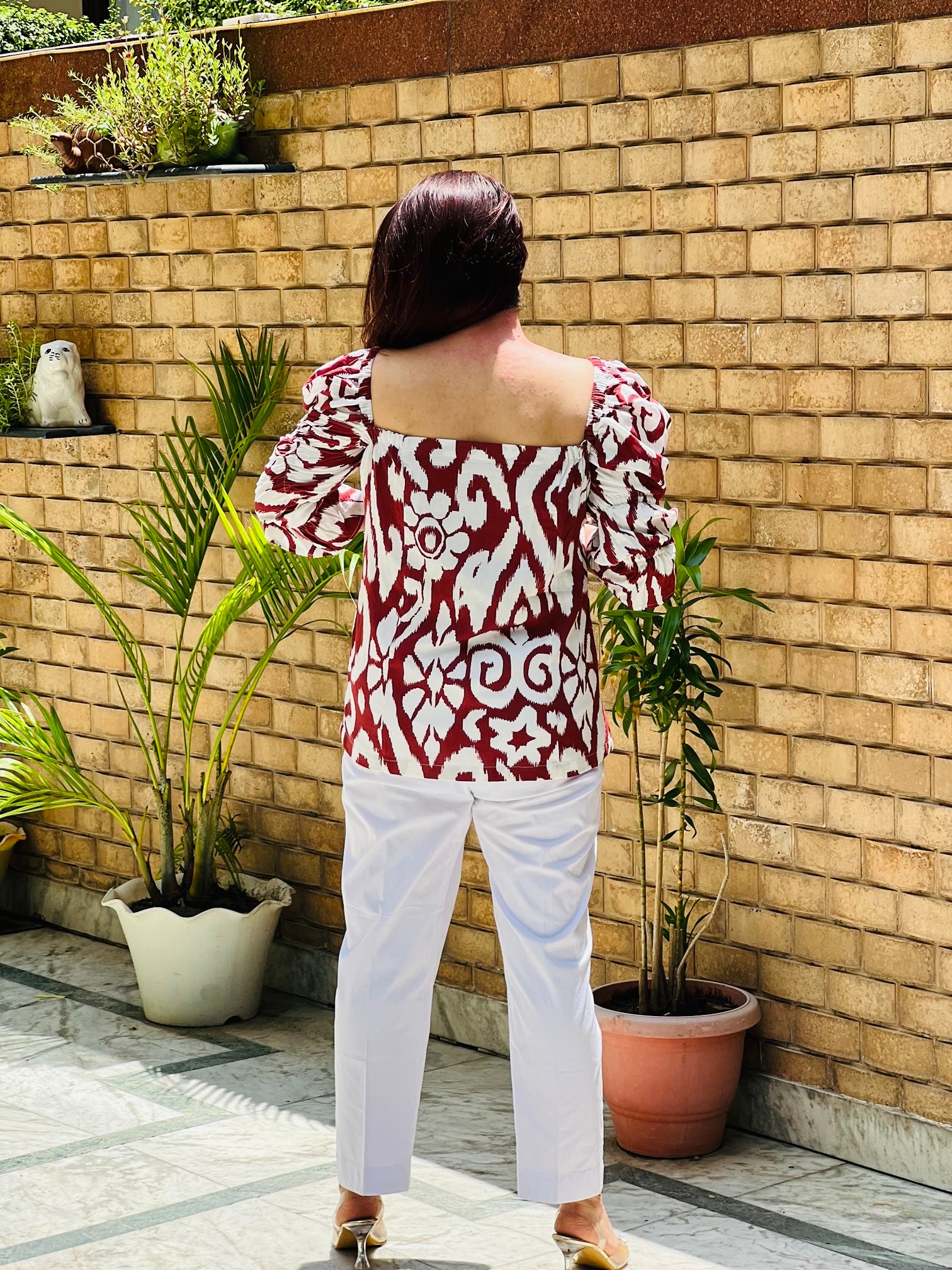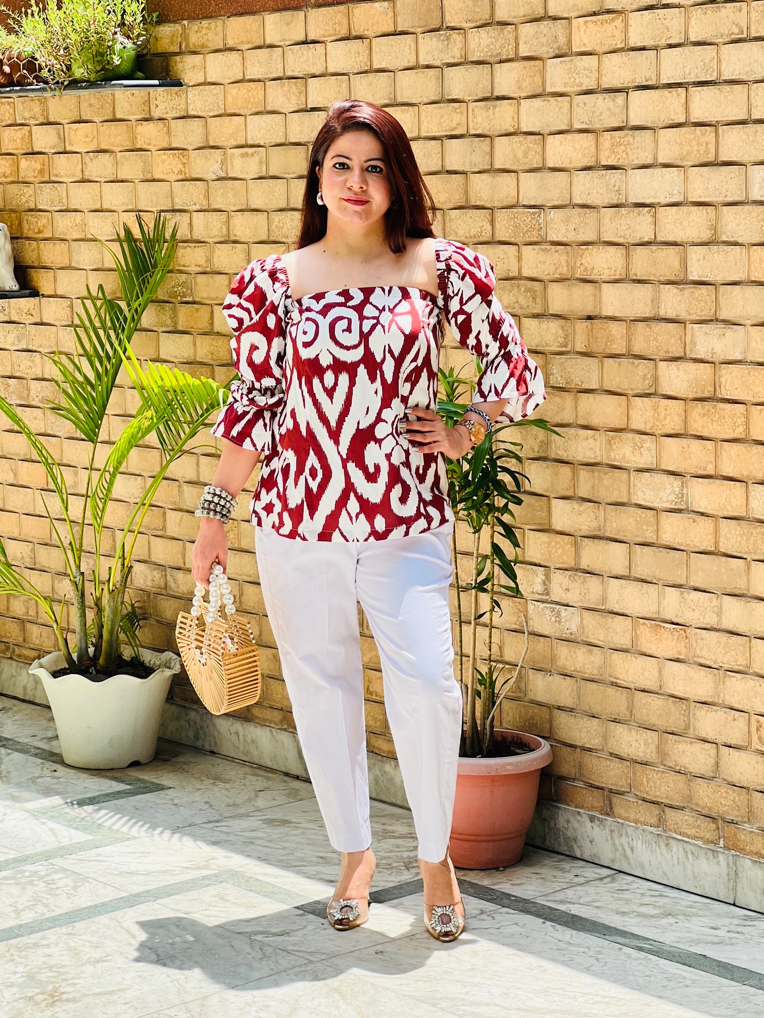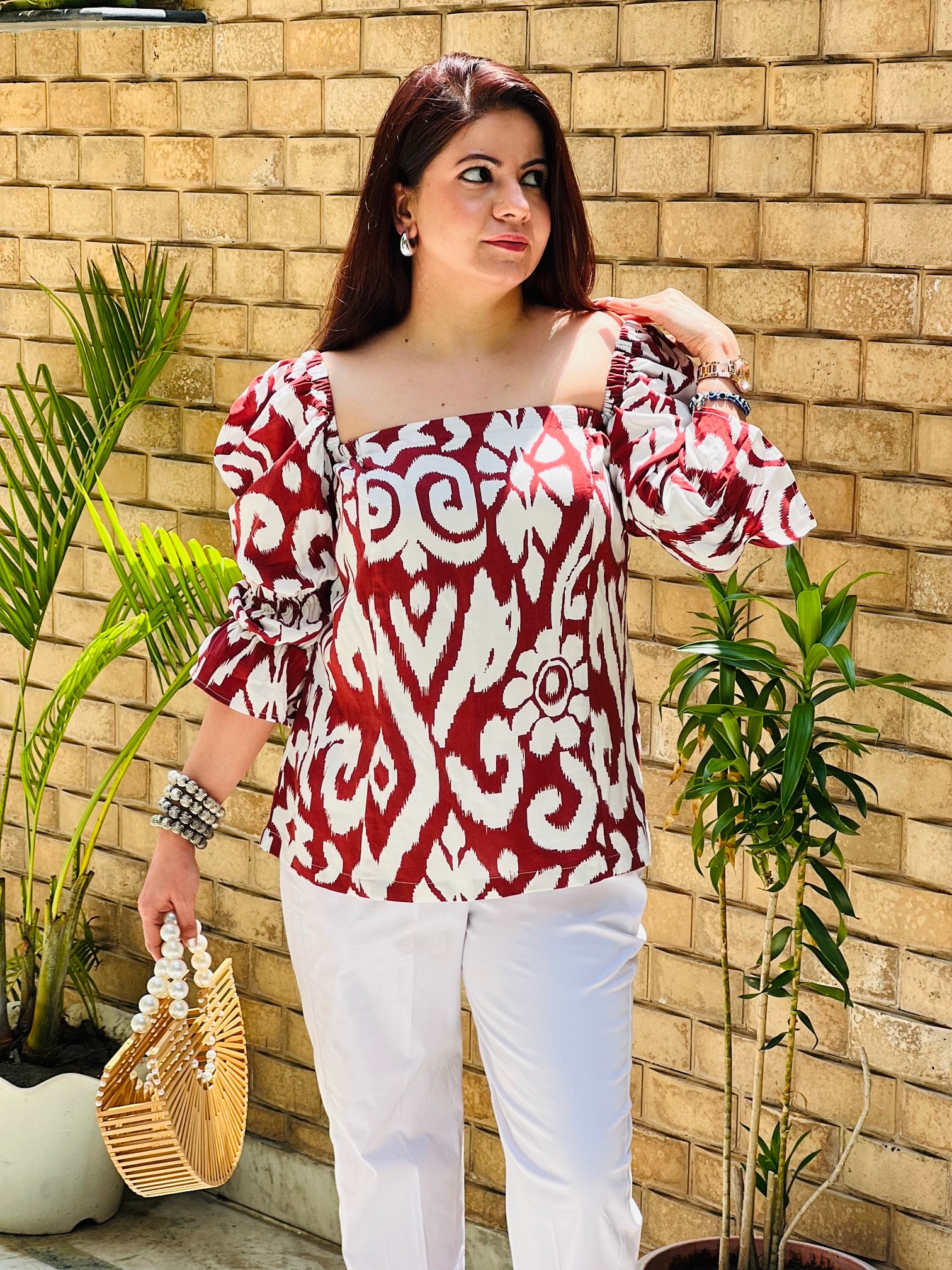 "Embrace your roots with the 'Brown My Tribe' top! 🌿🤎 This earthy, tribal-inspired print with puffed sleeves adds a touch of tradition and modern chic to your wardrobe. Perfectly unique! ✨" |