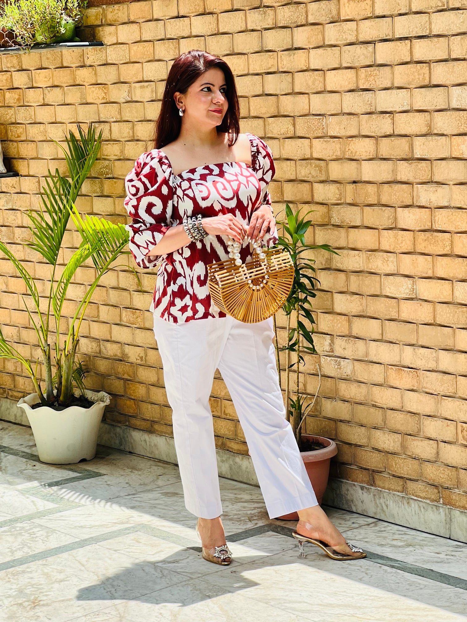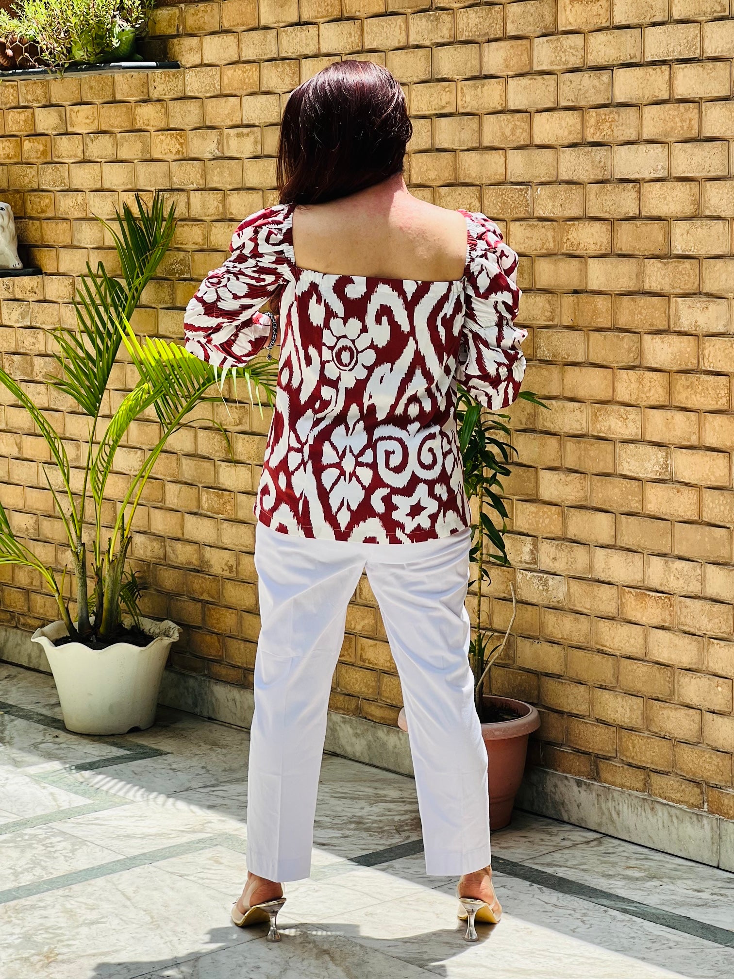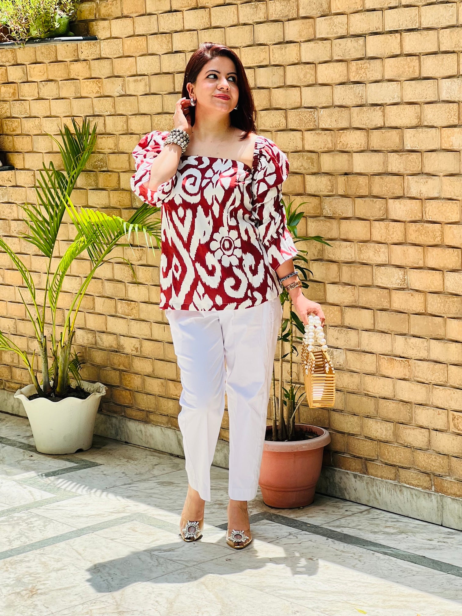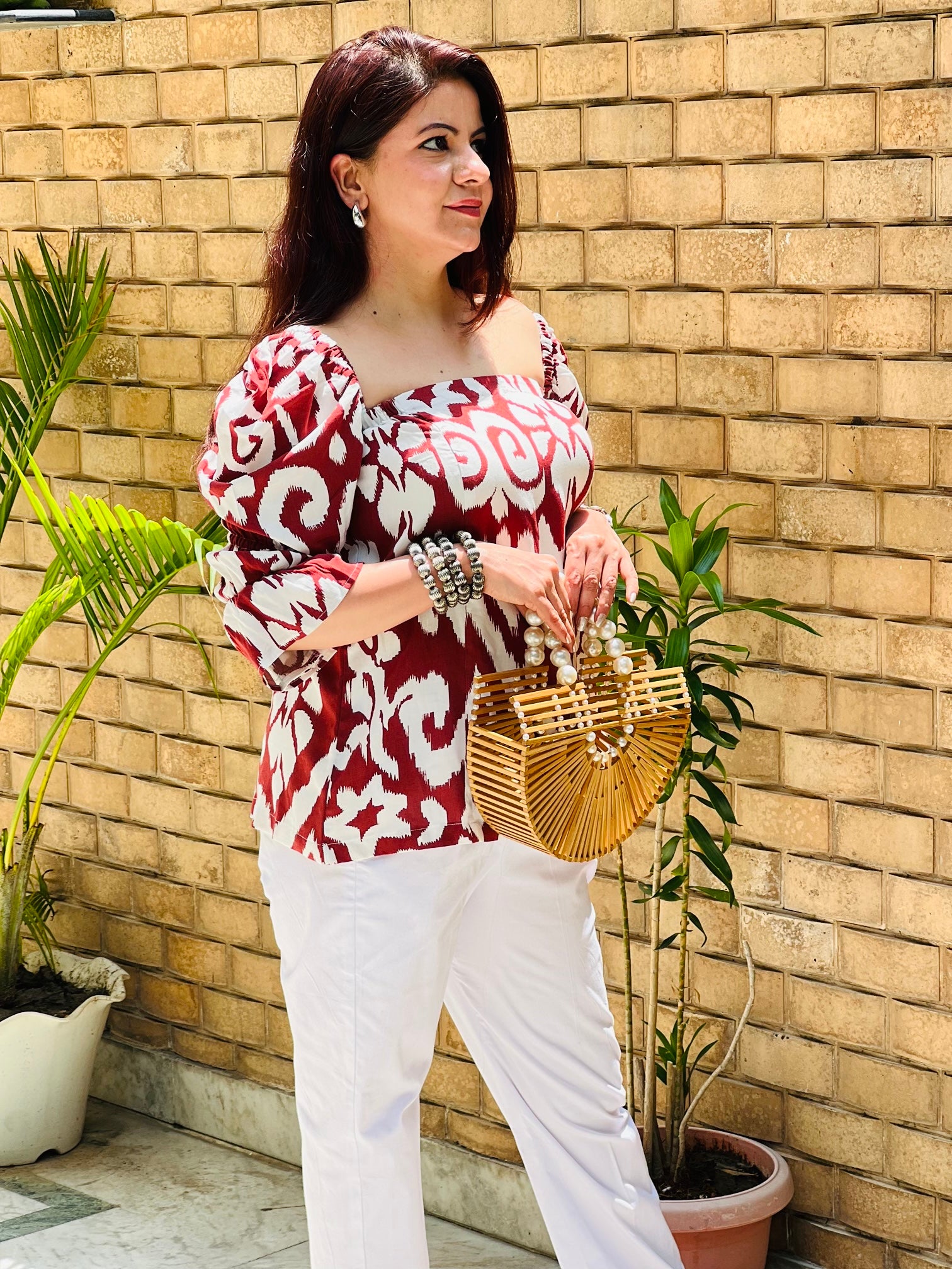 "Embrace your roots with the 'Brown My Tribe' top! 🌿🤎 This earthy, tribal-inspired print with puffed sleeves adds a touch of tradition and modern chic to your wardrobe. Perfectly unique! ✨" |