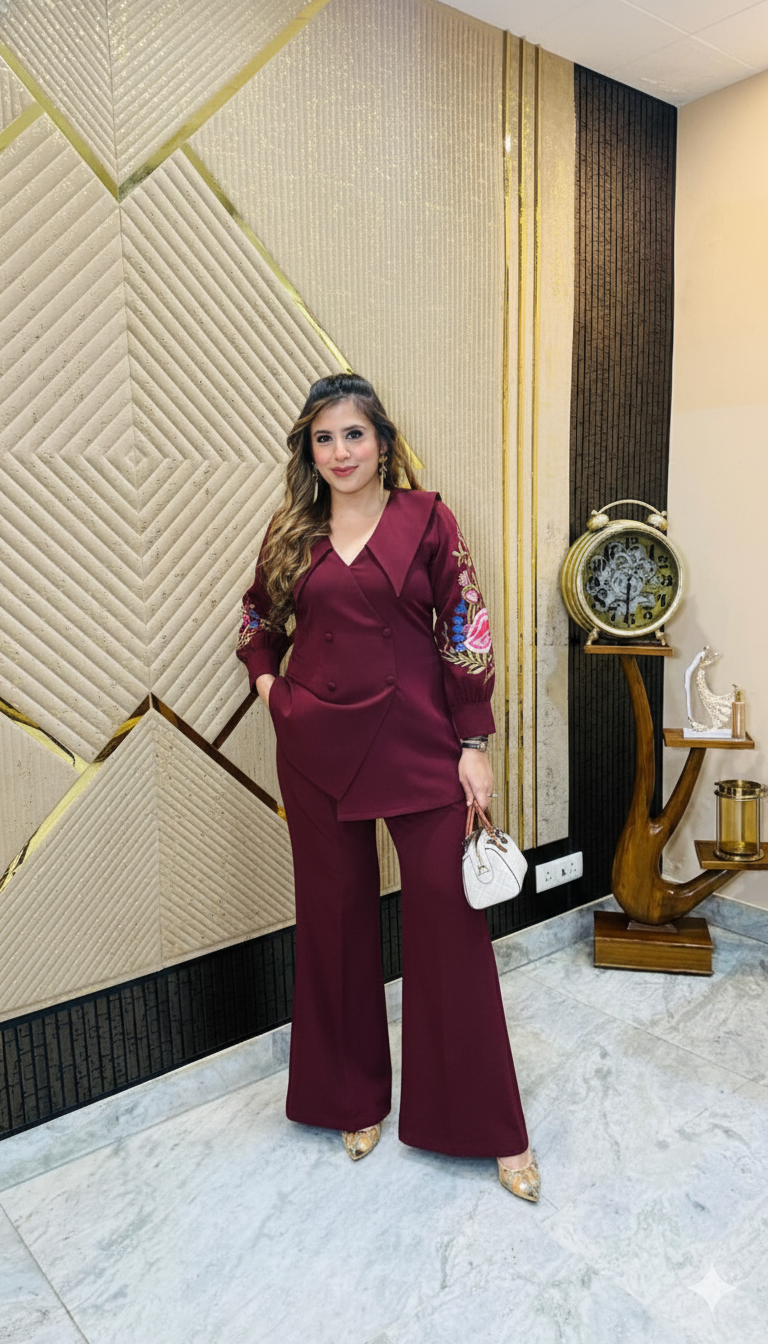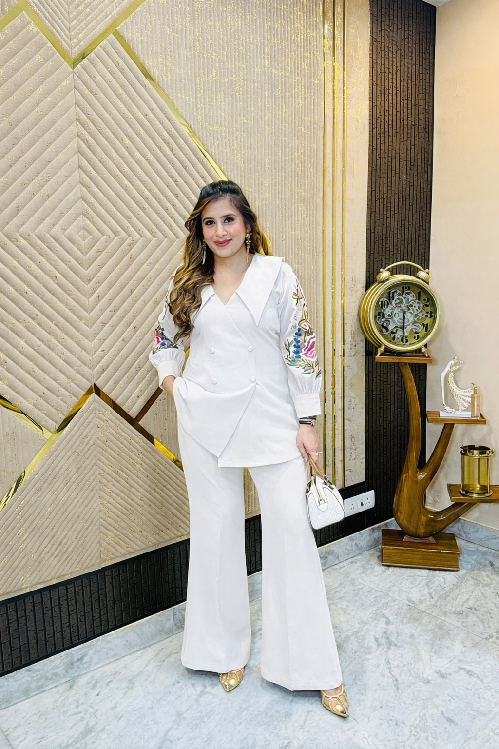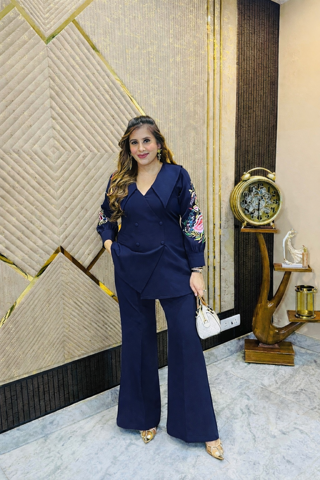 | Design | Floral Embroidered Blazer-Style Co-ord Set |