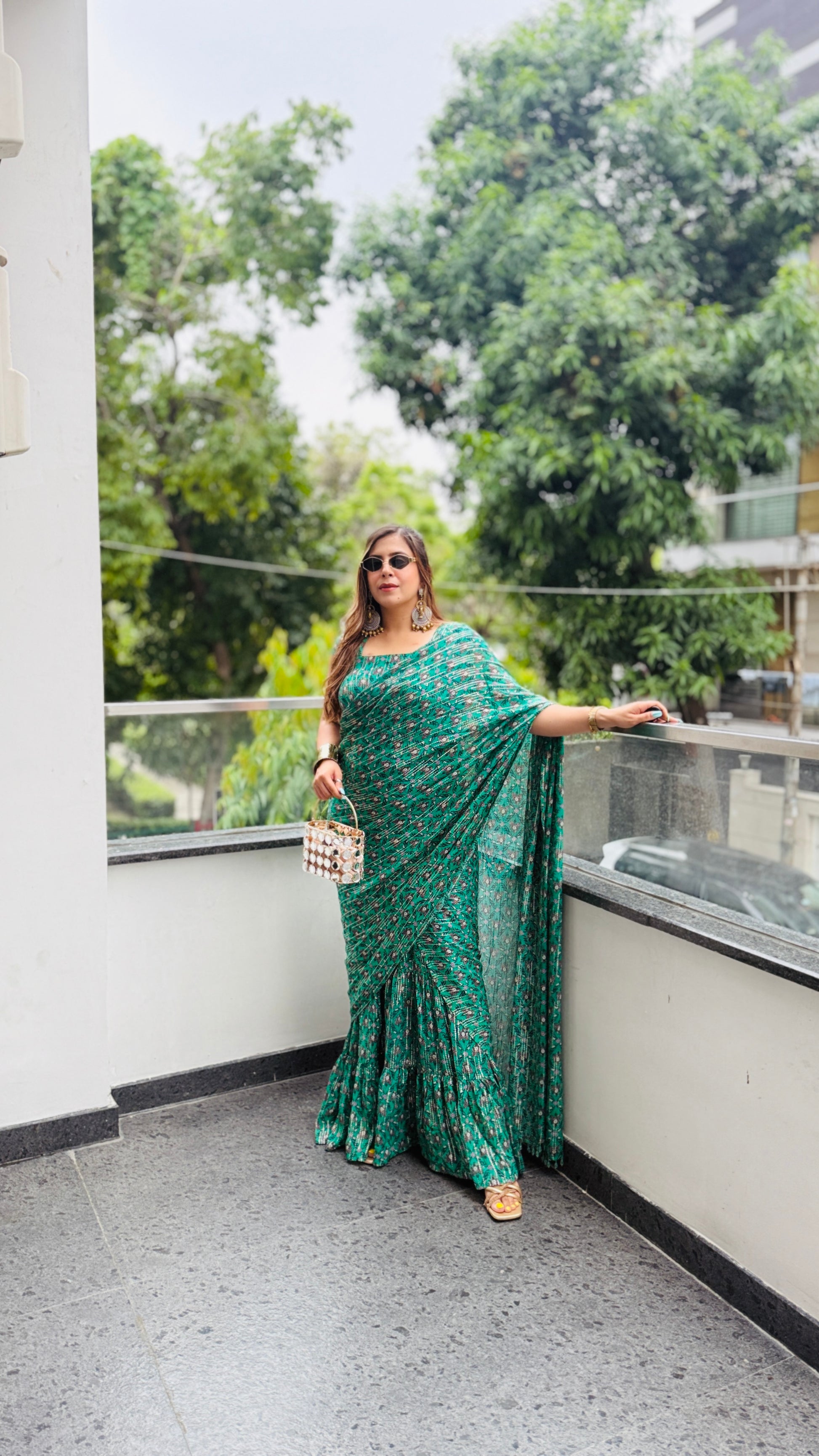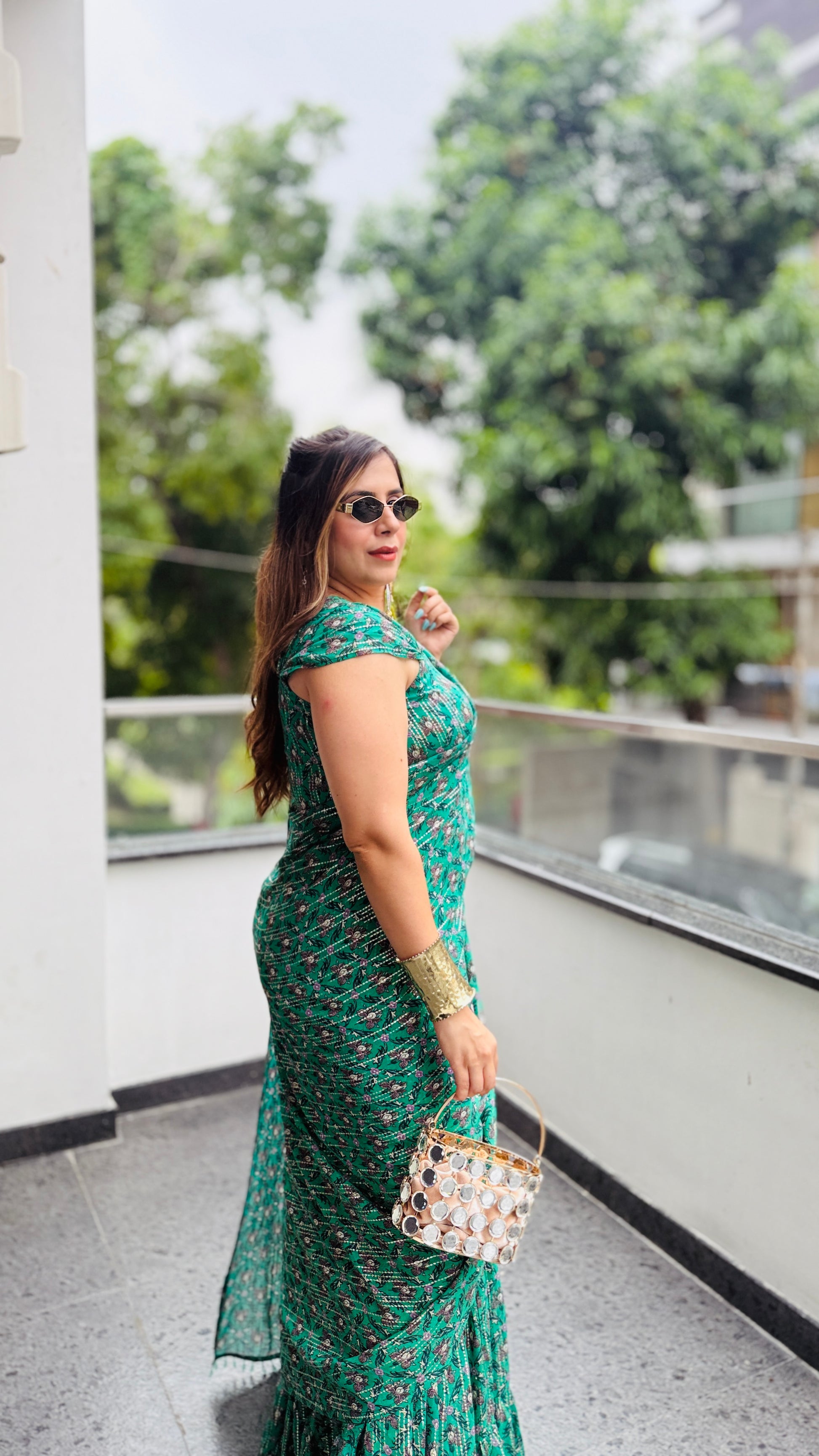 Grace meets glam in this Green Maxi Saree 🌿✨