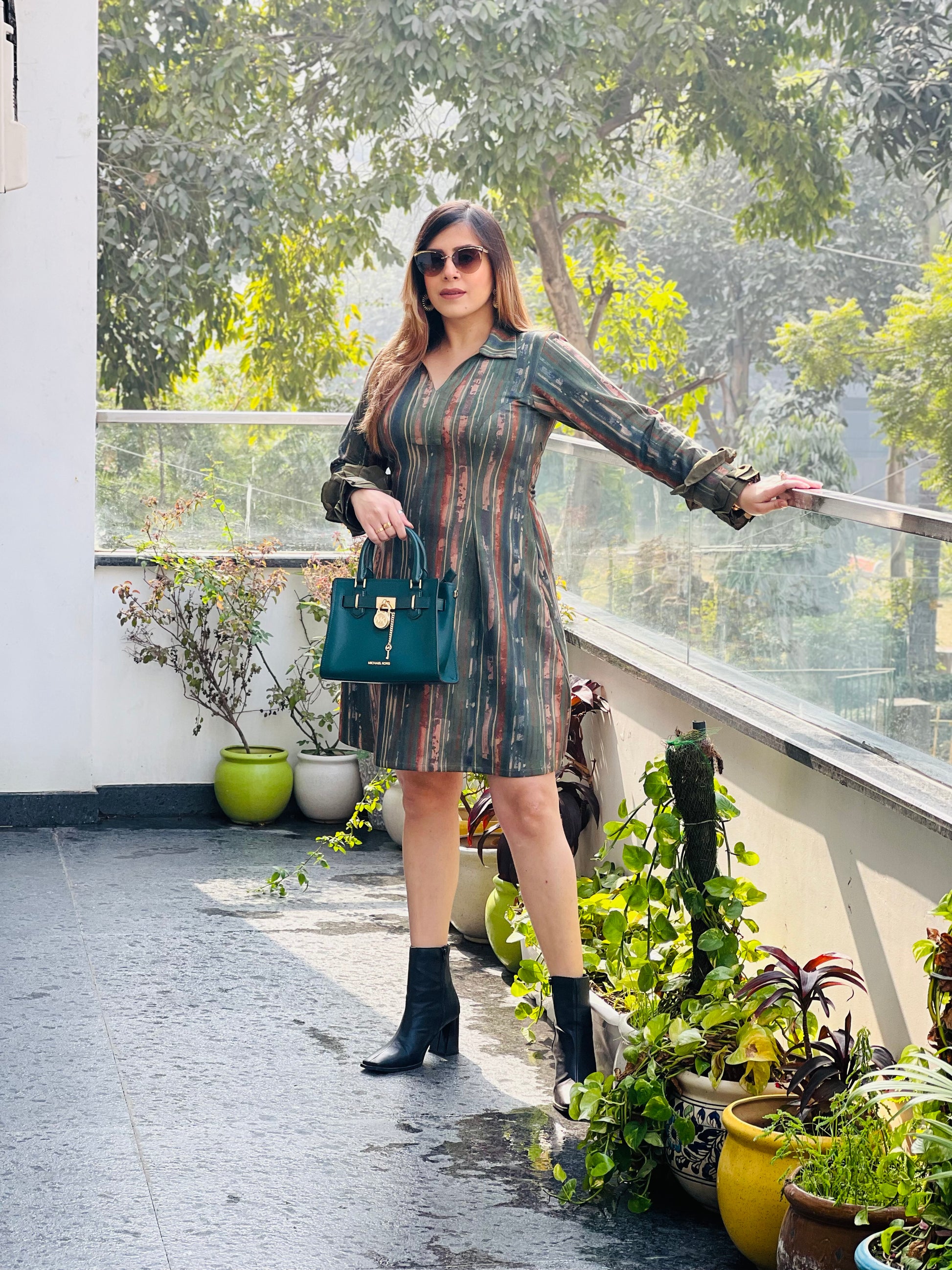 Green stripes suede dress