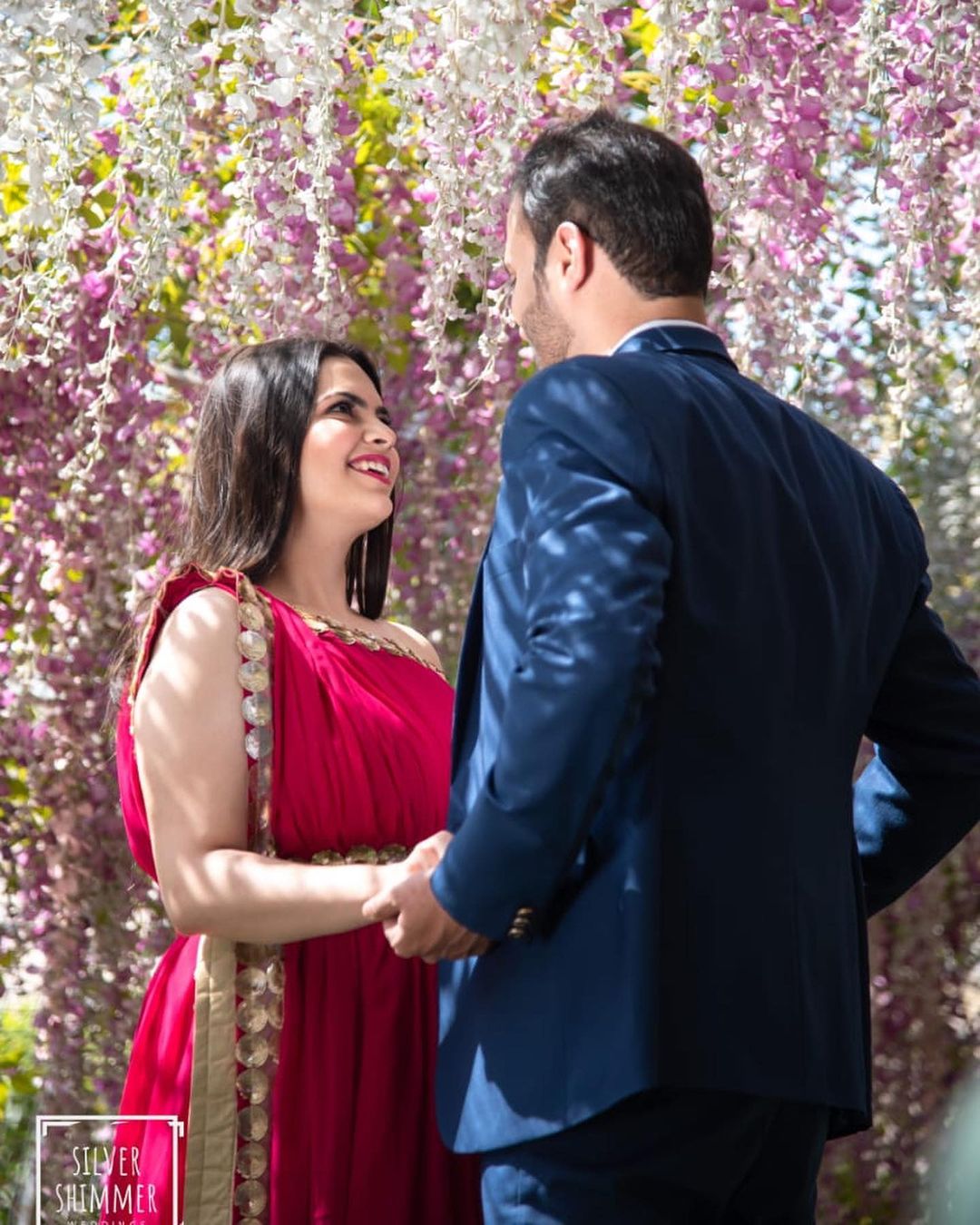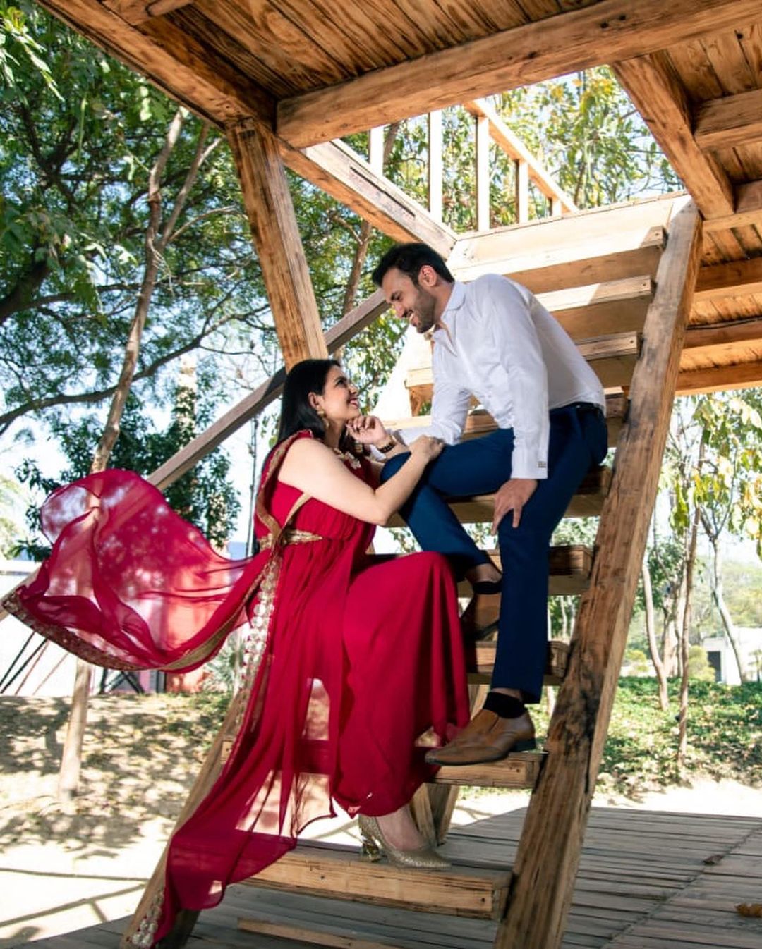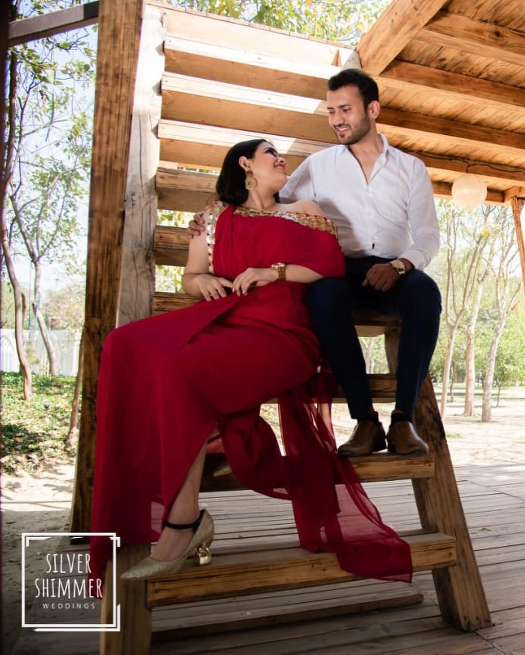 Our hot pink drape is a stunning piece of art curated in finest quality georgette to make your pre wedding shoots classier with its vibrancy.