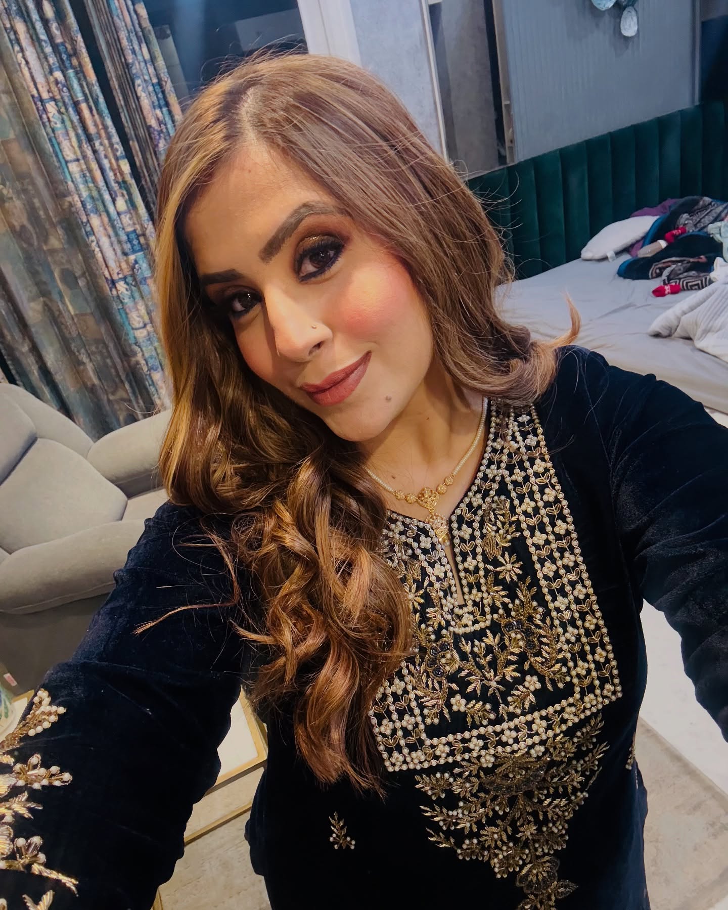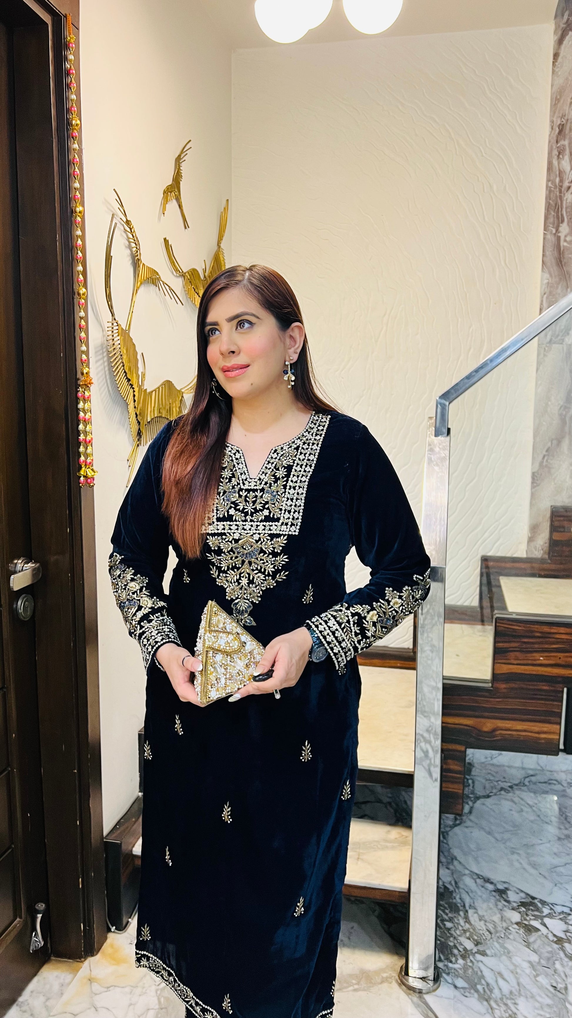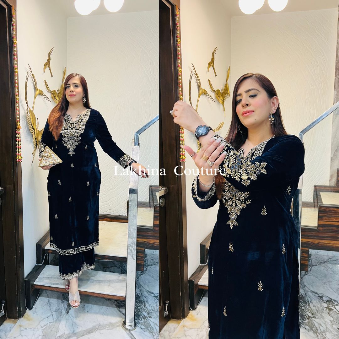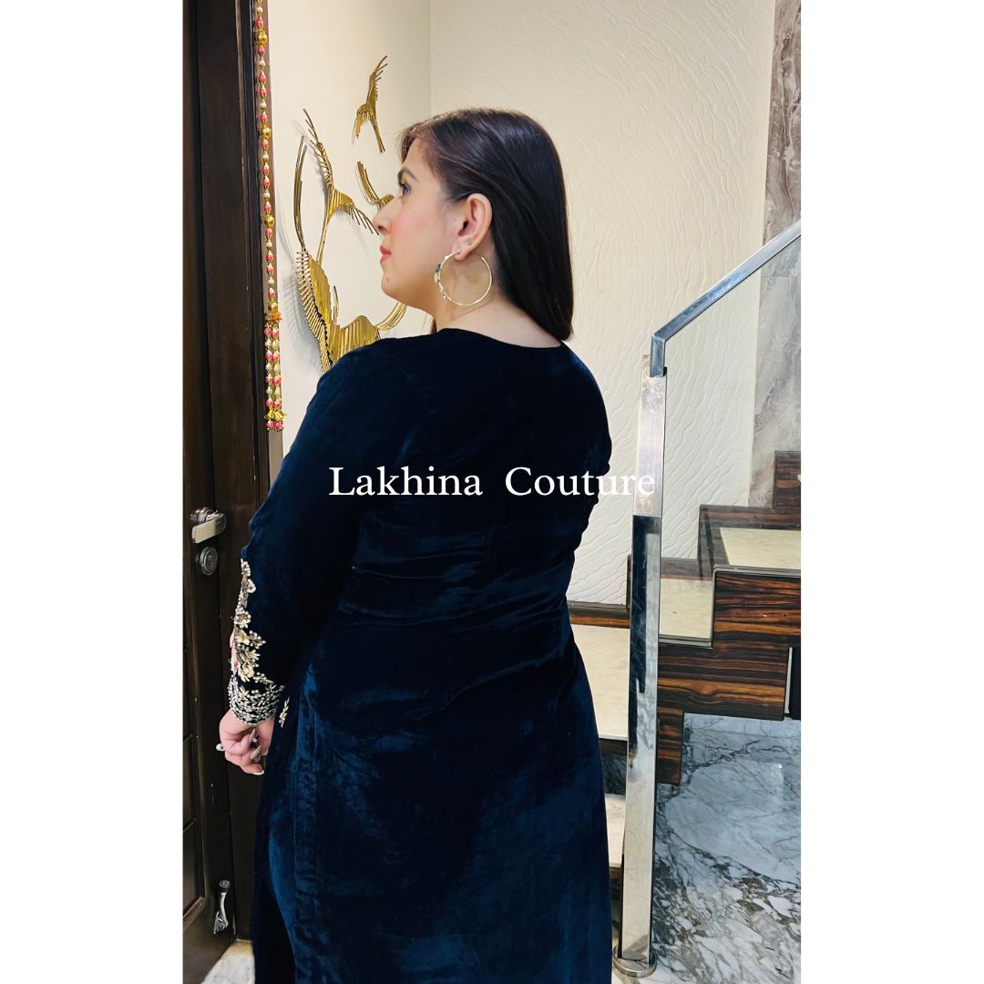 The Lakhina Couture Suit in solid are made in Velvet fabric giving it a relaxed fit. Featuring with palazzo.