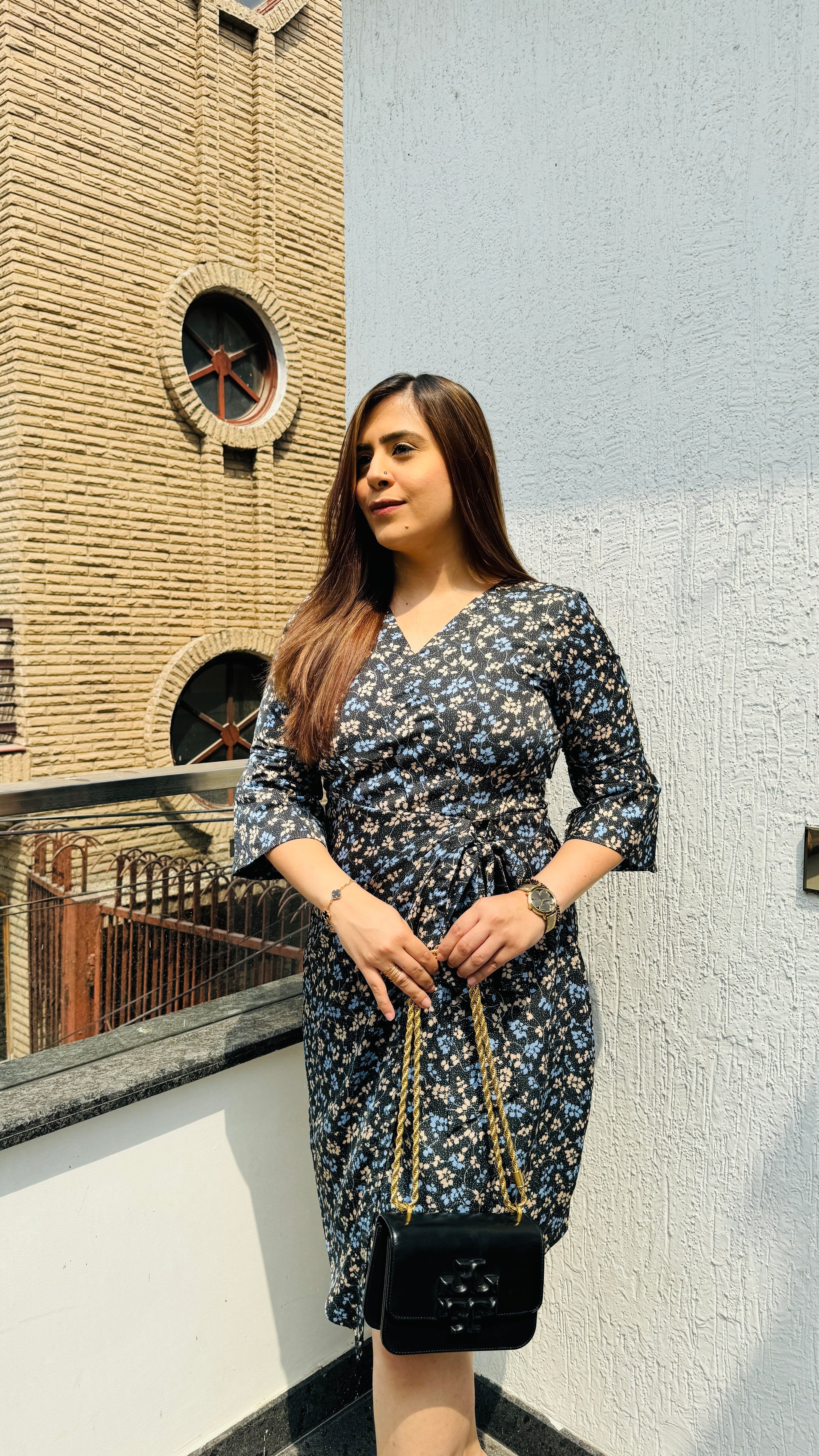 Own the spotlight in this Midnight Drape Shirt Dress 🌌✨ featuring delicate floral prints 🌸, a chic waist tie 🎀, and breezy elegance—perfect for brunches, evenings, or glam getaways! 💃🖤 |