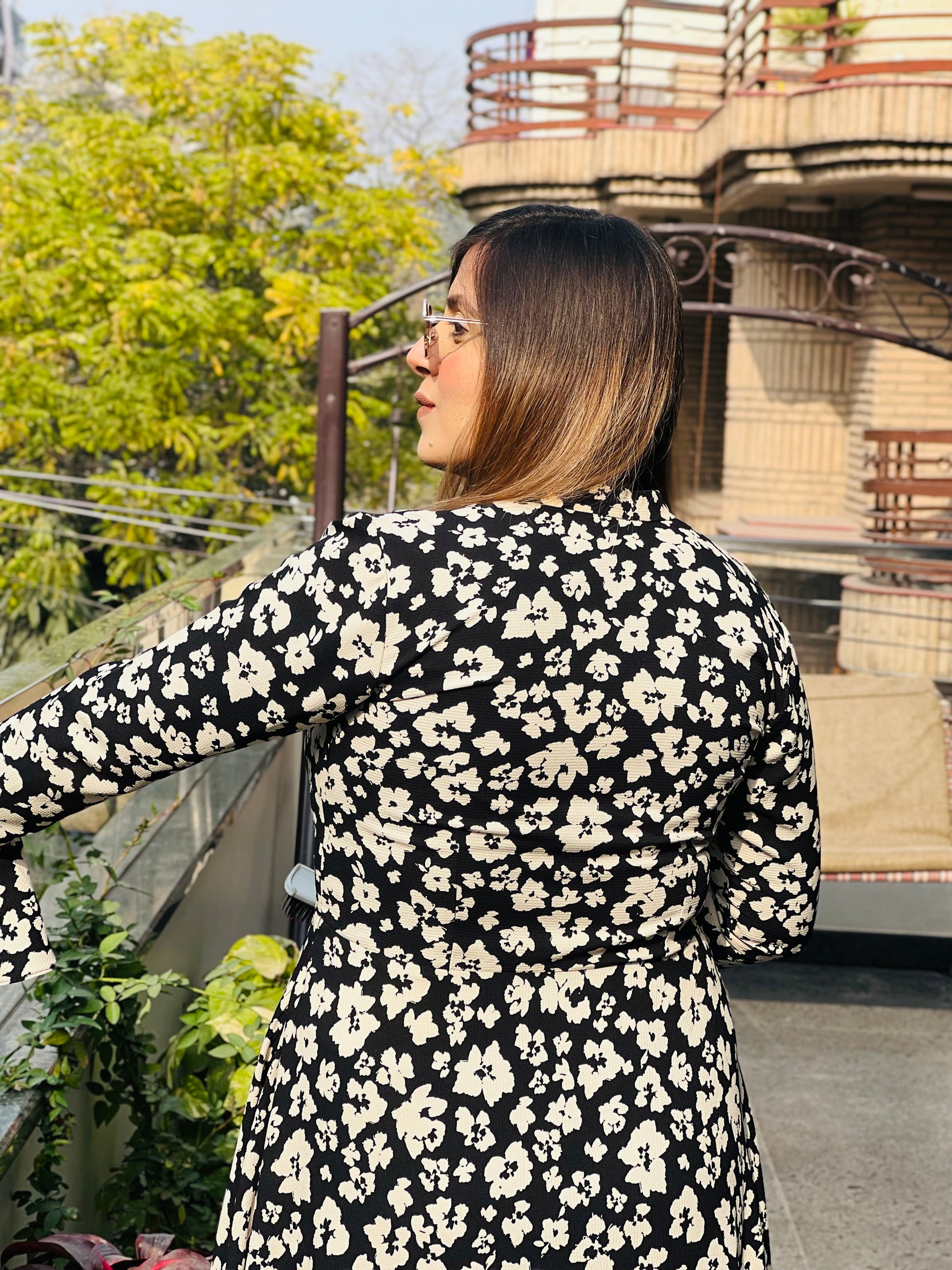 Blossom in monochrome magic. This floral slit top is a perfect blend of chic and charm. šøš¤ |