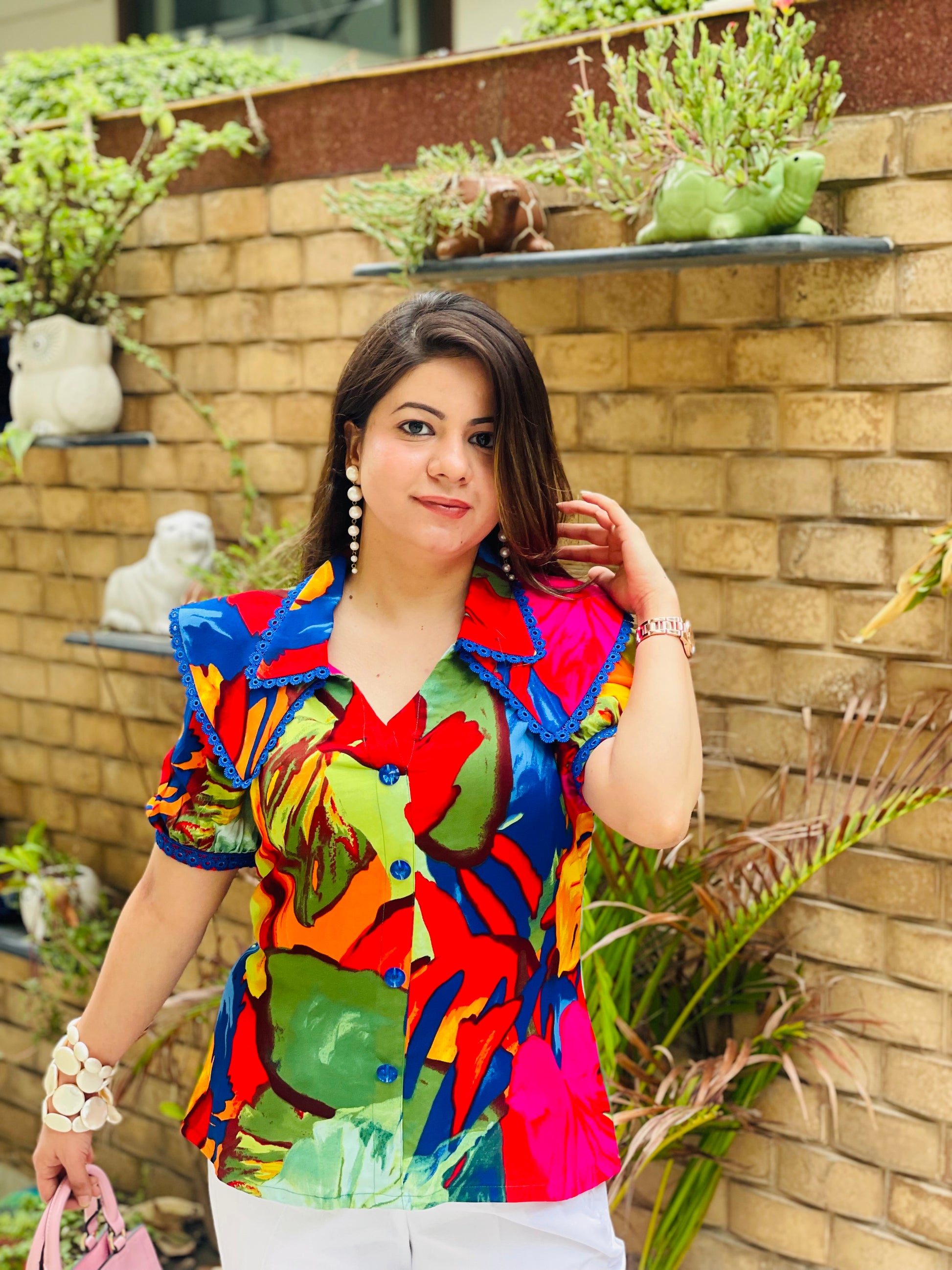 "Spread the love with our Multi-Love Cotton Top! ❤👕 This vibrant, multi-colored top features a soft cotton fabric and a relaxed fit, perfect for a playful and stylish look. #LoveIsInTheAir #ColorfulVibes" |