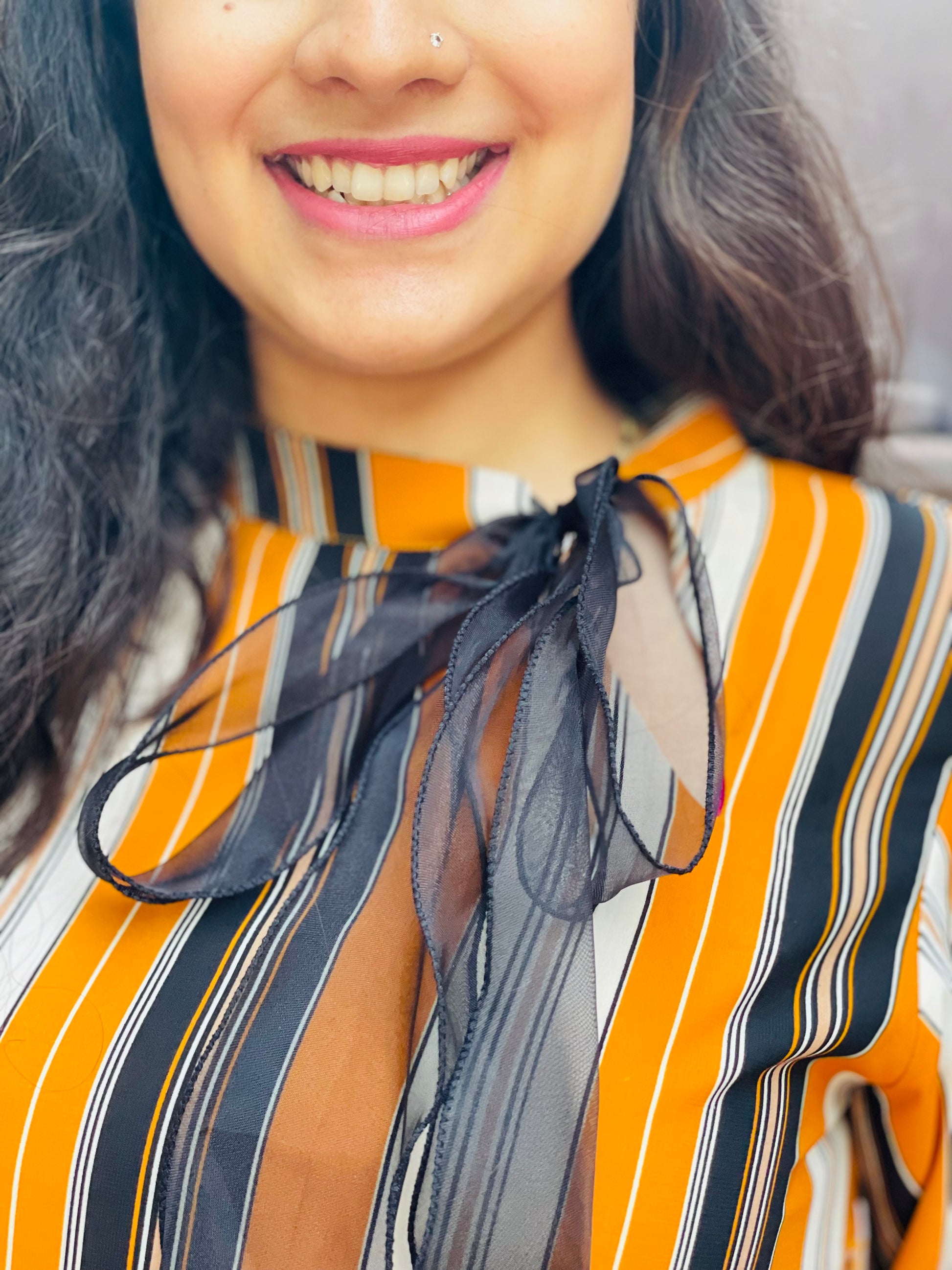 Display your love for fashion and mesmerise the rest with this Multi Yellow Shades of Midi dress by Lakhina Couture.