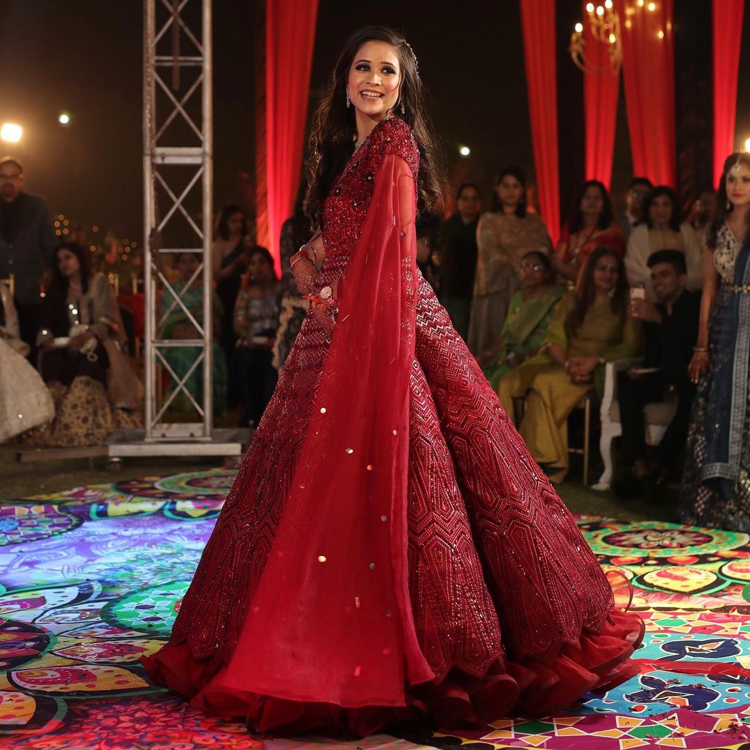A massively flared engagement gown because she wanted to look like a Barbie doll. Isn’t she looking like one? Btao btao.