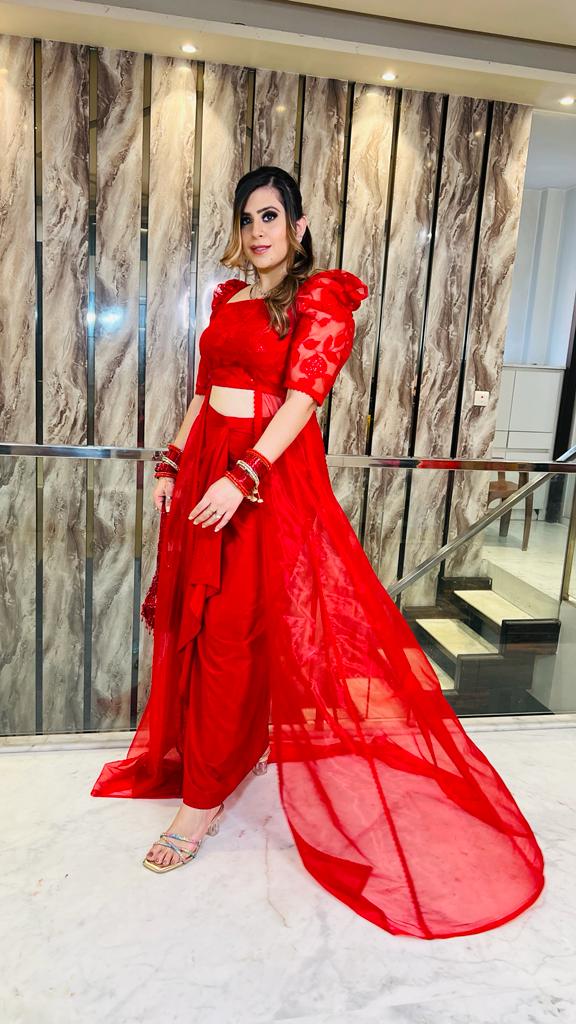 Red Love Drape Skirt Set