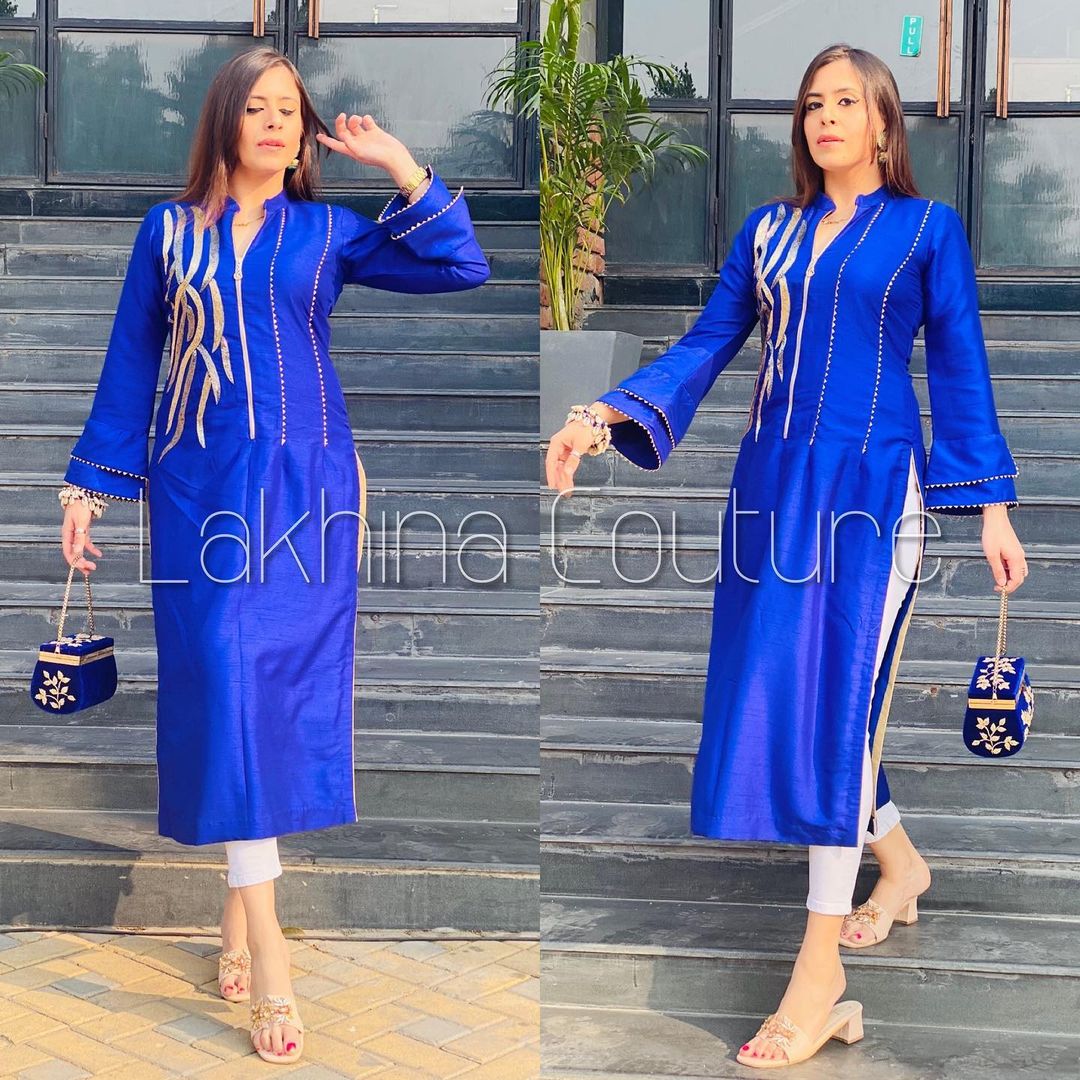 Royal and Ravishing, make a space for this gorgeous royal blue embroidered slit top in your wardrobe for a complimenting style