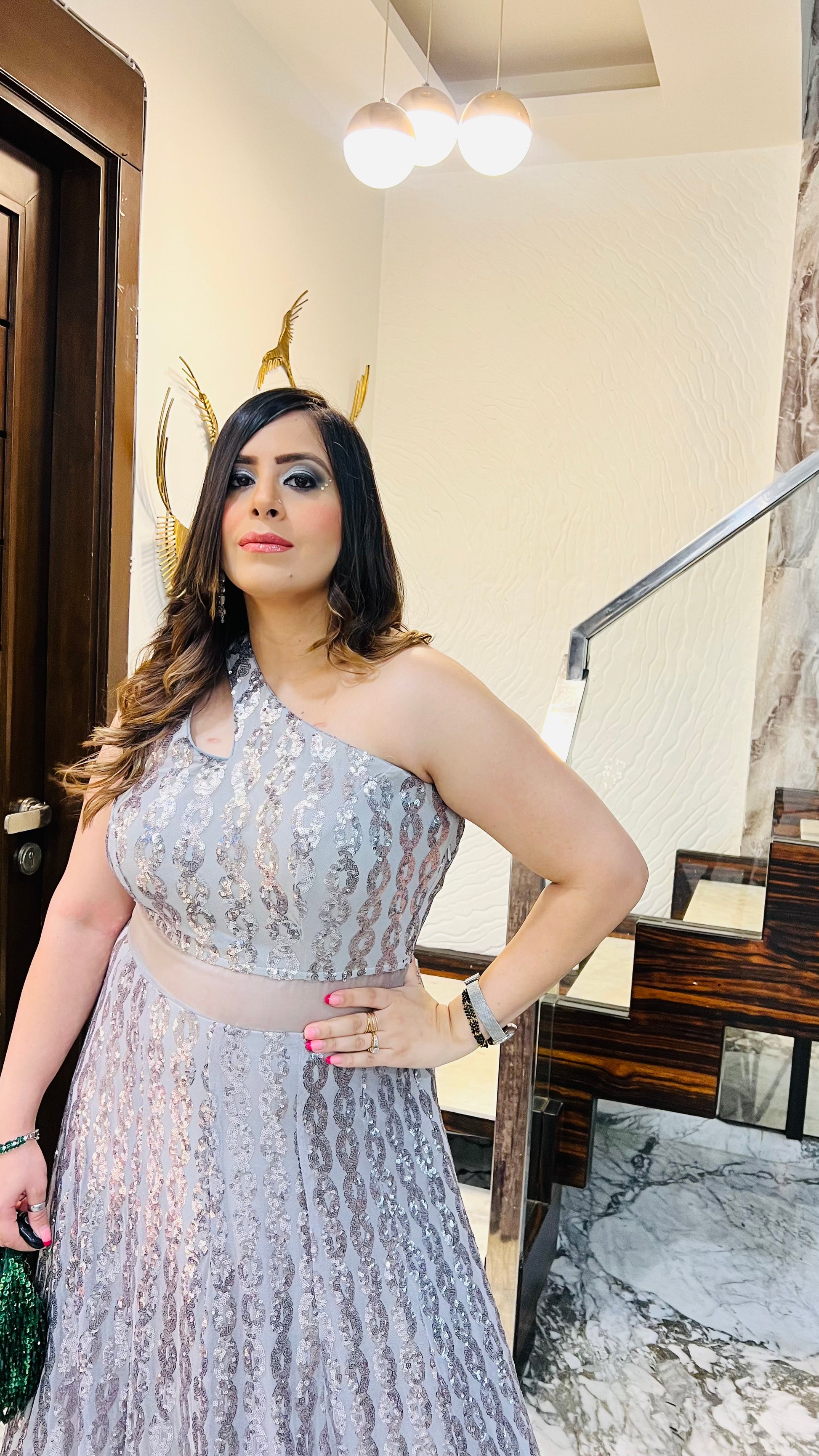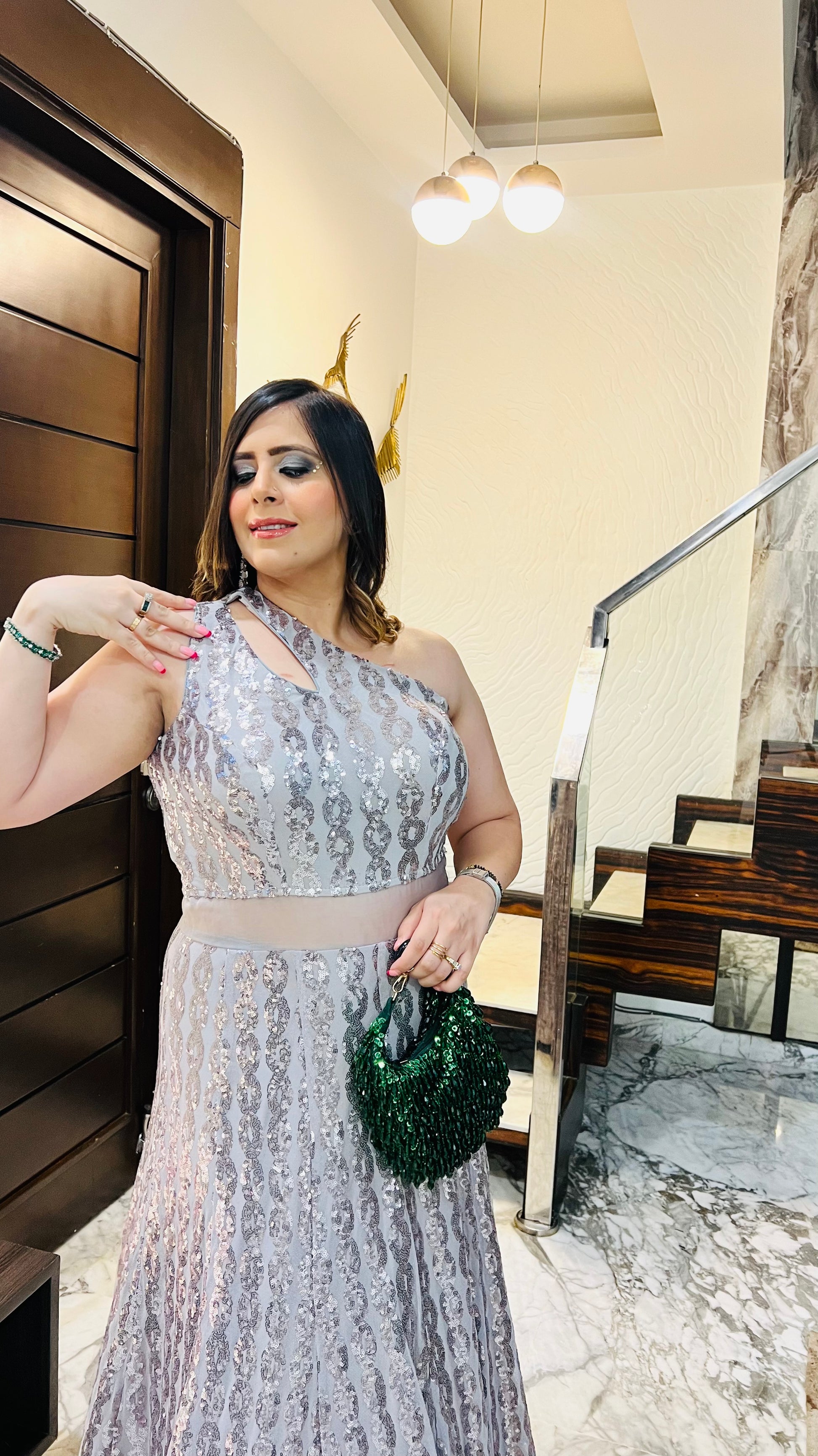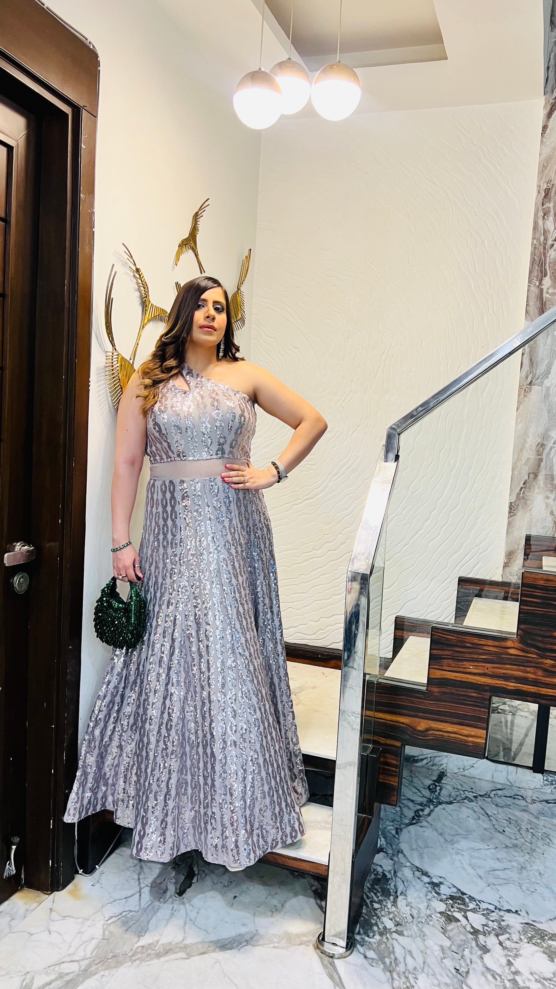 Shimmer in elegance with this Silver Chain Sequin Gown ✨. Featuring a radiant one-shoulder design, its dazzling sequins and flowy silhouette create a perfect statement look for any glamorous event 🌟.