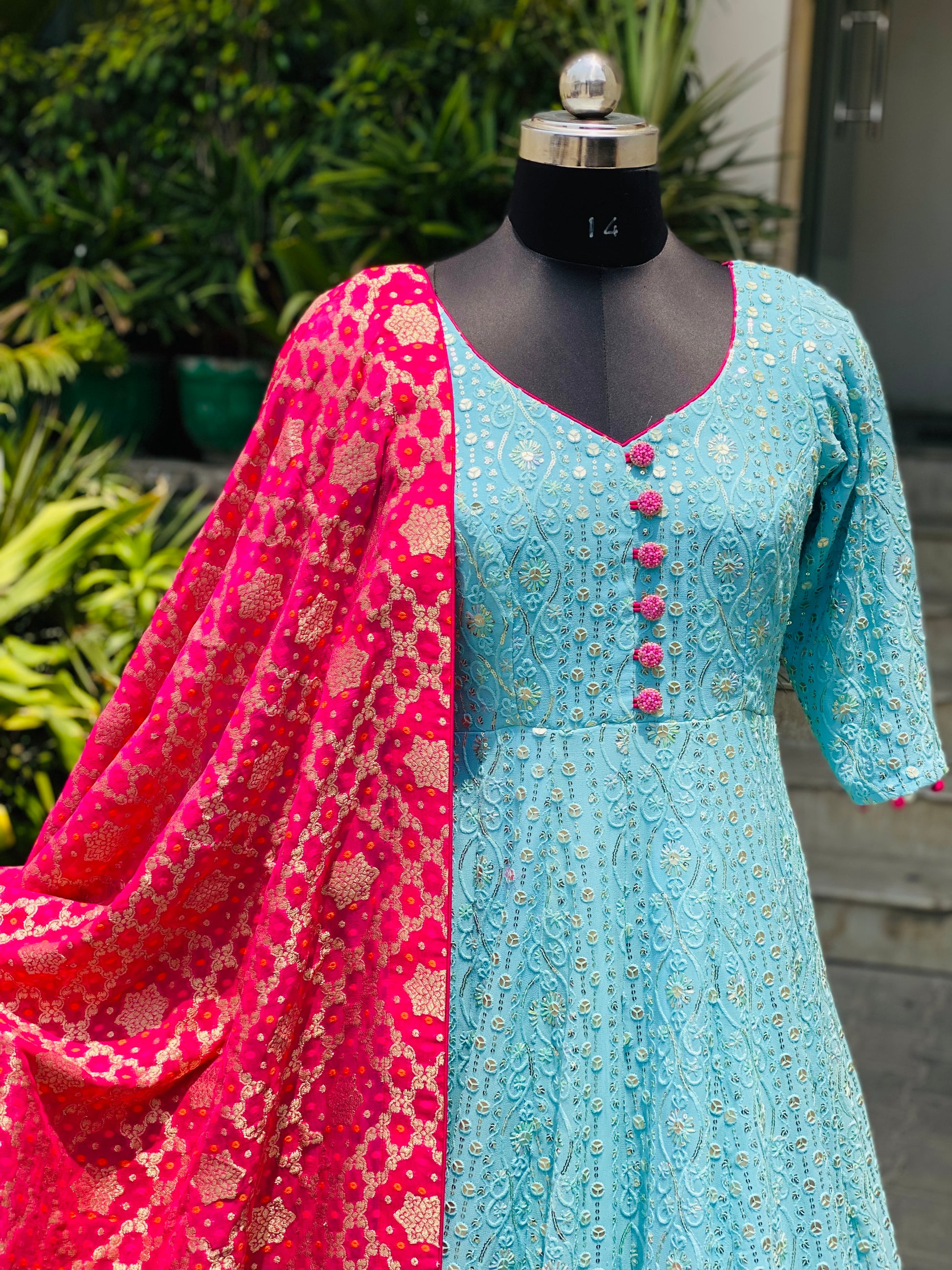 Teamed up with a fully flared banarasi dupatta, this style is an absolute unique addition to your wardrobe.