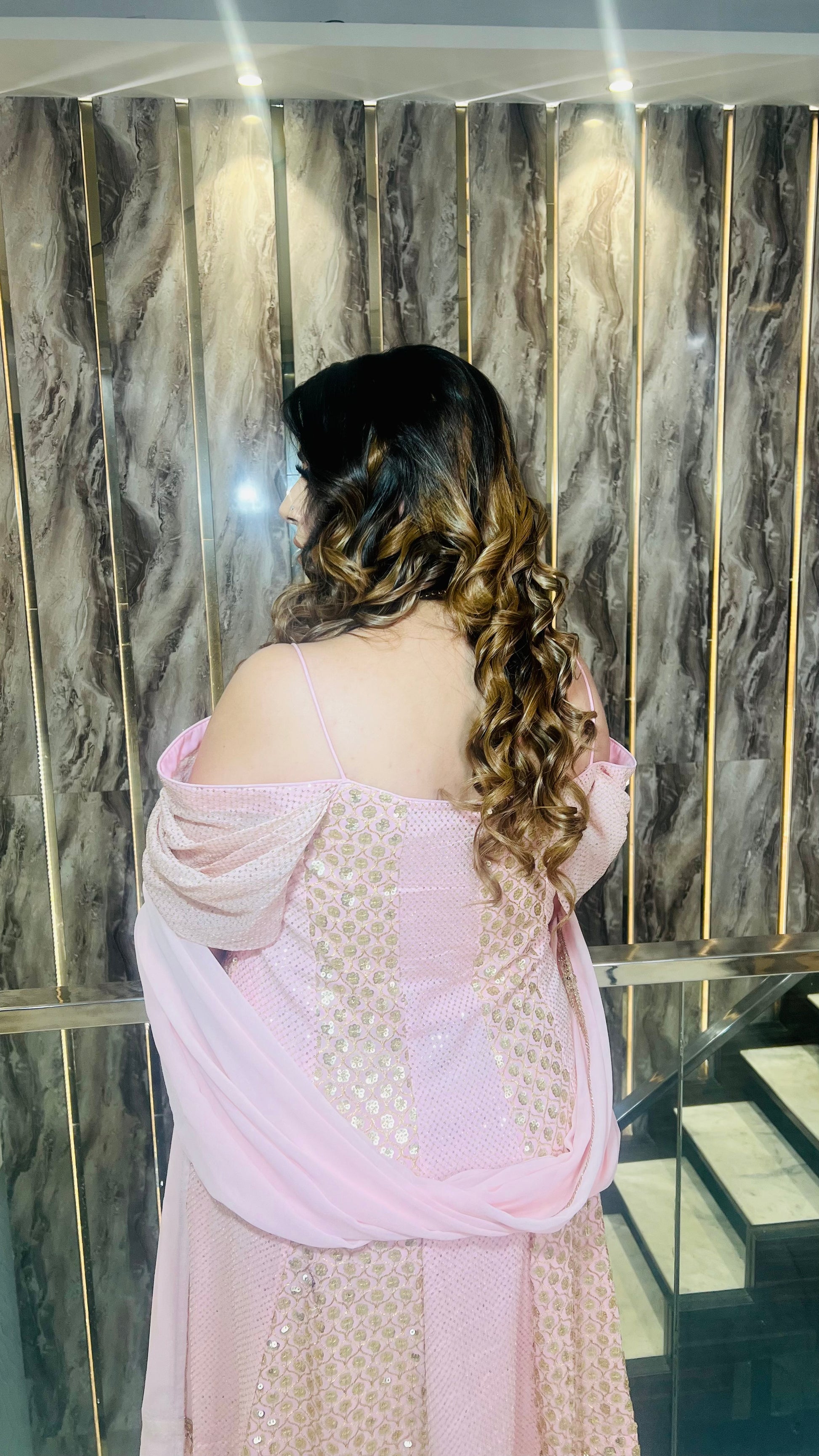 Dazzling in pink sequins, this suit embodies glamour and sophistication, a radiant ensemble that steals the spotlight with its shimmering allure." 💖✨ |