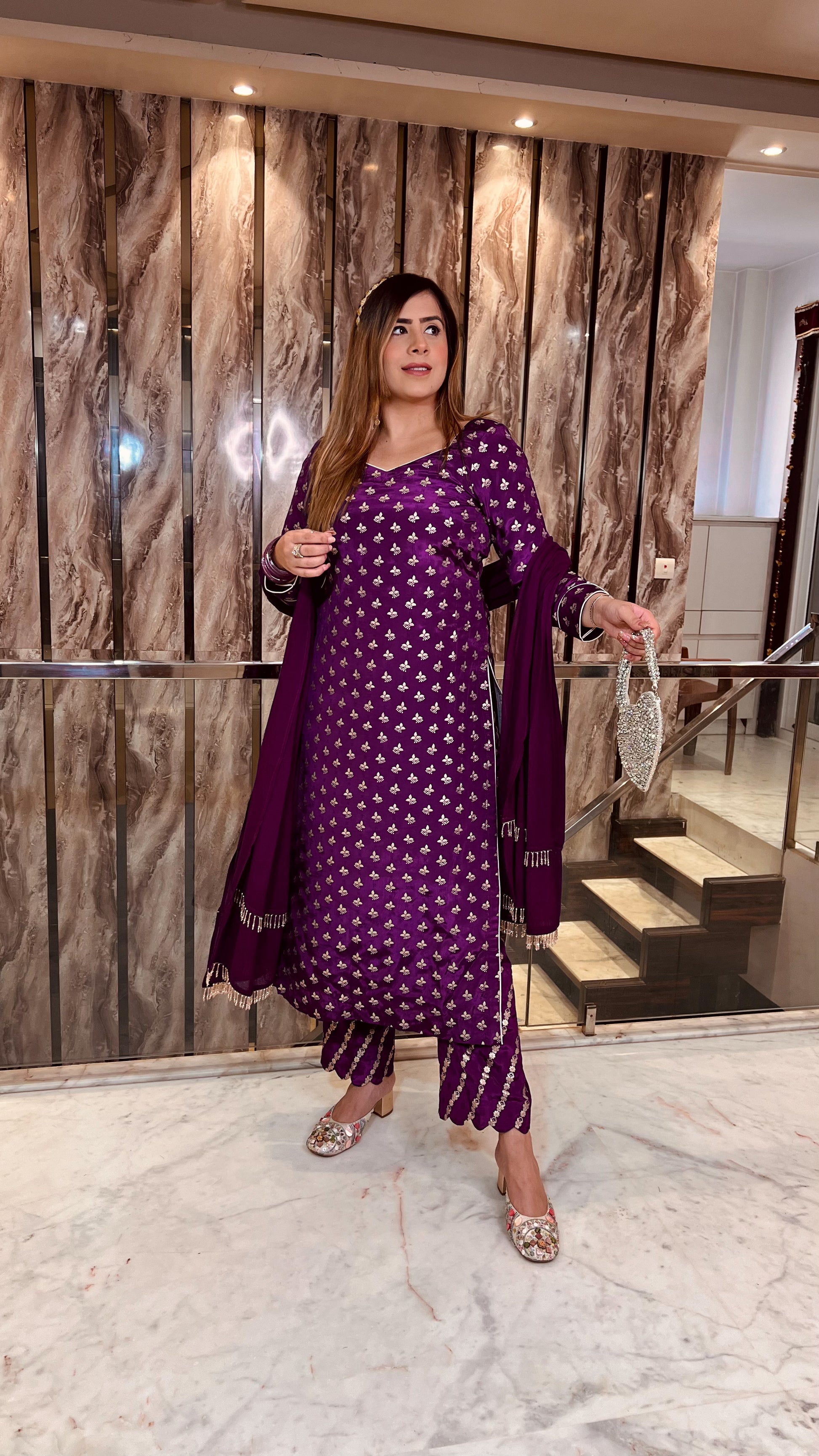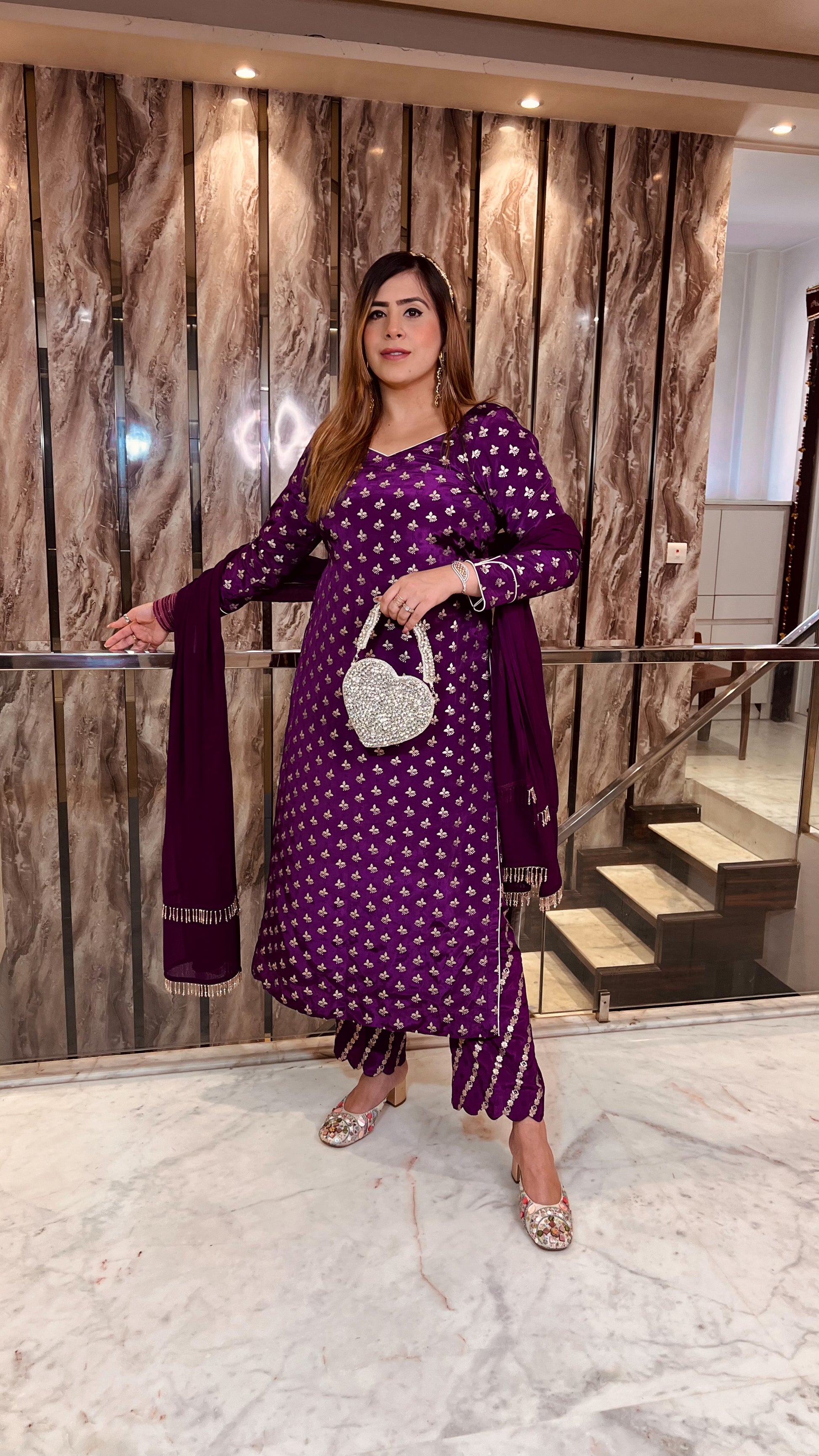 Wine Crepe Suit