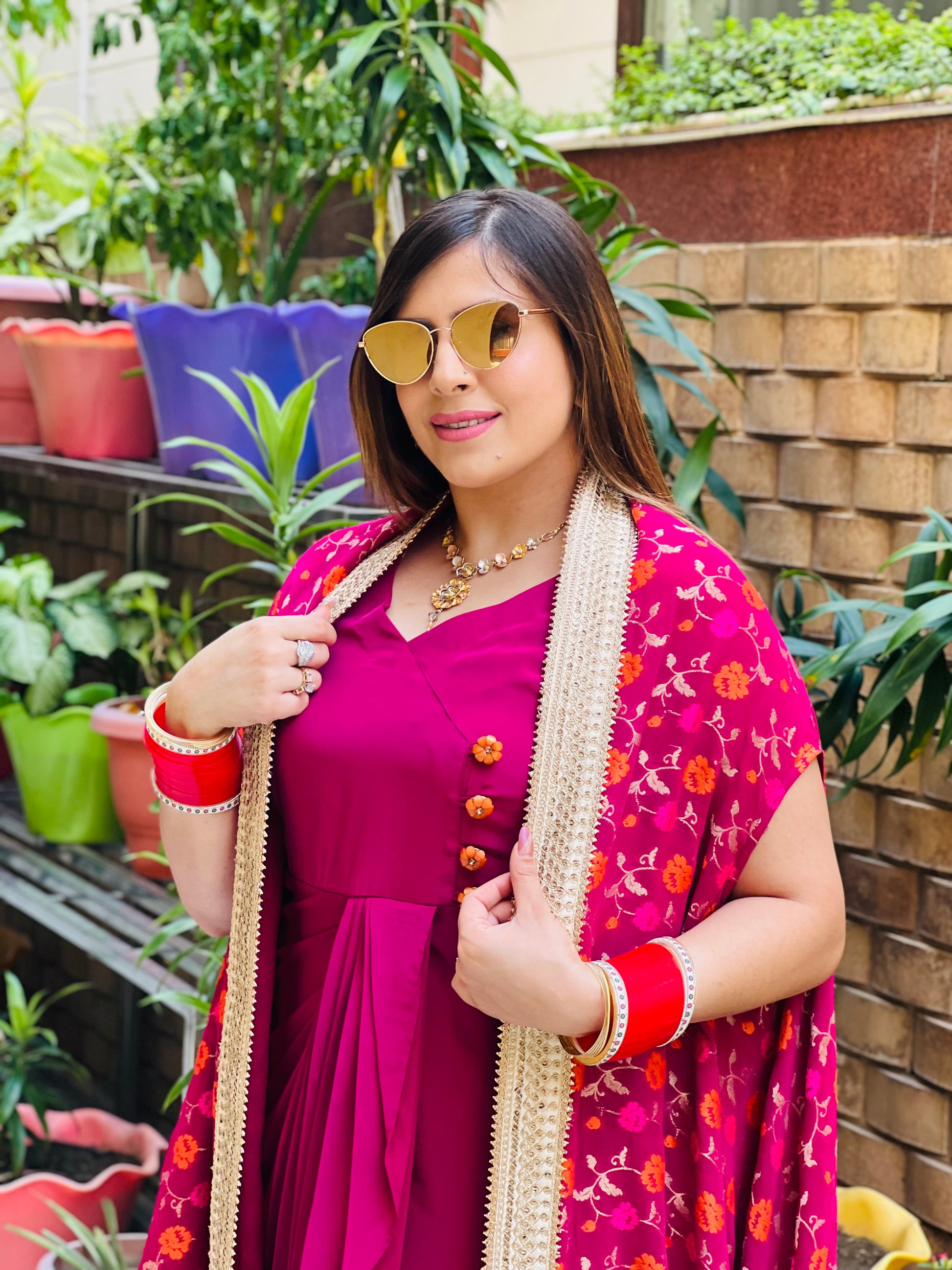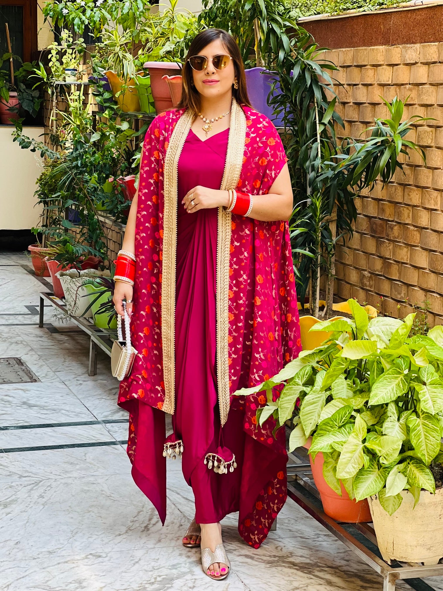 Specially meant for cocktails, baby naming ceremonies, high tea parties and birthday parties, & Festivals this drape is a drop dead gorgeous ensemble to rule the event.
