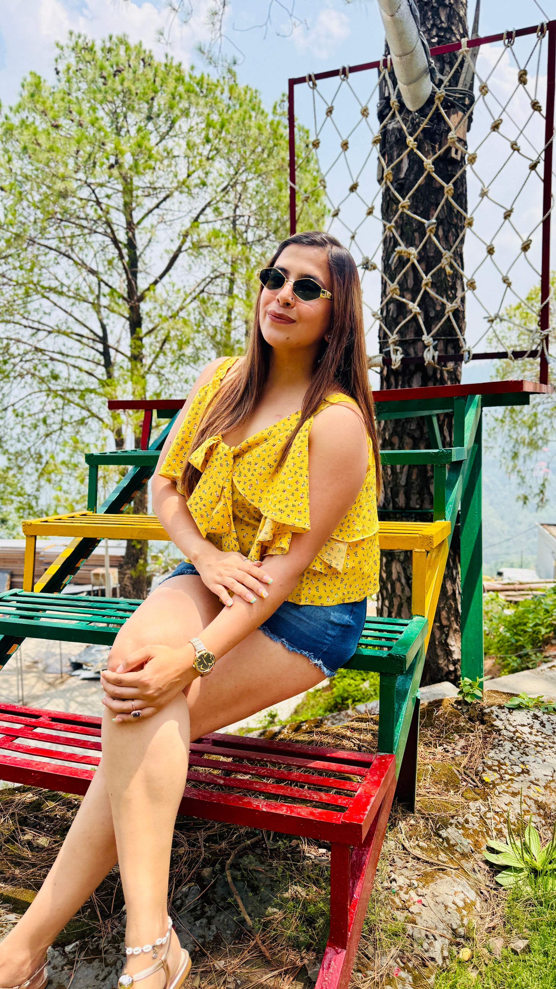 Brighten your day with the Yellow Flower Power Top 🌼☀️! Featuring delicate floral prints, flouncy ruffles, and a breezy sleeveless cut, it's perfect for sunny getaways and carefree vibes 🌸👒🌿. |