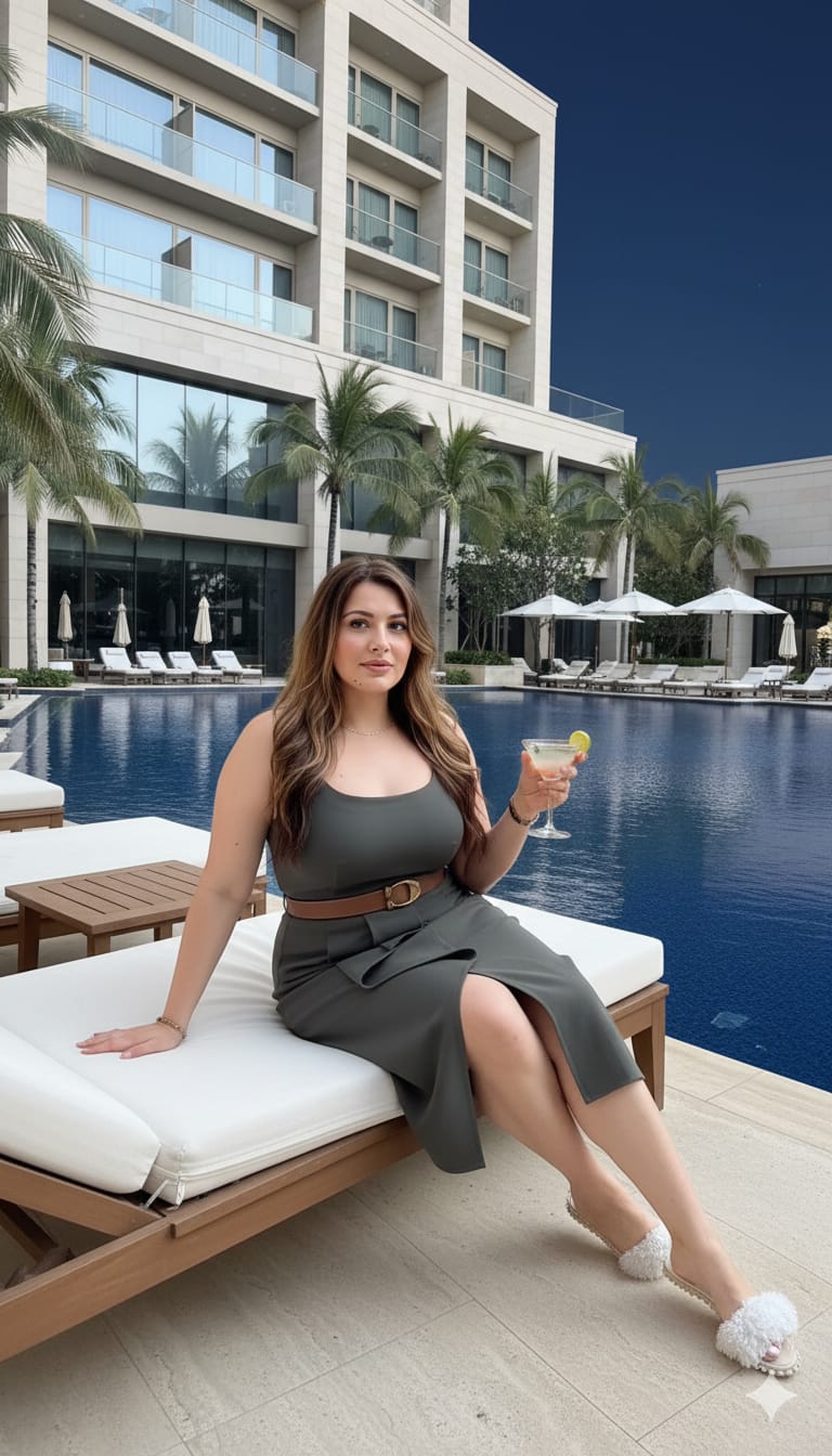 💚 The Army Green Birthday Dress exudes sophistication with its sleek fitted silhouette and front ruffle detail 🎀. Accented with a chic tan belt, it’s perfect for an elegant daytime celebration ✨🥂. |