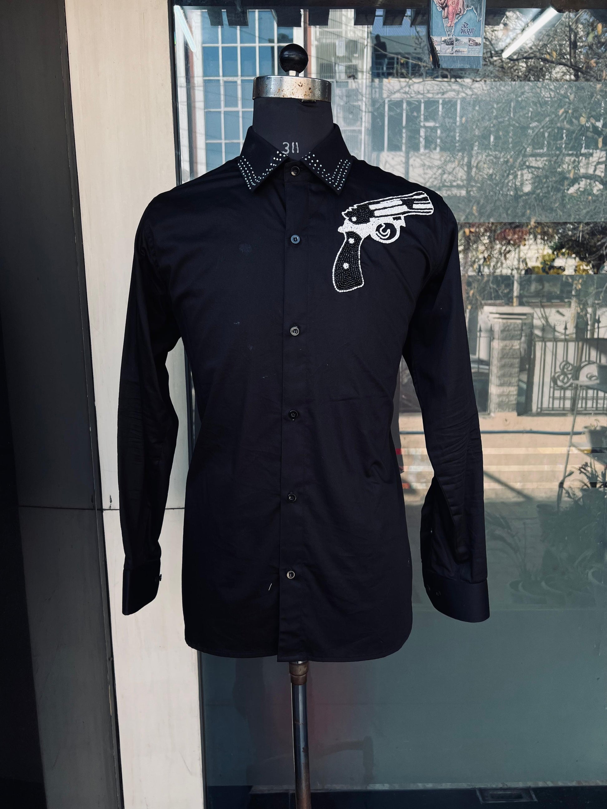 Menswear Black Embroidered Pistol Shirt