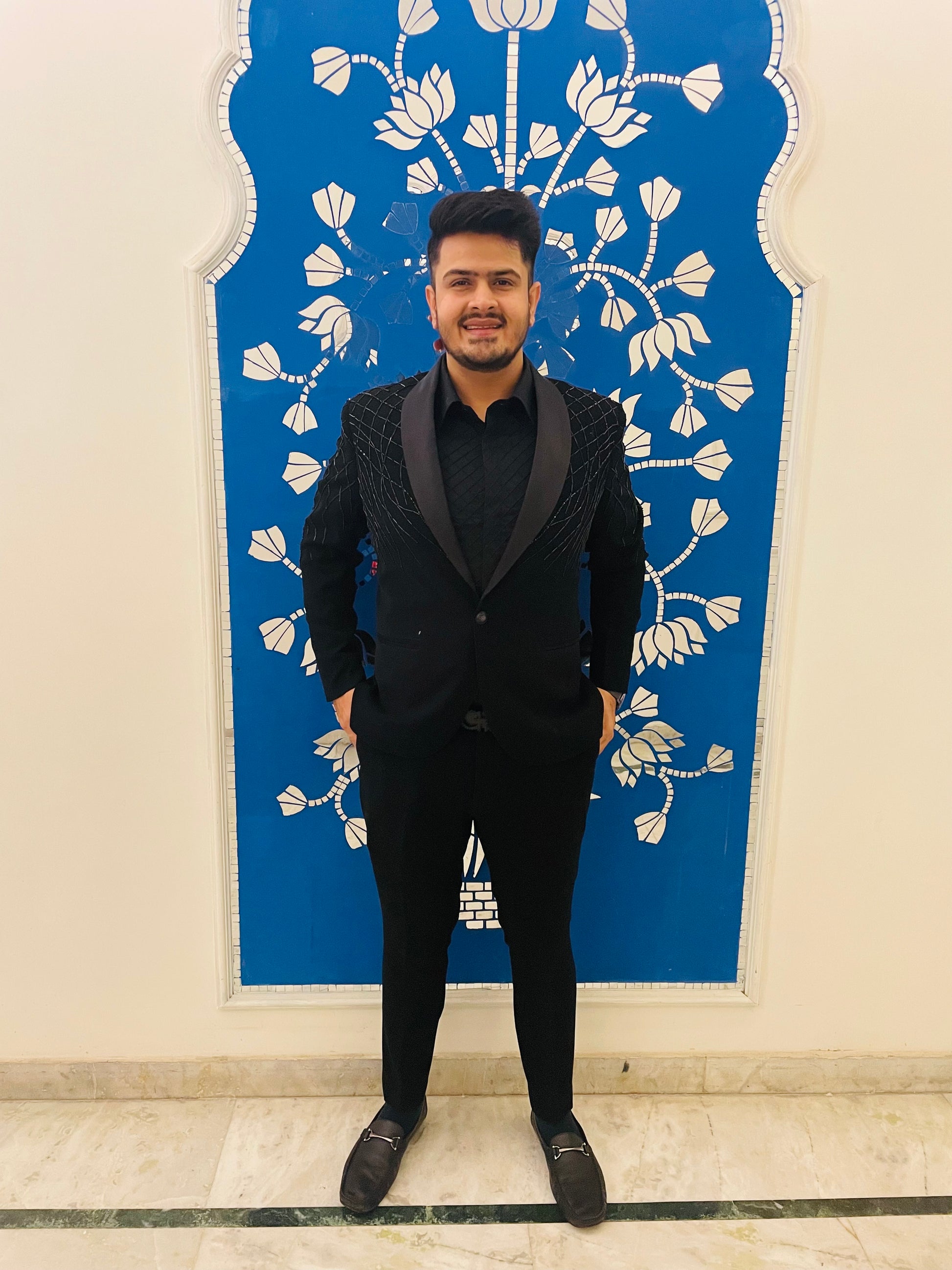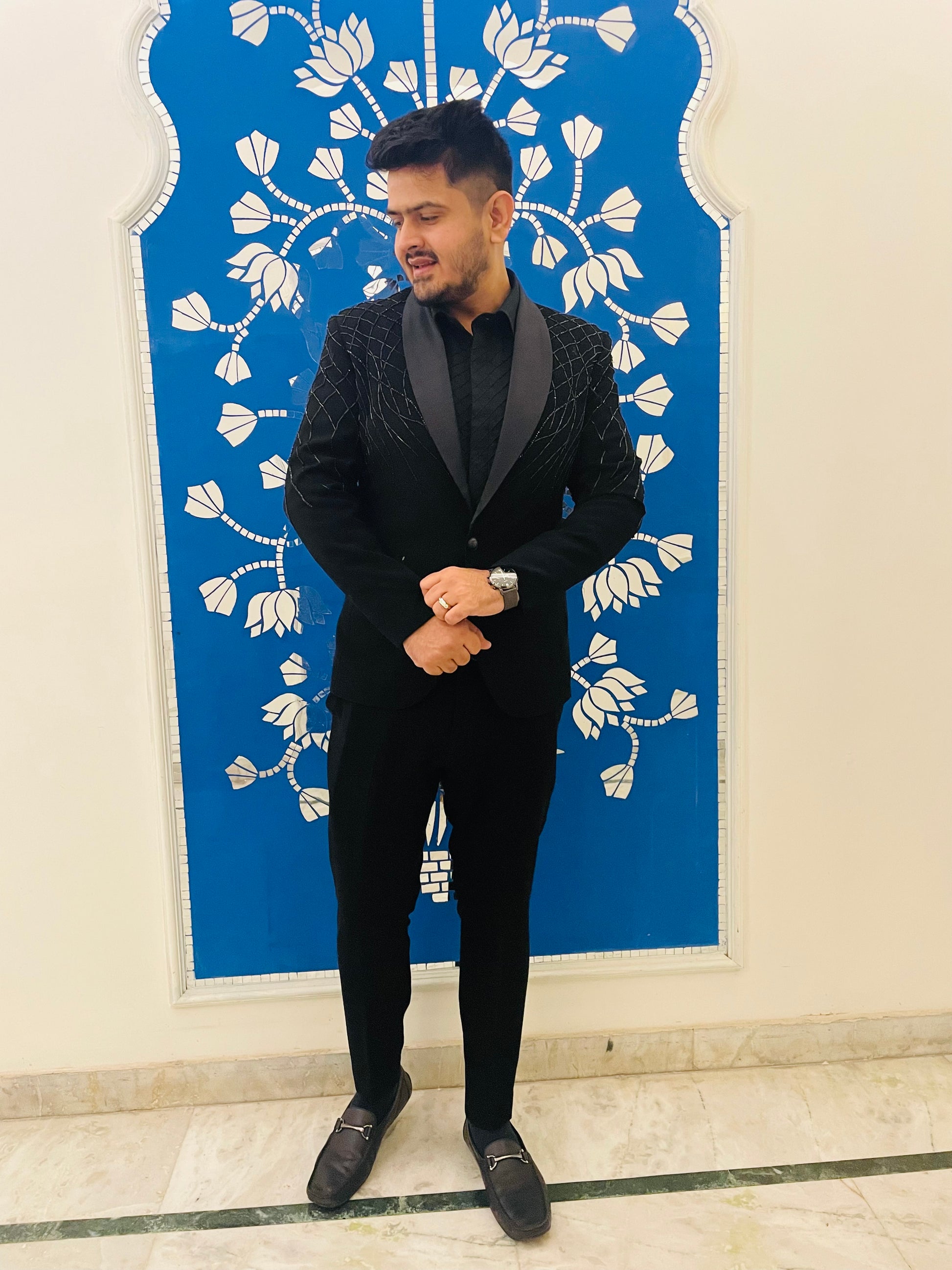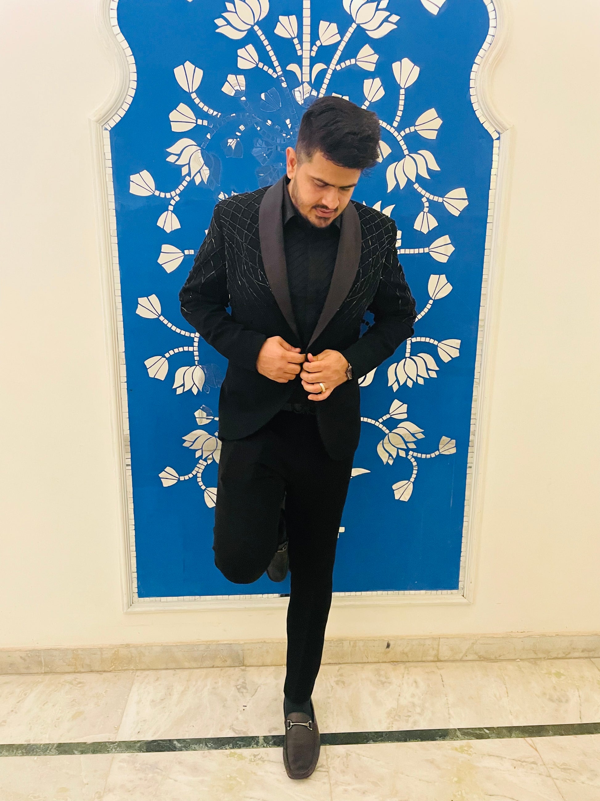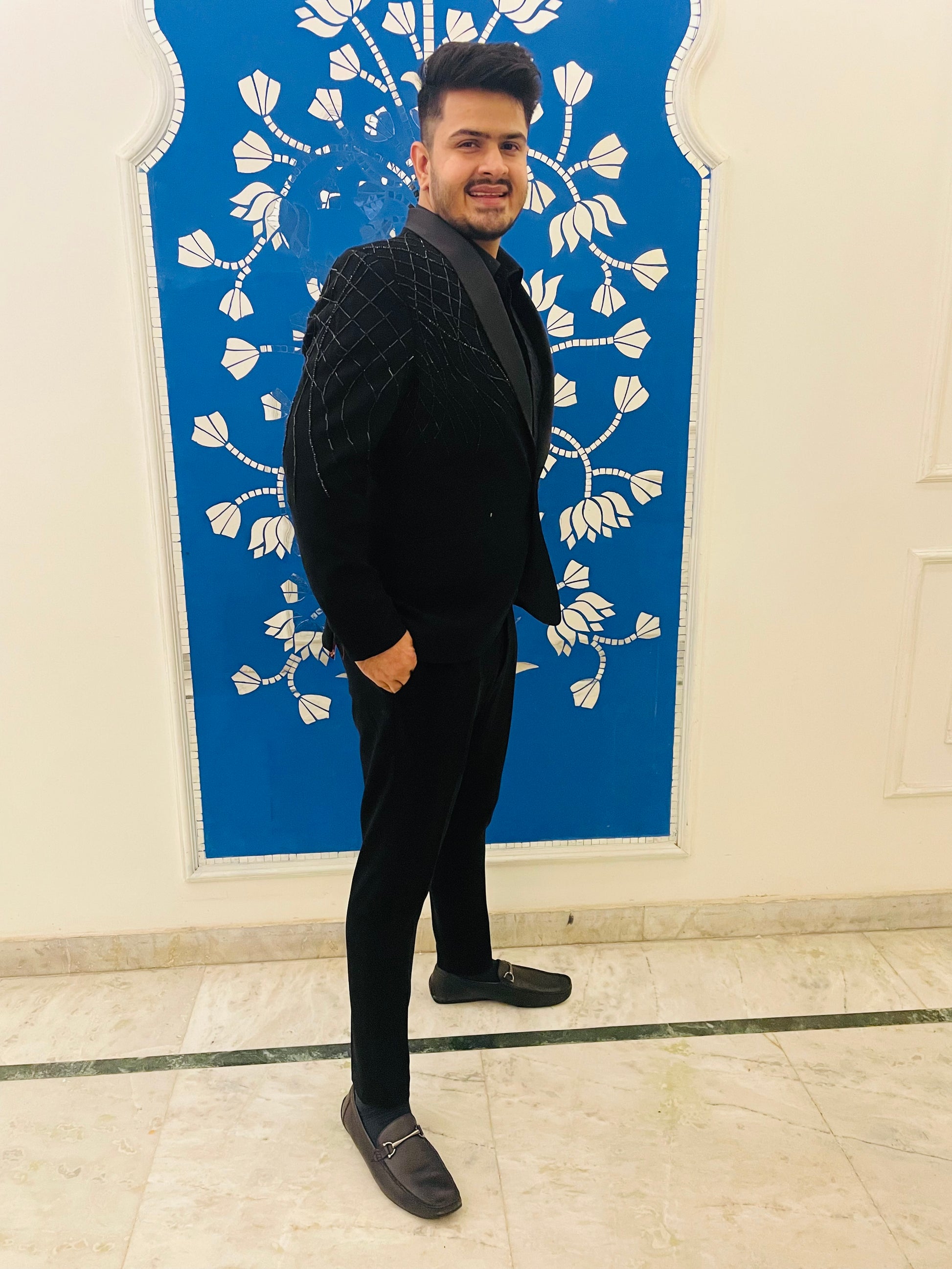 Crafted with precision, worn with pride: the allure of a well-tailored black embroidered suit." ✂️🖤 |