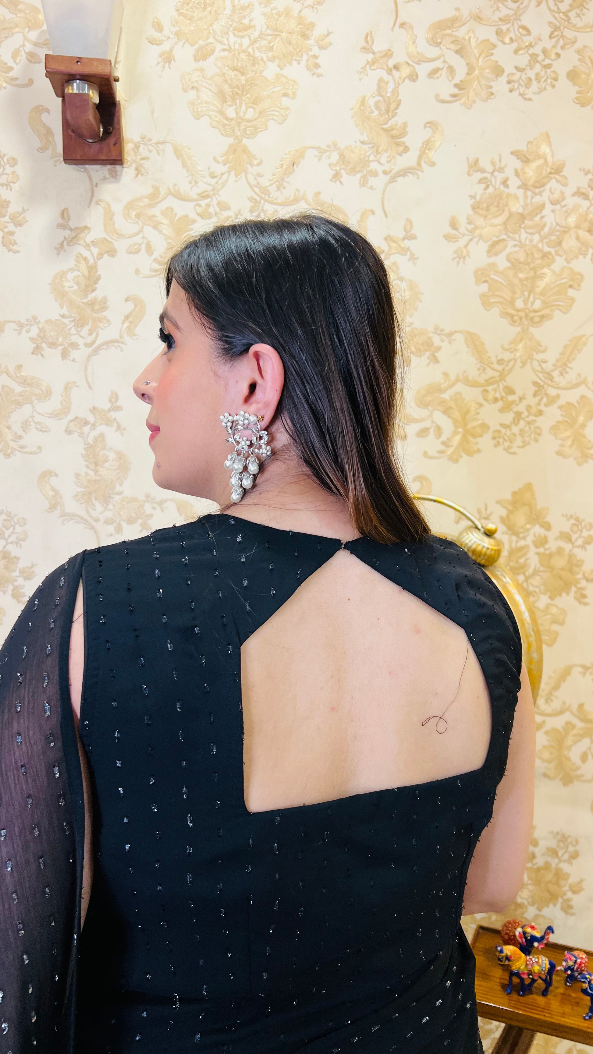 "Celebrate the festive spirit with our Black Lurex Maxi Saree! 🎉👗 Vibrant colors, intricate design, and luxurious fabric make this saree a perfect blend of tradition and elegance! #TeejTales #BougainvilleBeauty #SareeSplendor" |