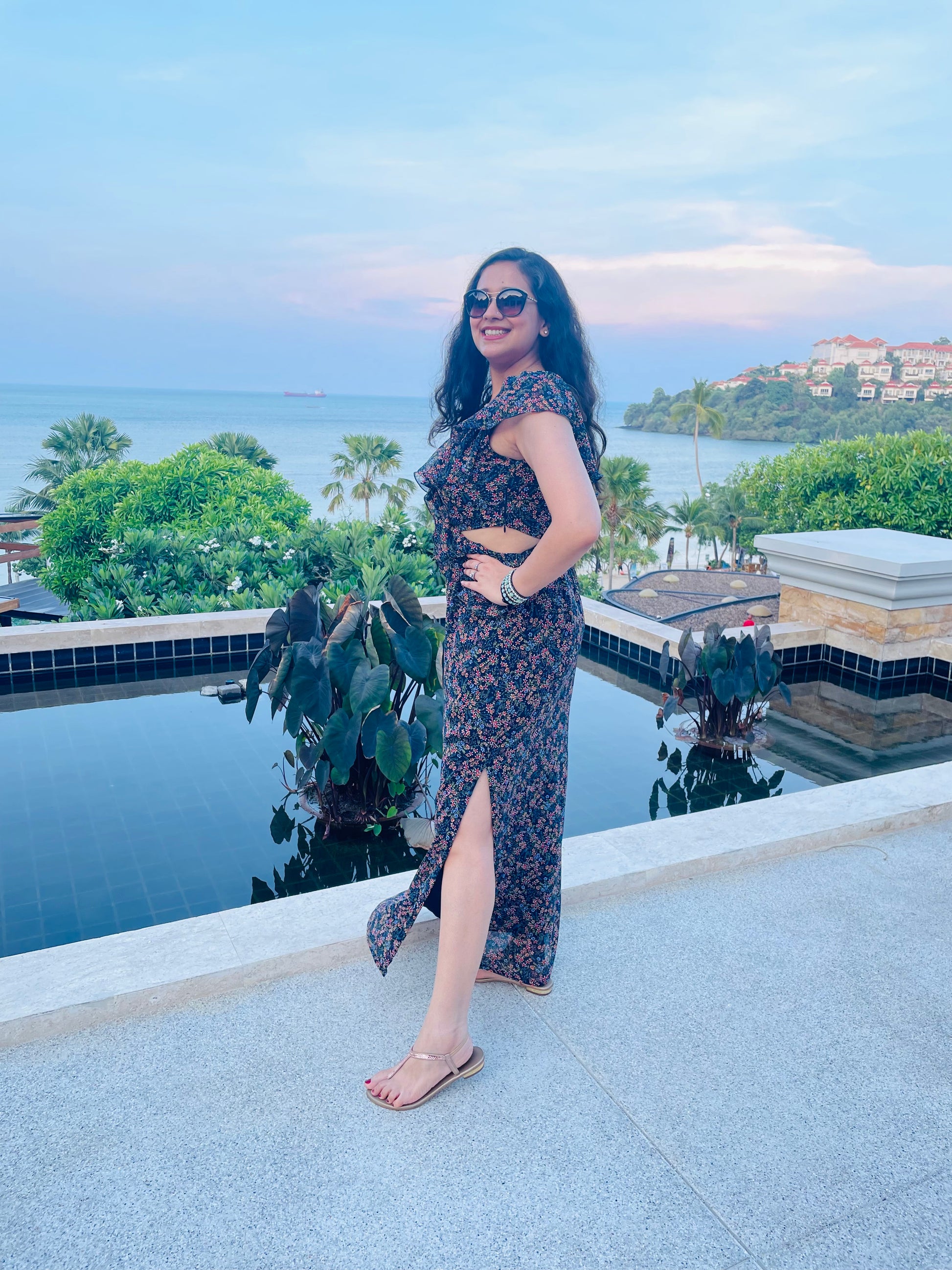 Side Cut On Waist Sample Length Maxi: 57" Model Height: 5.9" |