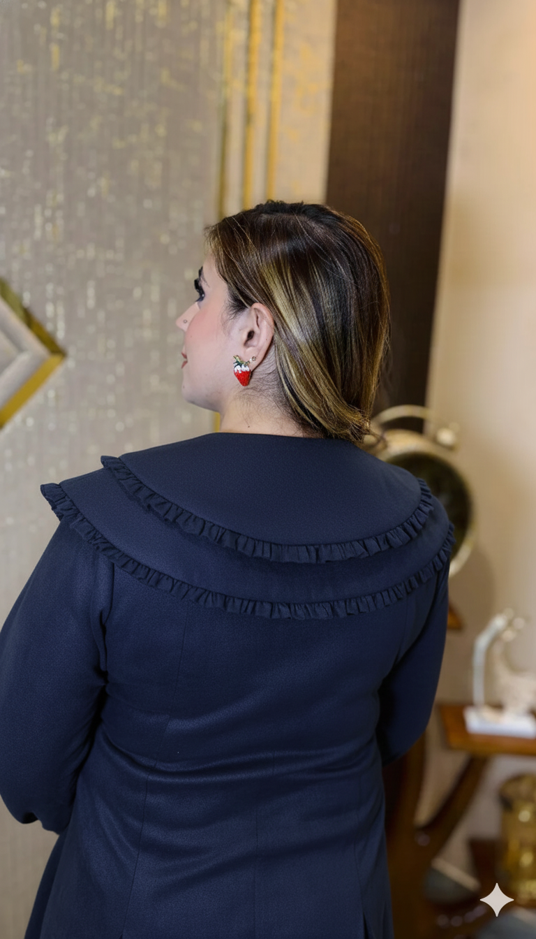 Double Flap Collar With Organza Frills Detaling |