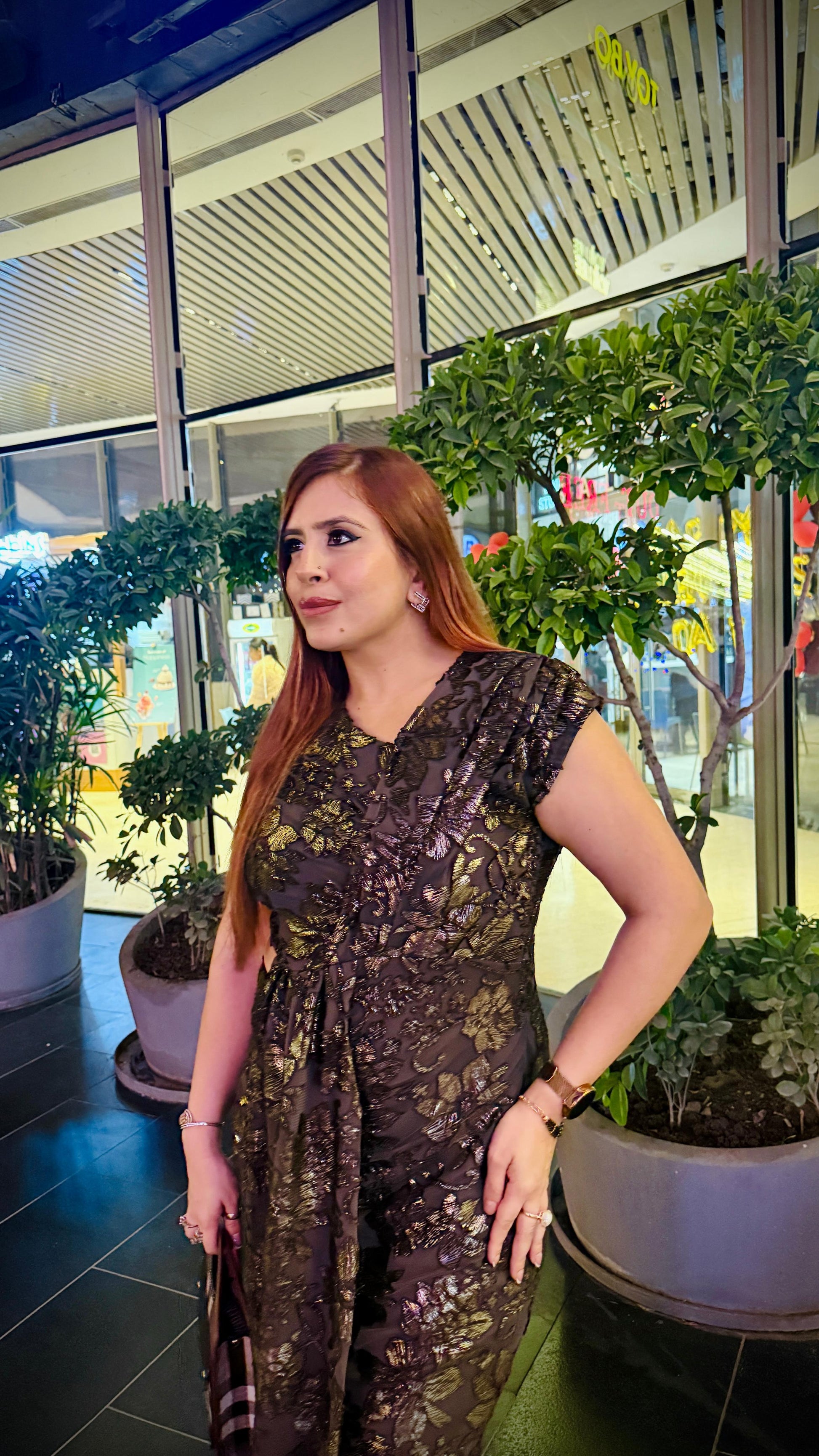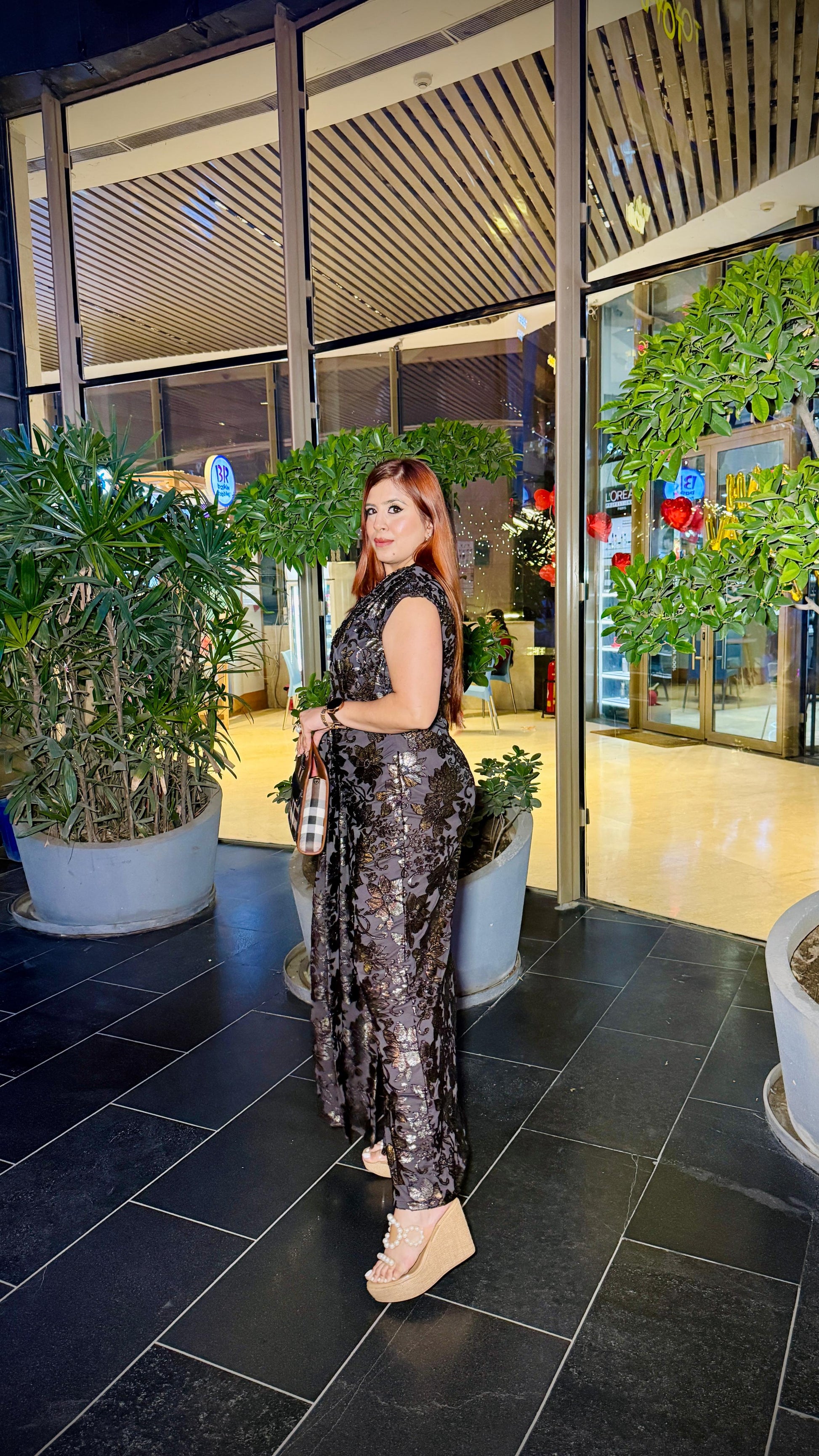 | Description | Lakhina Couture presents this exquisite sleeveless party gown crafted in premium velvet Brasso net, highlighted with rich floral shimmer for a refined festive look. Designed with a flattering V-neckline, clean back finish, and elegant straight fall, it offers a sculpted fit, graceful movement, and timeless charm—perfect for celebrations, evenings, and special occasions. |
