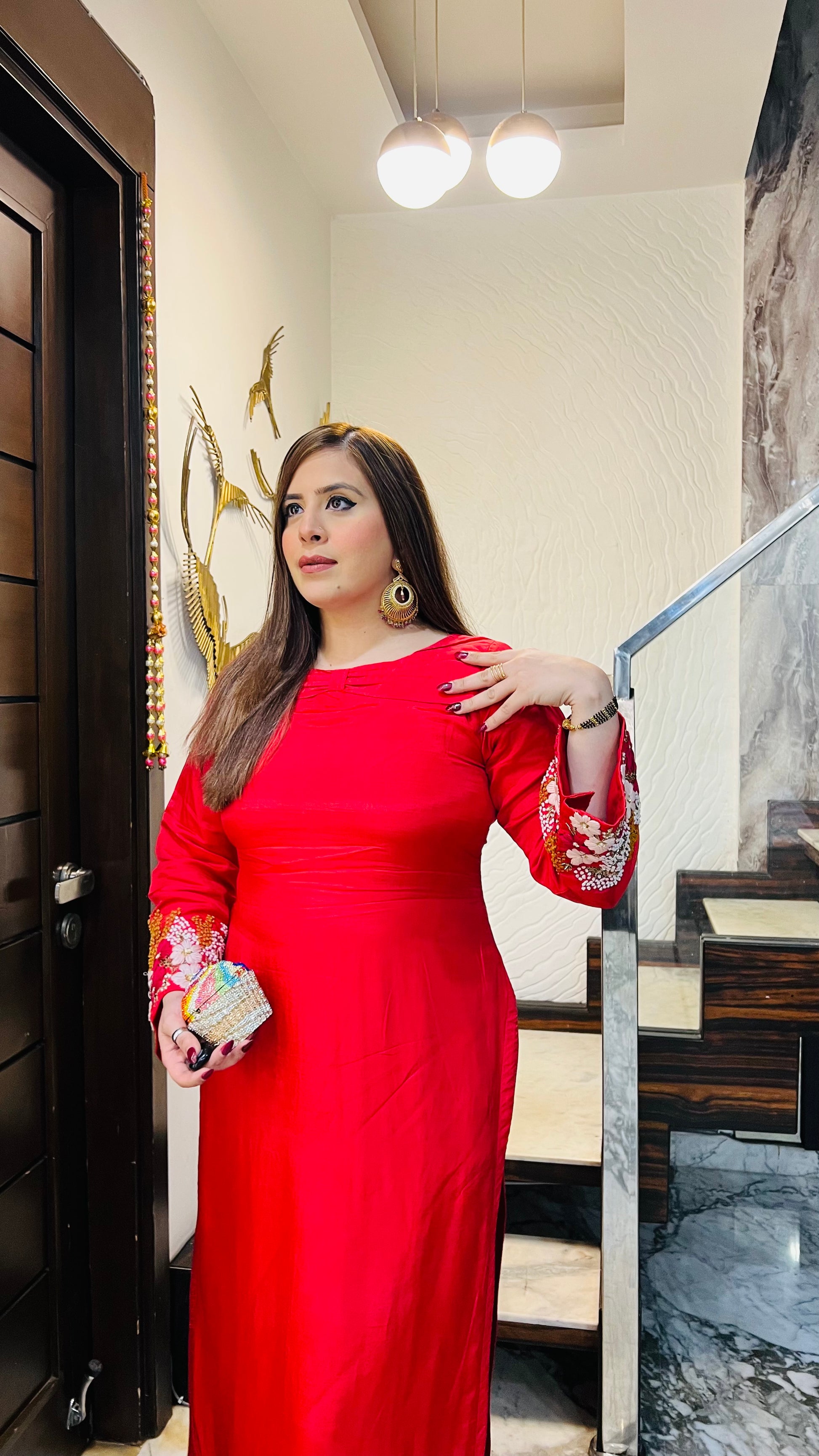 Full Sleeves (A-Line) Hand Embroidred Work On Mori |