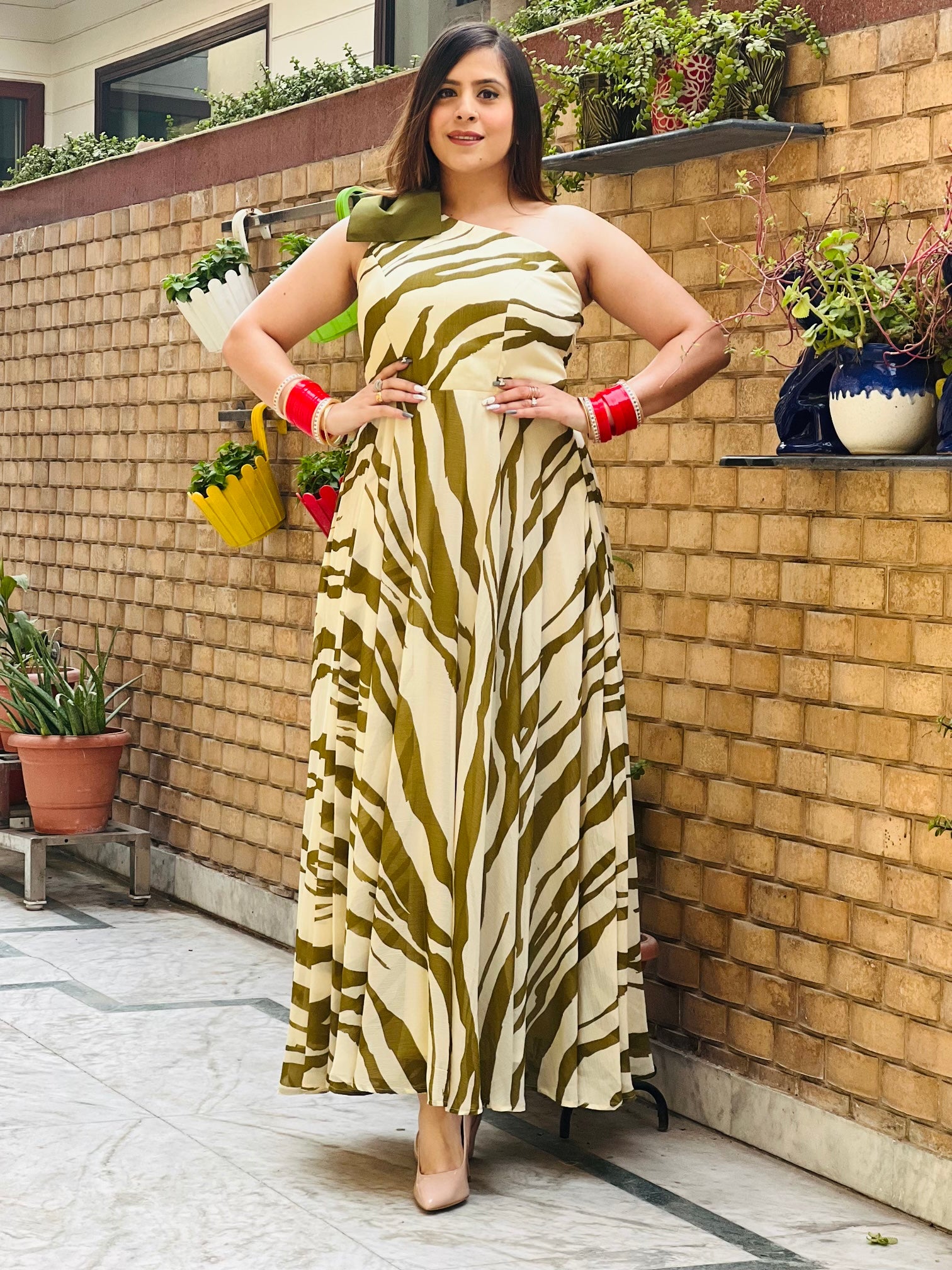 Comfortable and classy curated in finest quality georgette fabric, style this maxi dress in the coming season for a complimenting styling.
