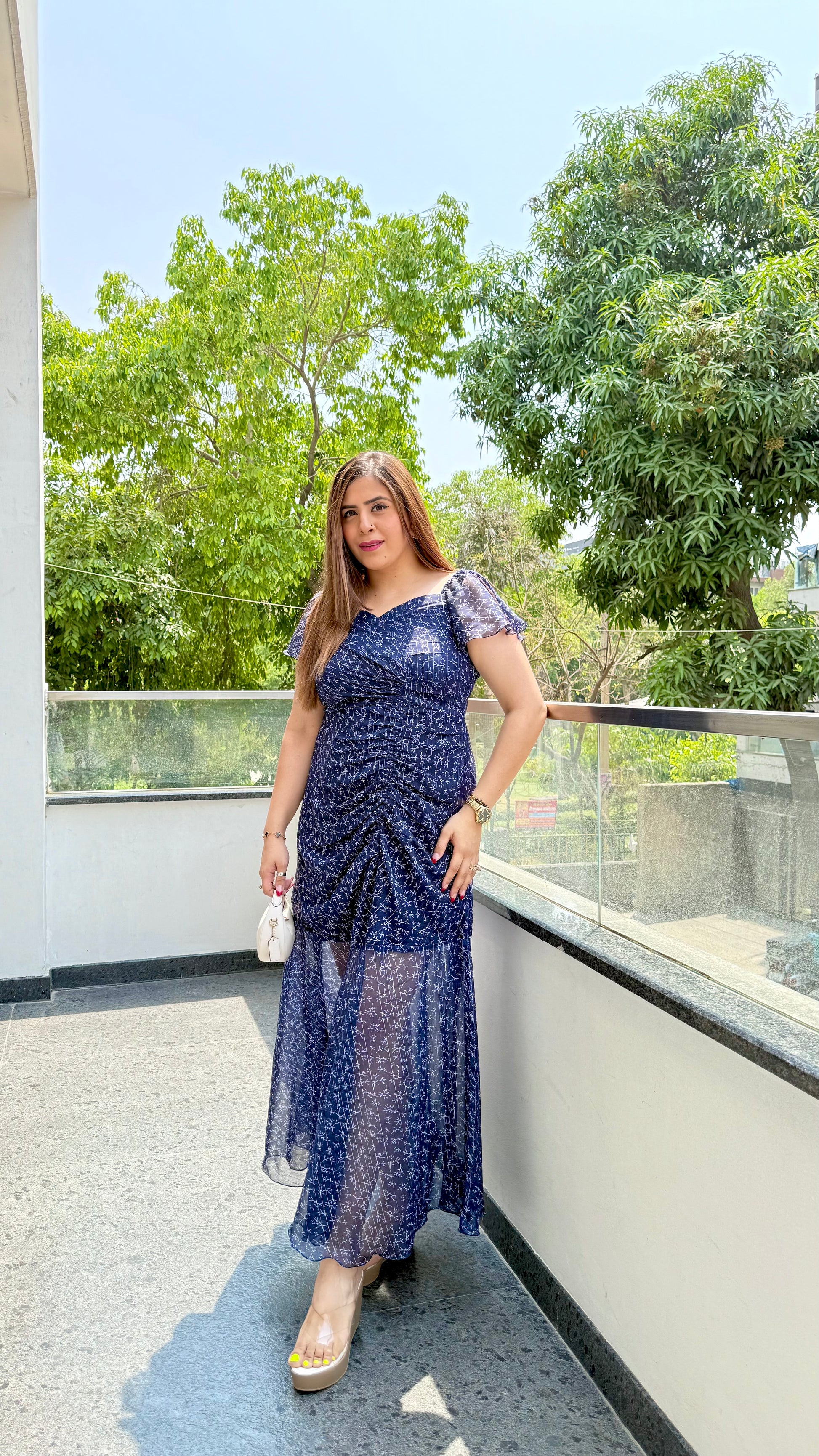 Own the moment in our Dare to Blue Drape Maxi Dress 💙—featuring dreamy star prints ✨, ruched front drape, sheer flutter sleeves, and a flowy silhouette. Elegant, ethereal, and effortlessly chic! 🌌👗