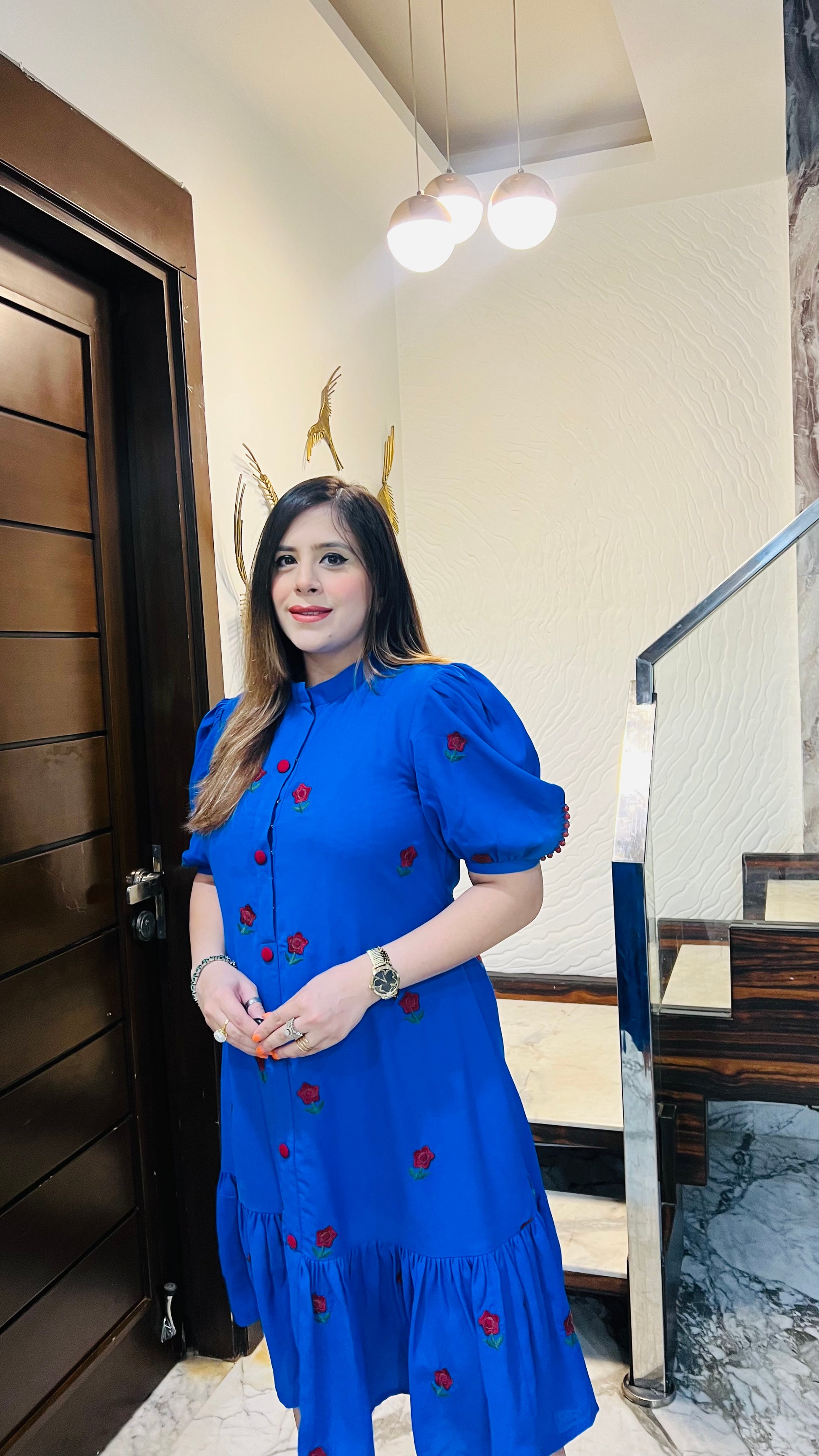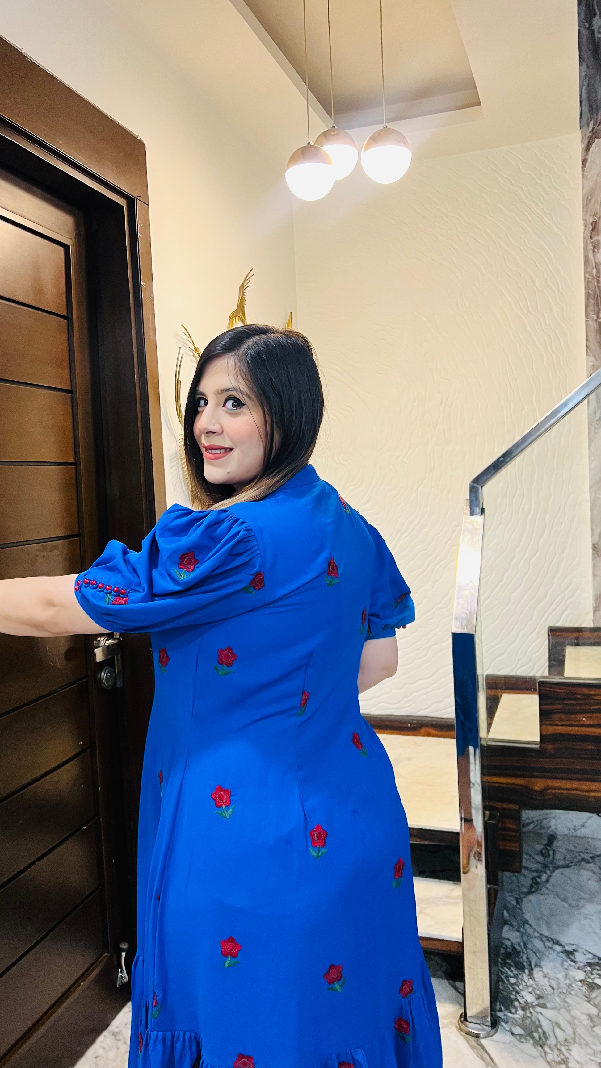 "Feel like royalty in our Embroidered Royalty Midi Dress. With exquisite embroidery and a graceful silhouette, this dress exudes elegance and sophistication for any special event. Elevate your style effortlessly! 👑💃🌟" |
