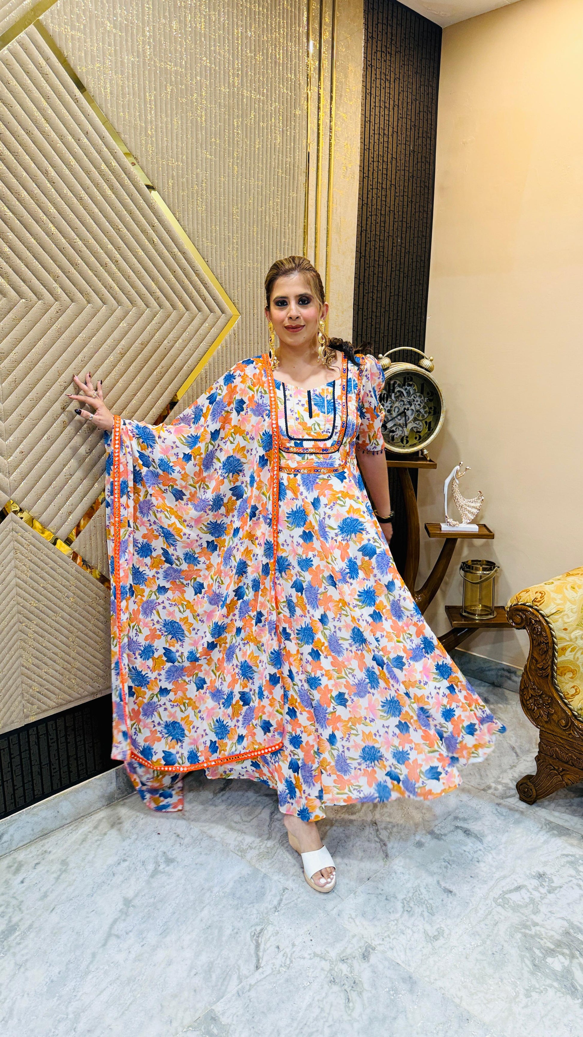 🌸 Bloom beautifully in the Flower Festive Anarkali 🌺✨. Vibrant floral prints 🌼, graceful flared silhouette 💃, intricate detailing ✨, perfect for weddings 💍, festive celebrations 🎉, and joyful gatherings 🥳. |