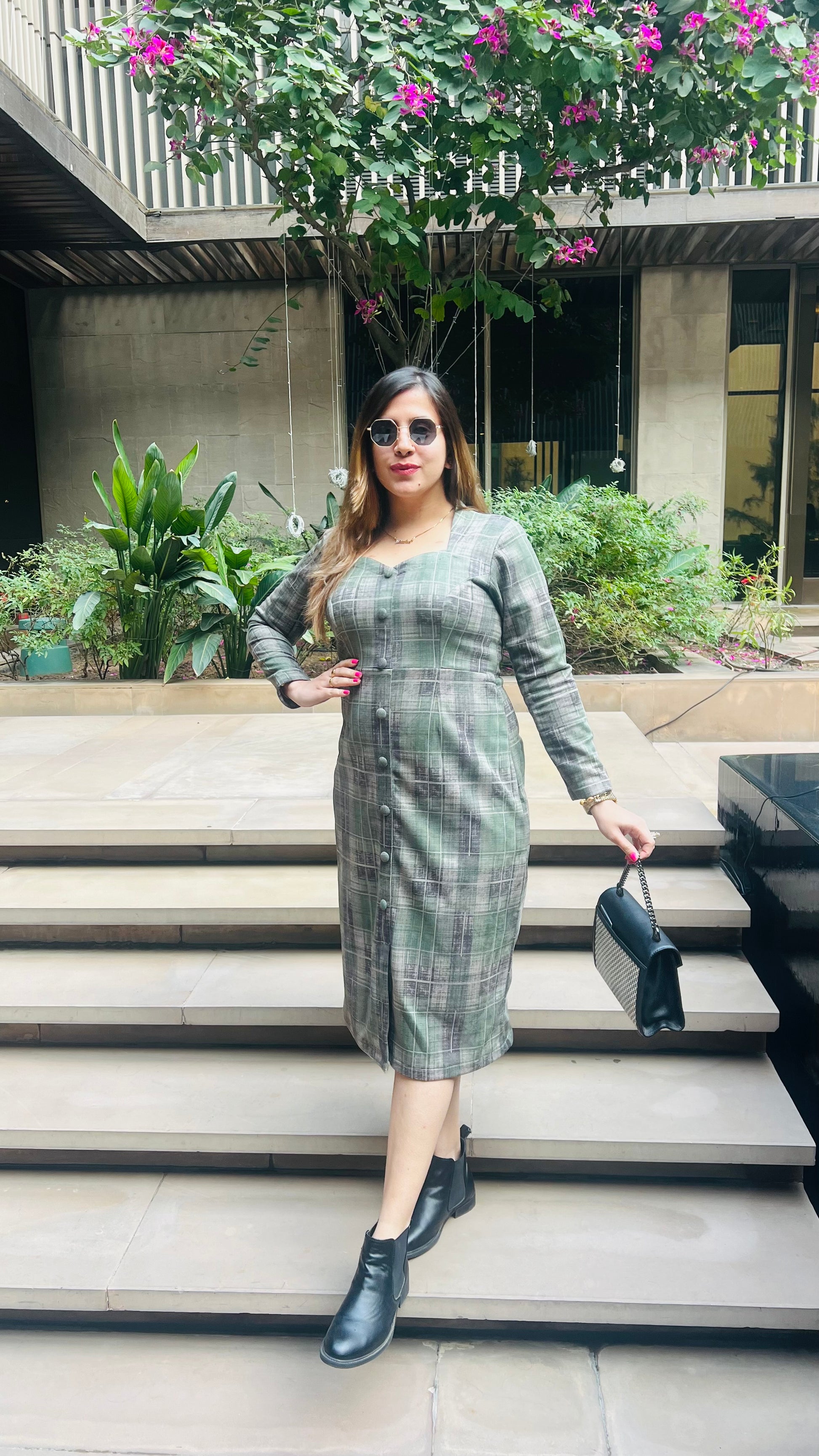 Green checks, midi vibes, and a touch of glamour – the perfect equation! 💚🌟 |