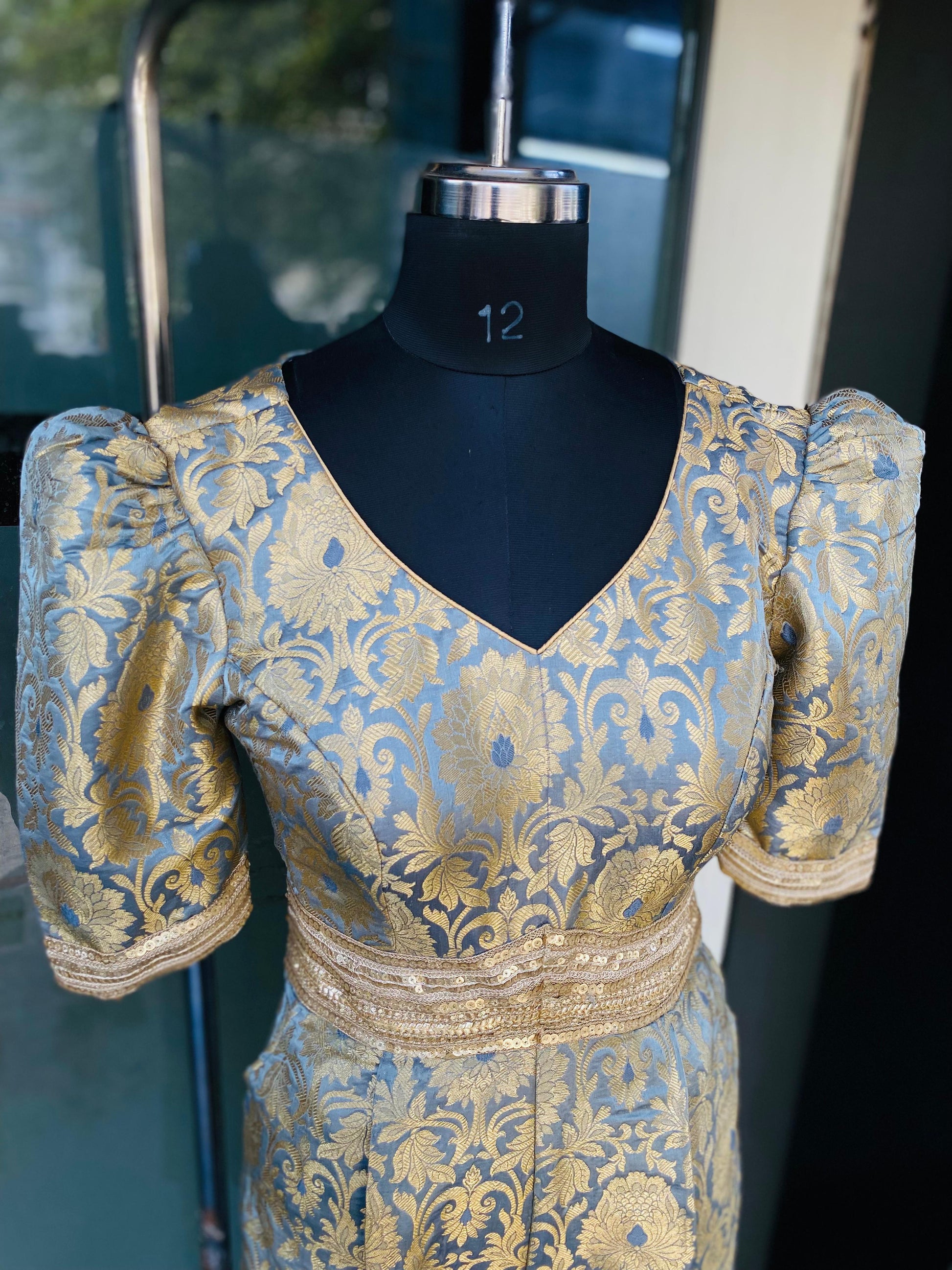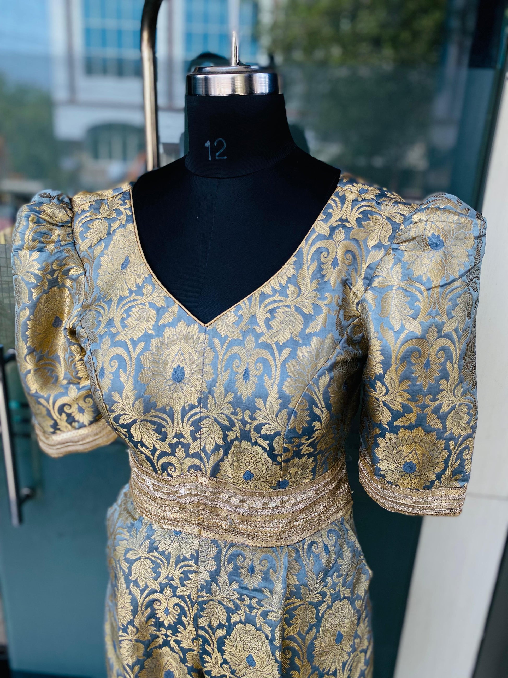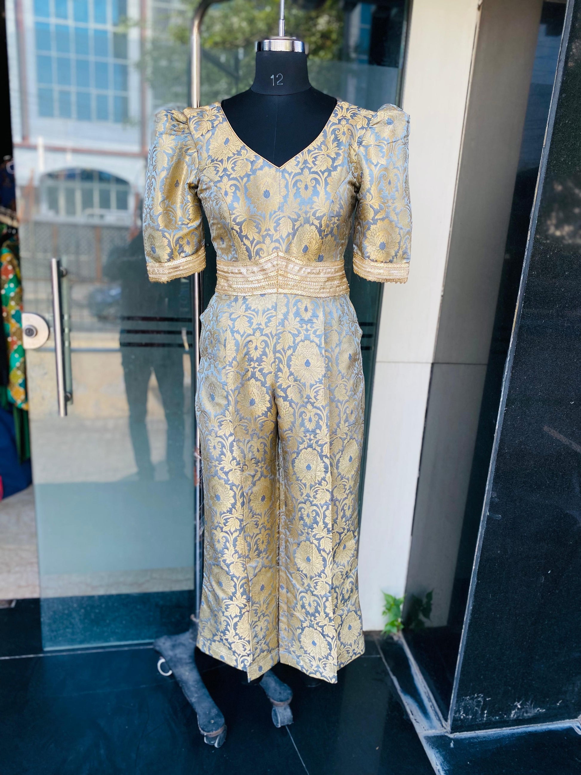 "Grey elegance meets traditional charm in our Grey Banarasi Ethnic Jumpsuit! 🔥👗 Soft grey hue, intricate Banarasi weave, and comfortable design make this jumpsuit a perfect blend of style and heritage! #GreyGlamour #BanarasiBeauty #EthnicChic" |