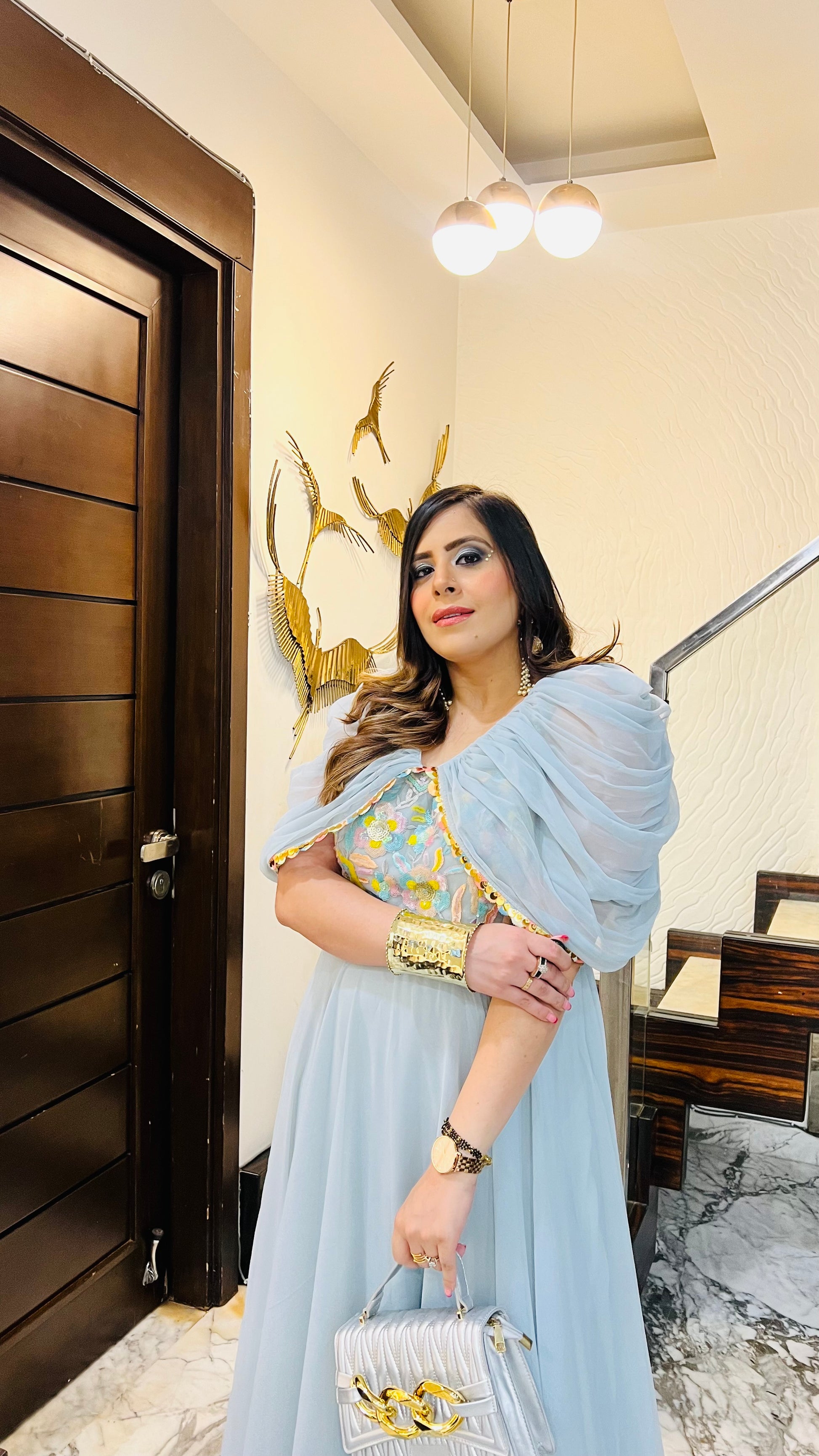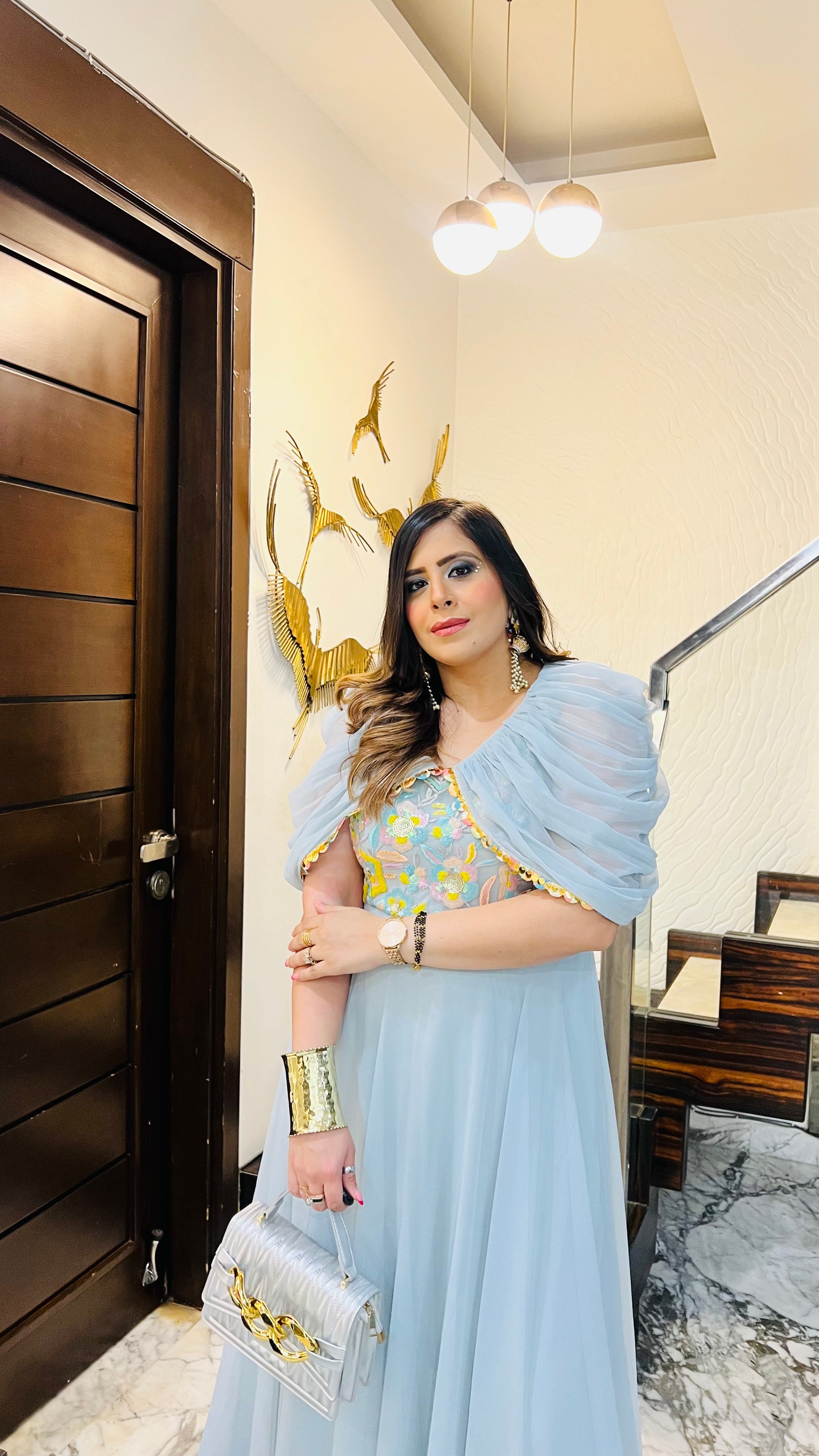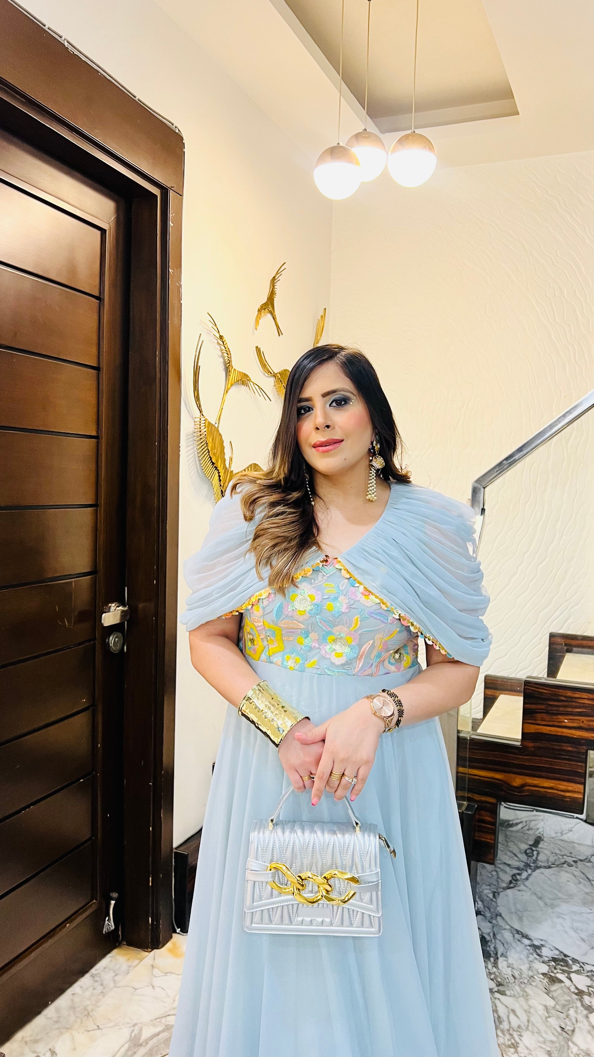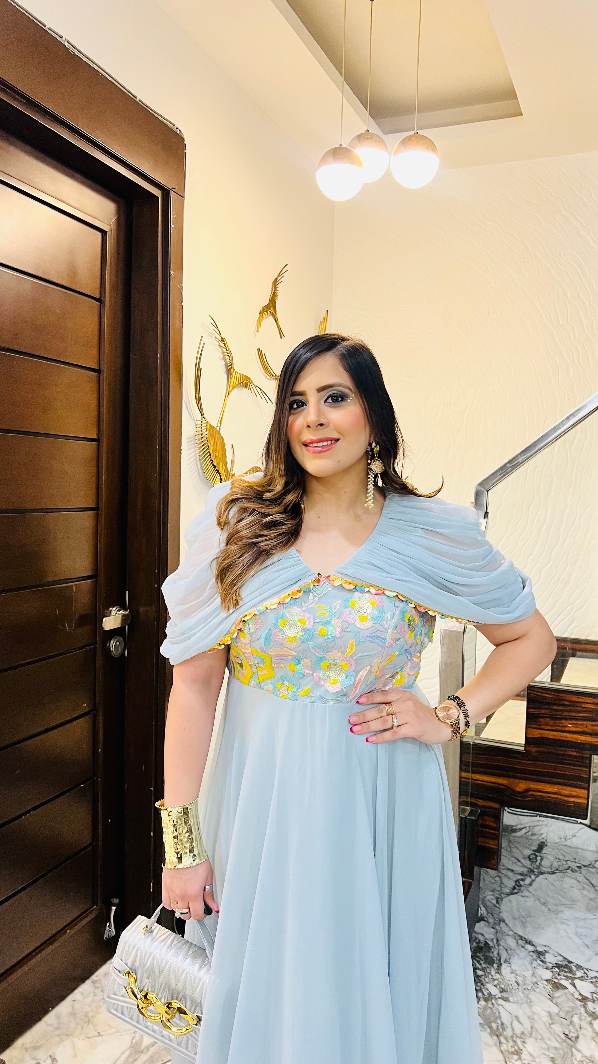 ย "โจ Embrace elegance with our Grey Carnival Gown! ๐ A stunning fusion of soft, flowy fabric and delicate embroidery. Perfect for making a statement at any celebration. ๐ #GlamourUnleashed #ElegantFashion" ย |