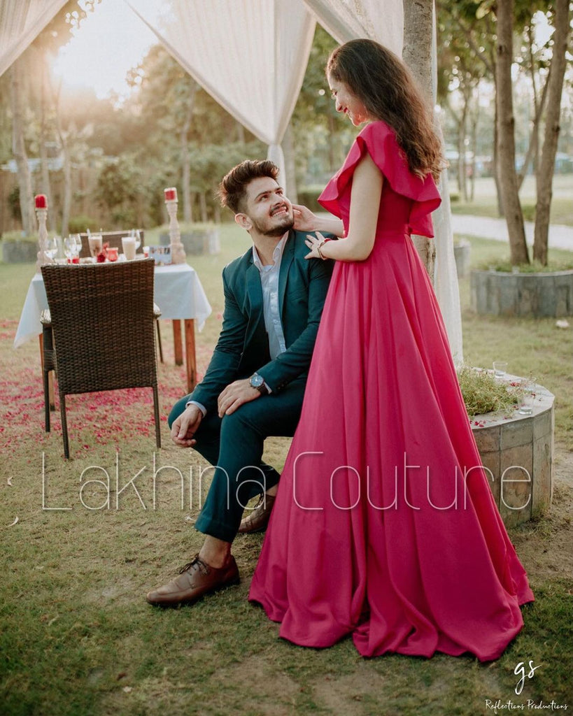 Styled Aparna for a surprise proposal shoot in a gorgeous box pleated flared gown that exhibits class everytime you style it.