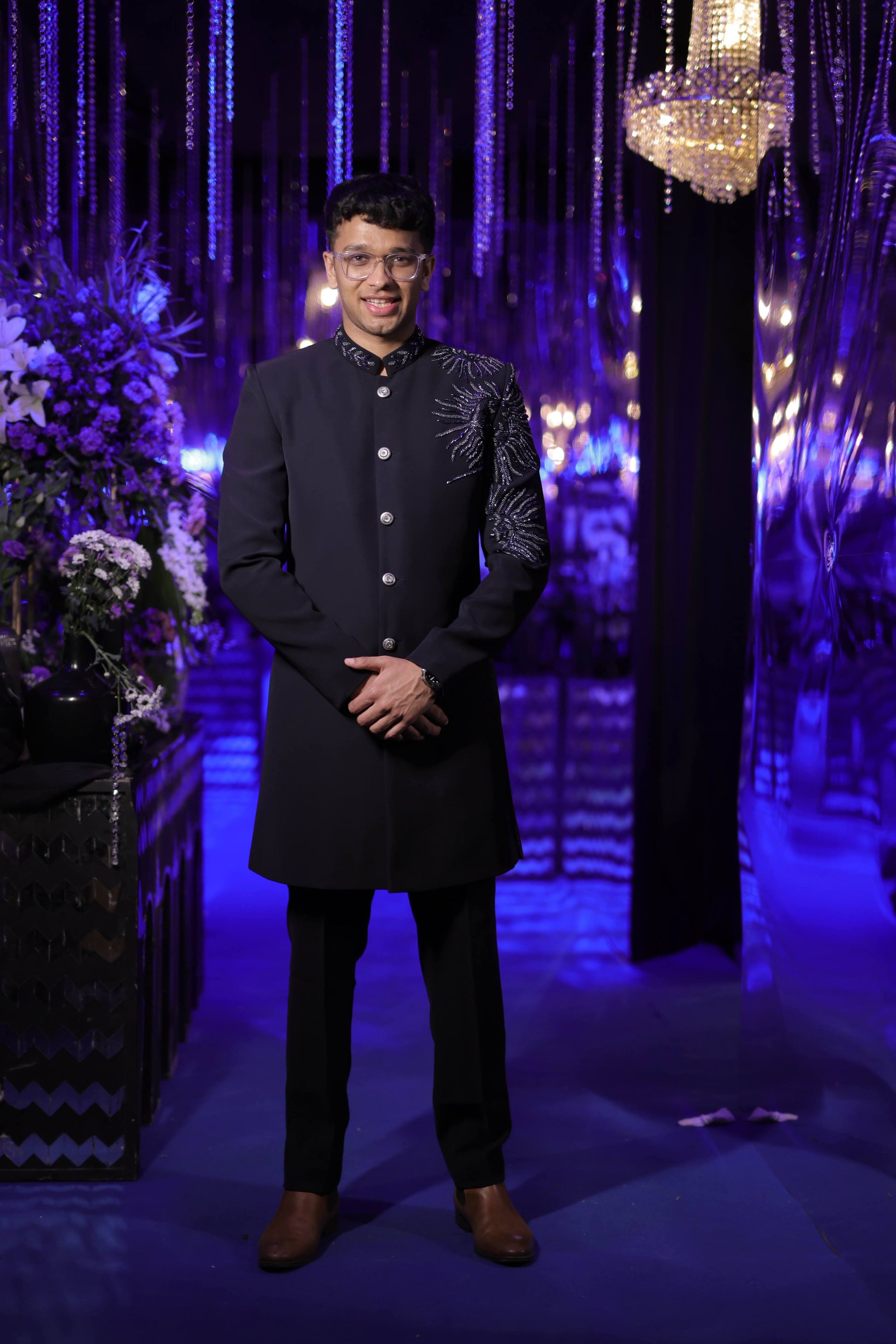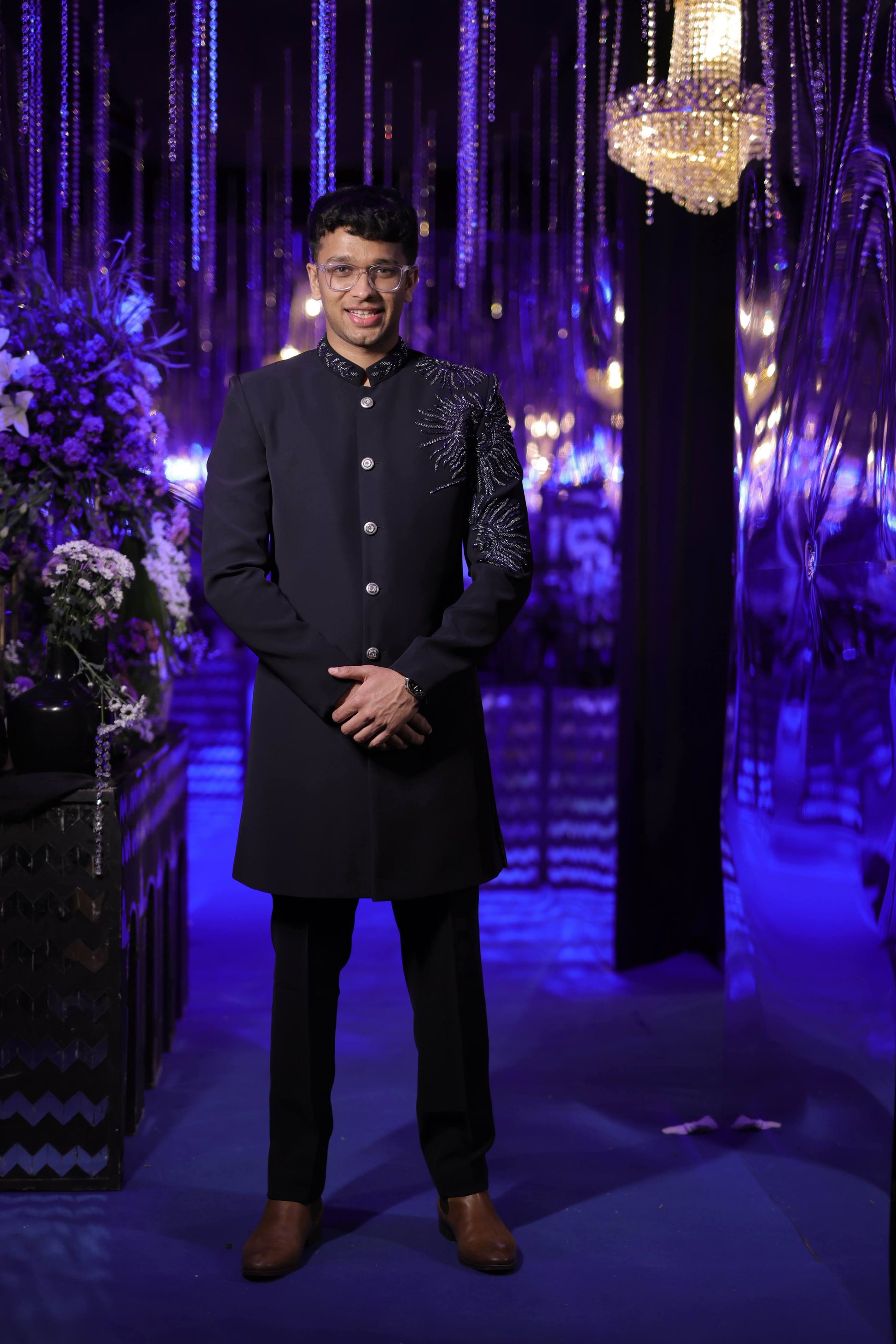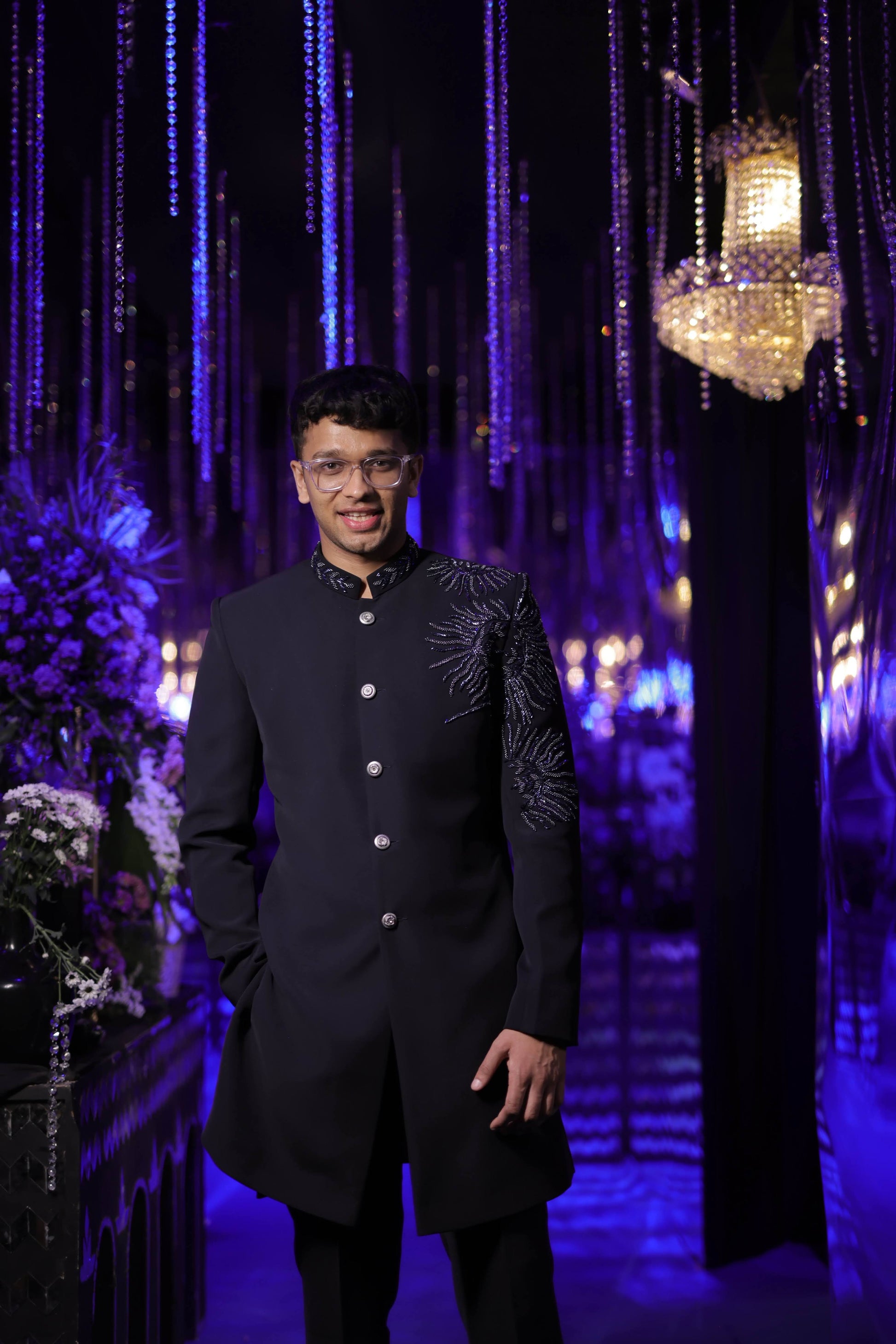 The Ink Blue Indo Western✨ features an elegant Blue hue 🌸 adorned with intricate embroidery ✨. A regal yet modern look, perfect for weddings 🎉, festivities 🎊, and grand celebrations 🥳! |