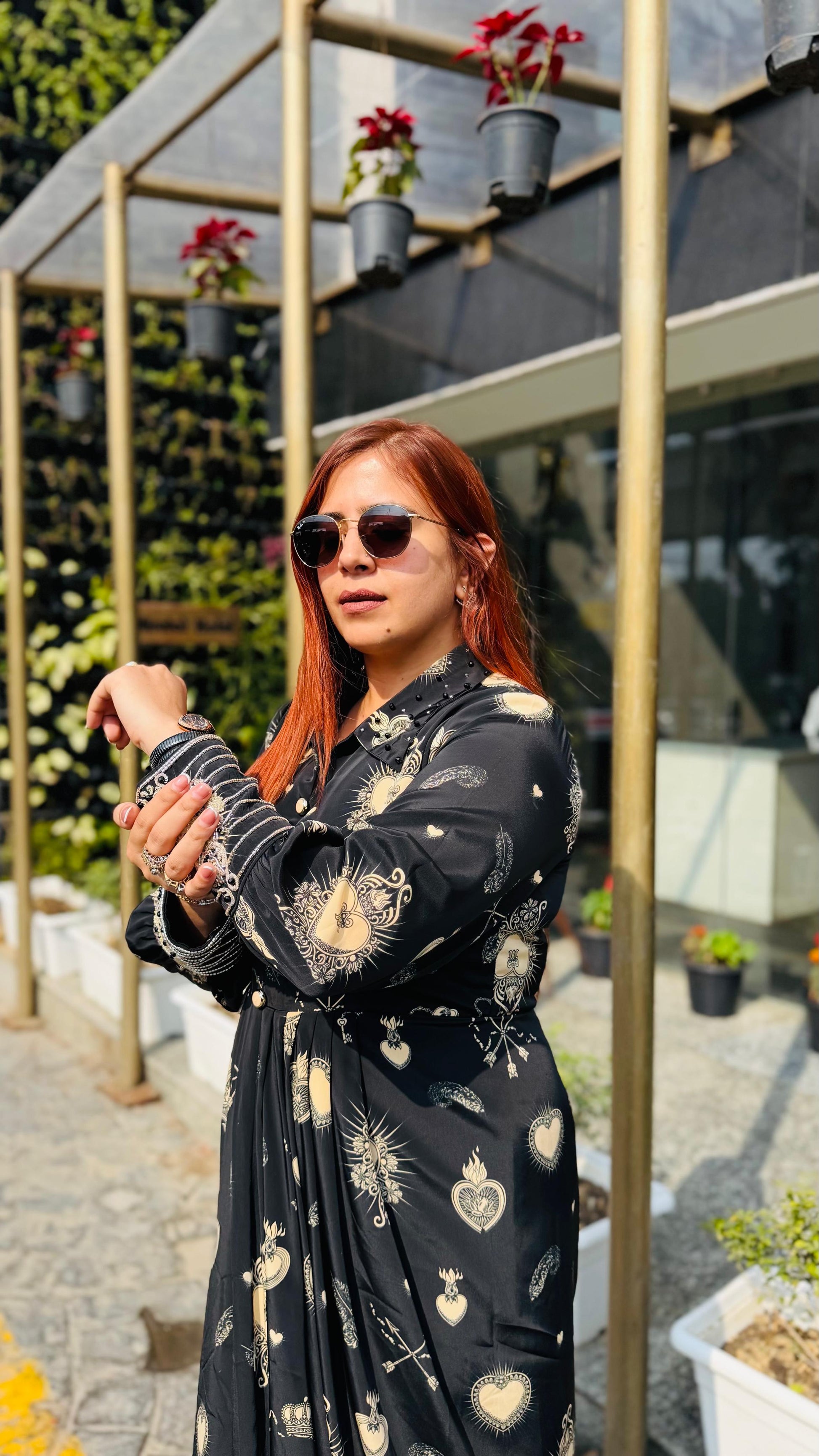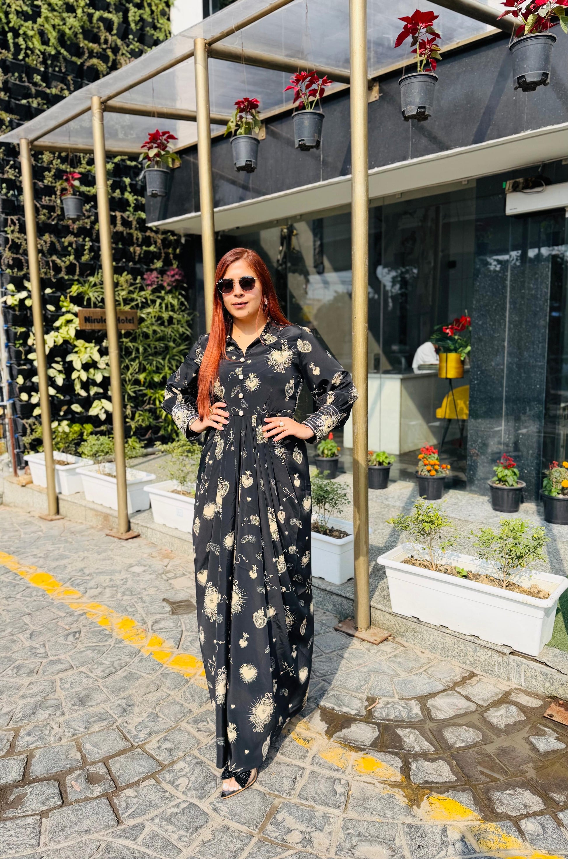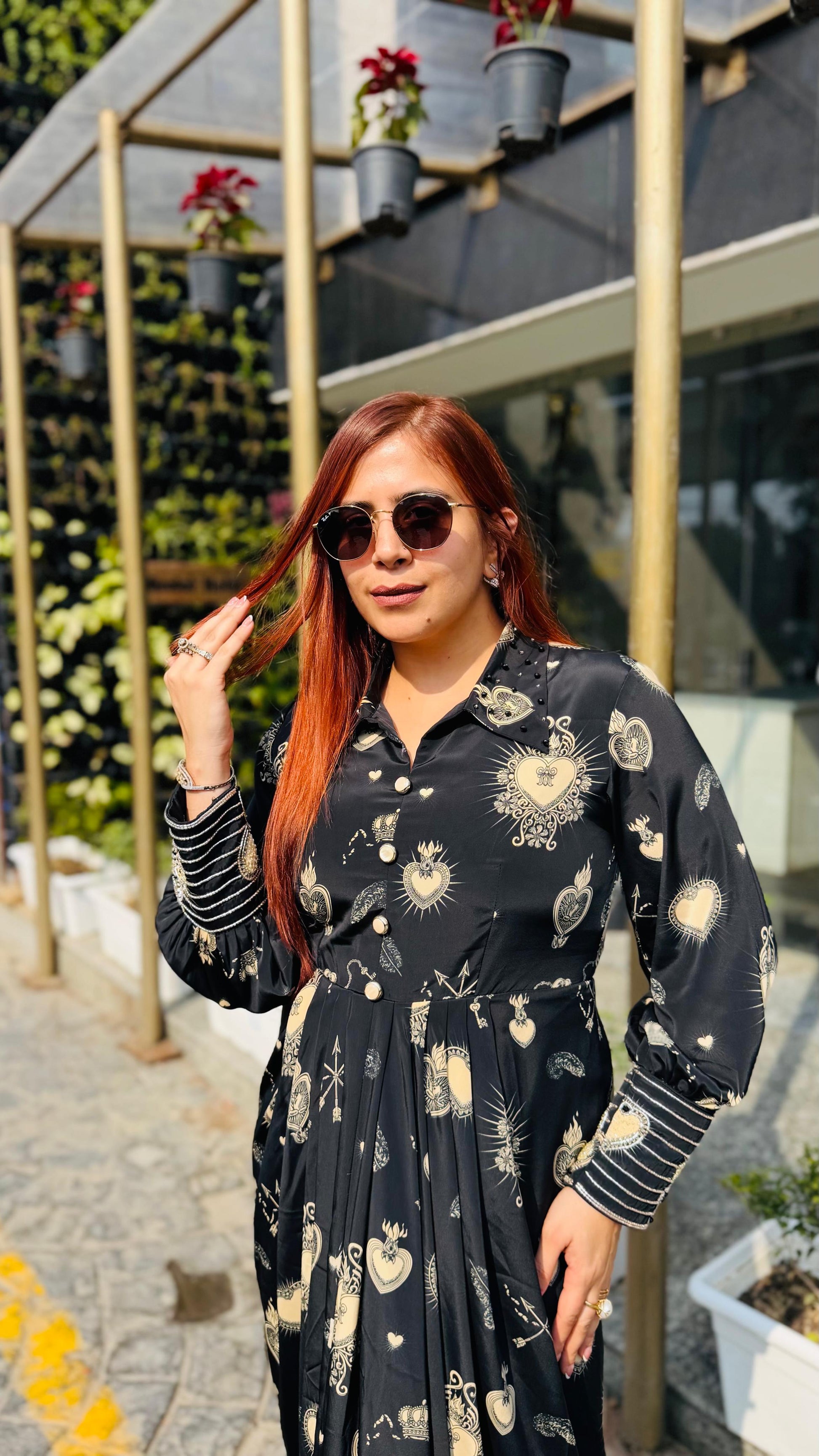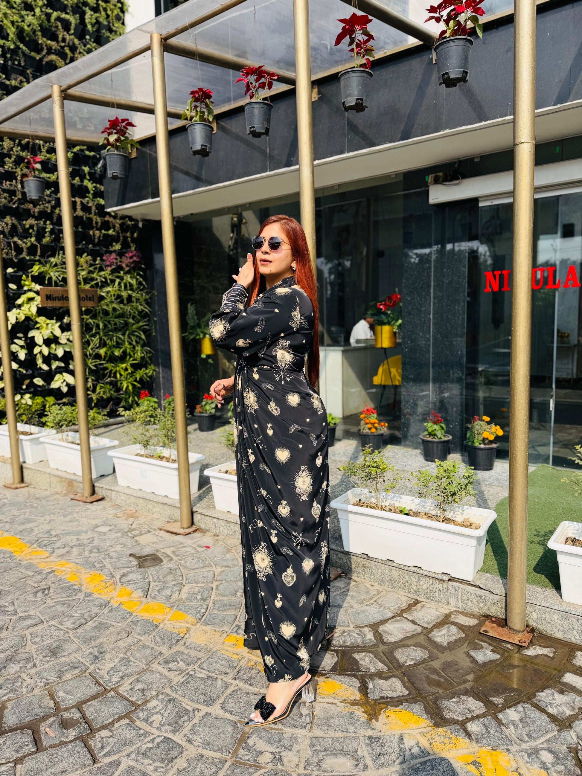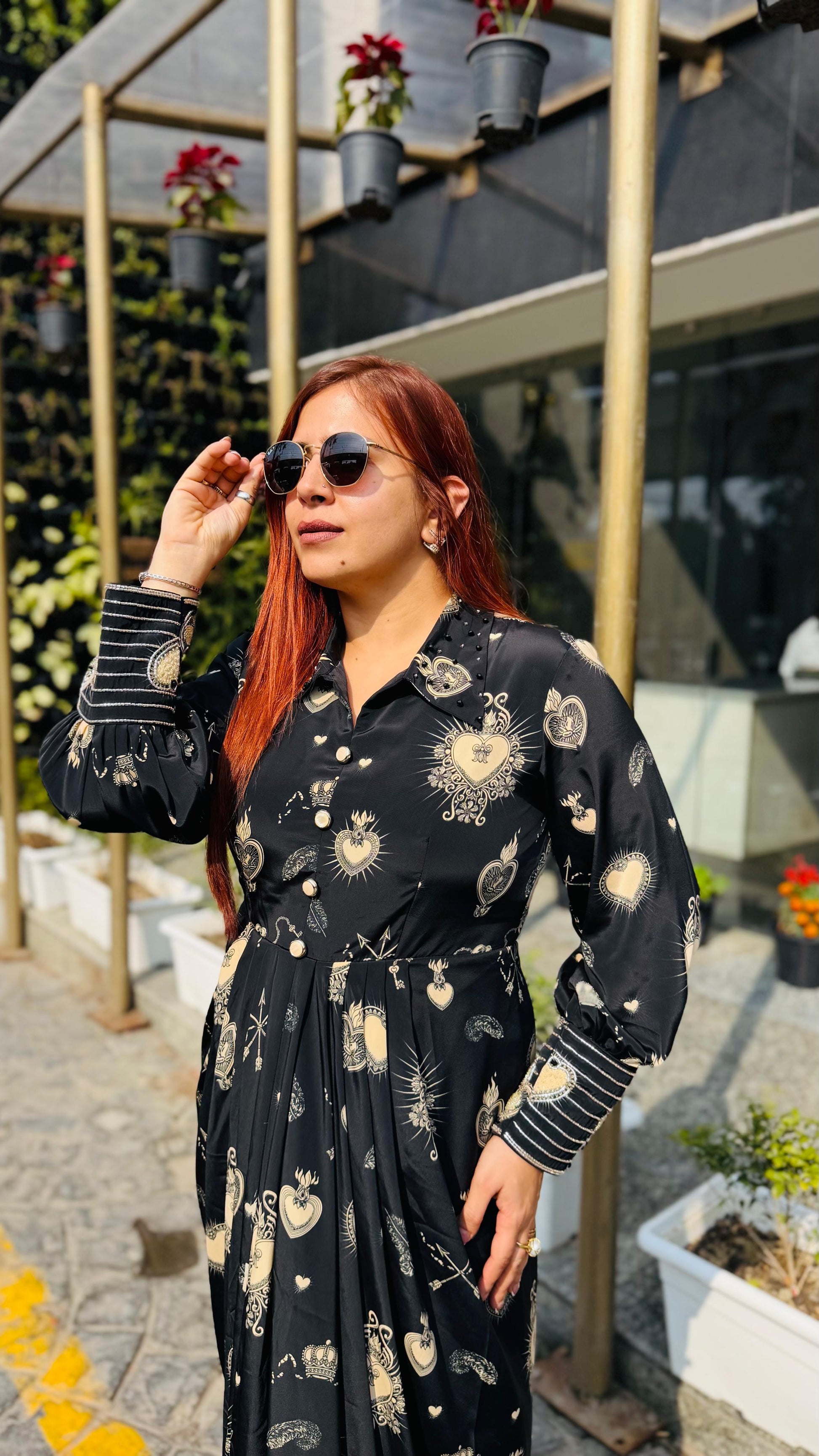| Description | Lakhina Couture presents this elegant black satin drape, designed with a refined fall collar, structured yoke, and fluid drape detailing. Crafted for effortless everyday sophistication, it features full sleeves with statement cuffs and a tailored silhouette. Perfect for modern casual styling with a touch of luxury. |