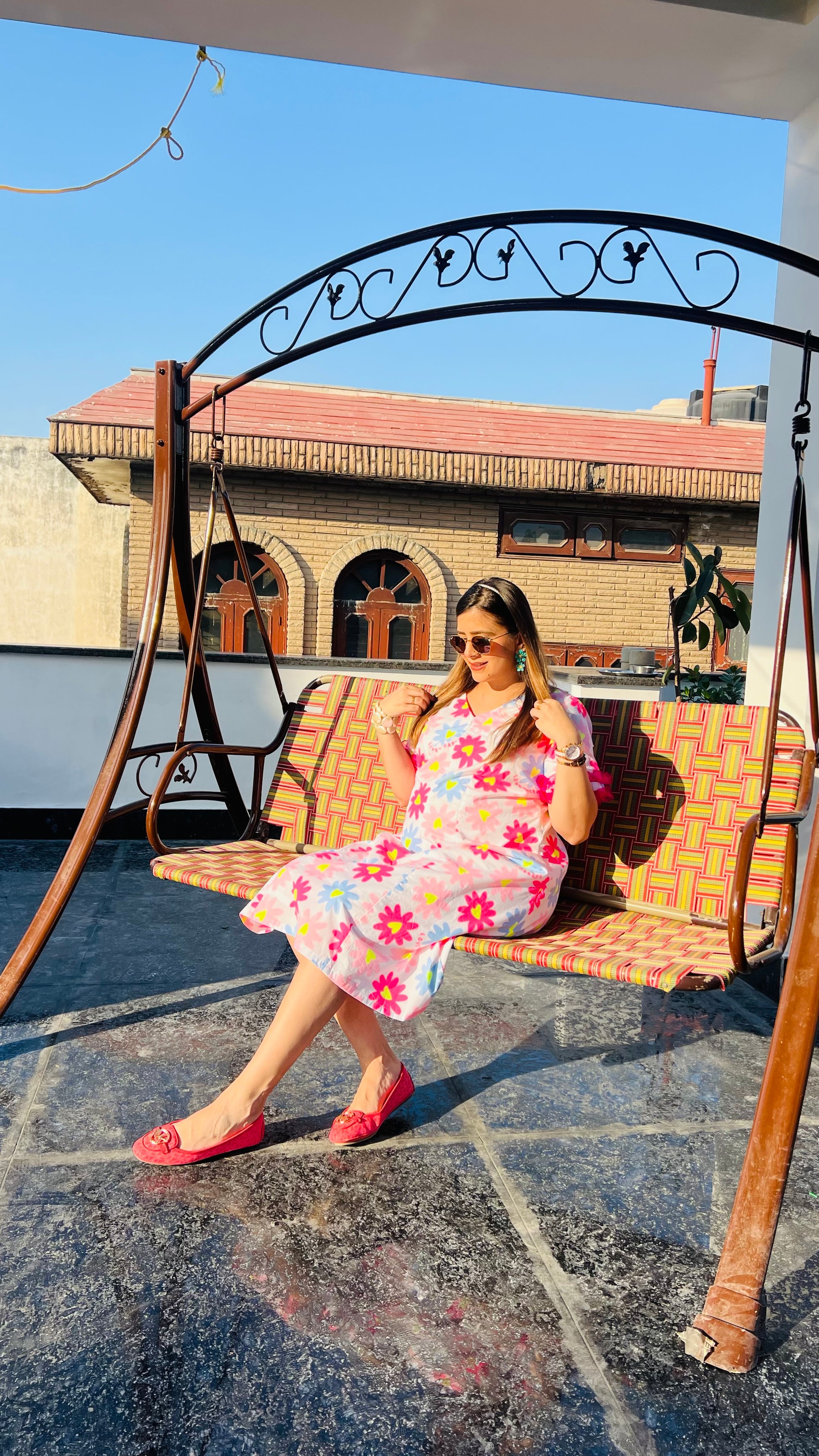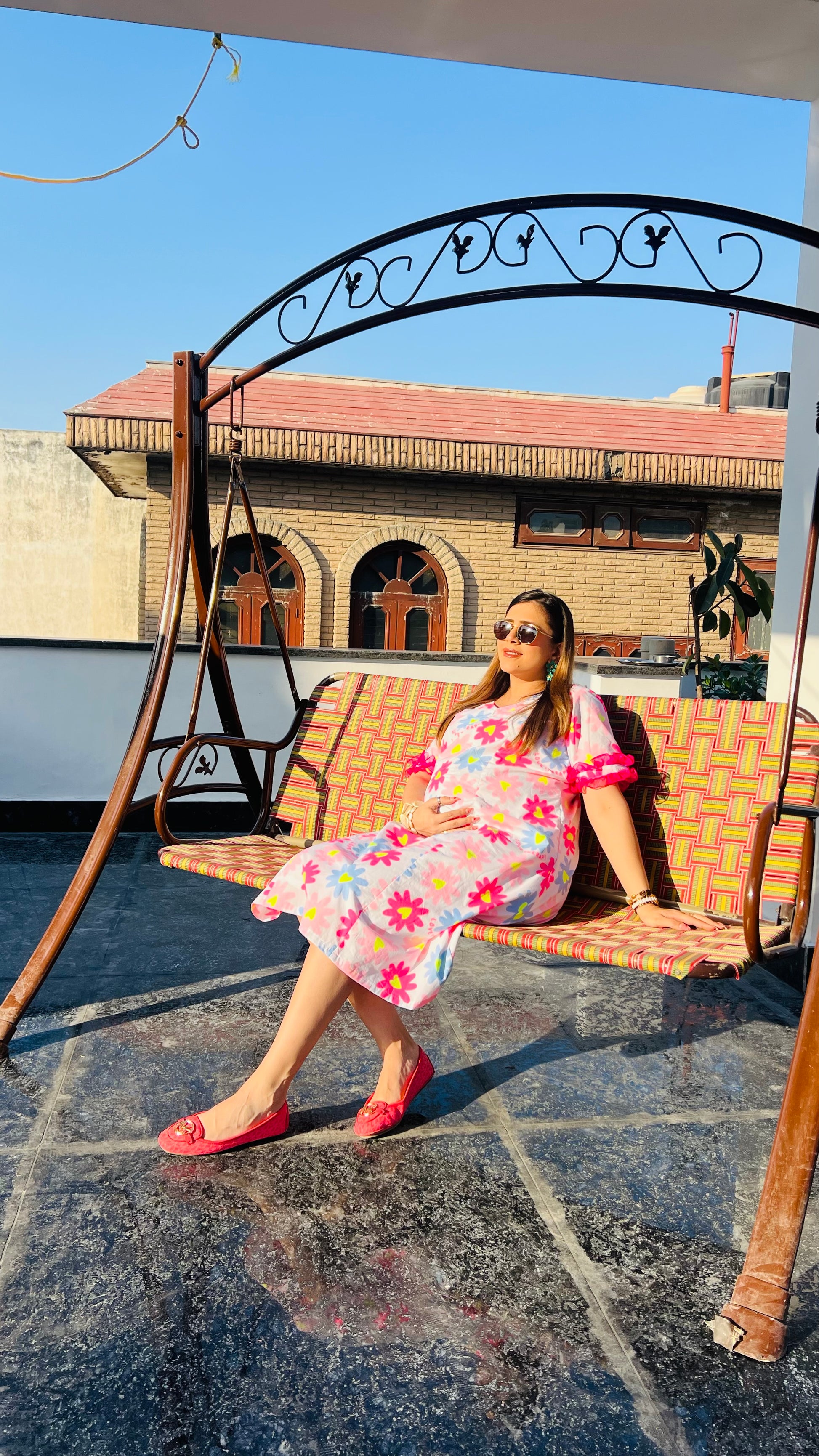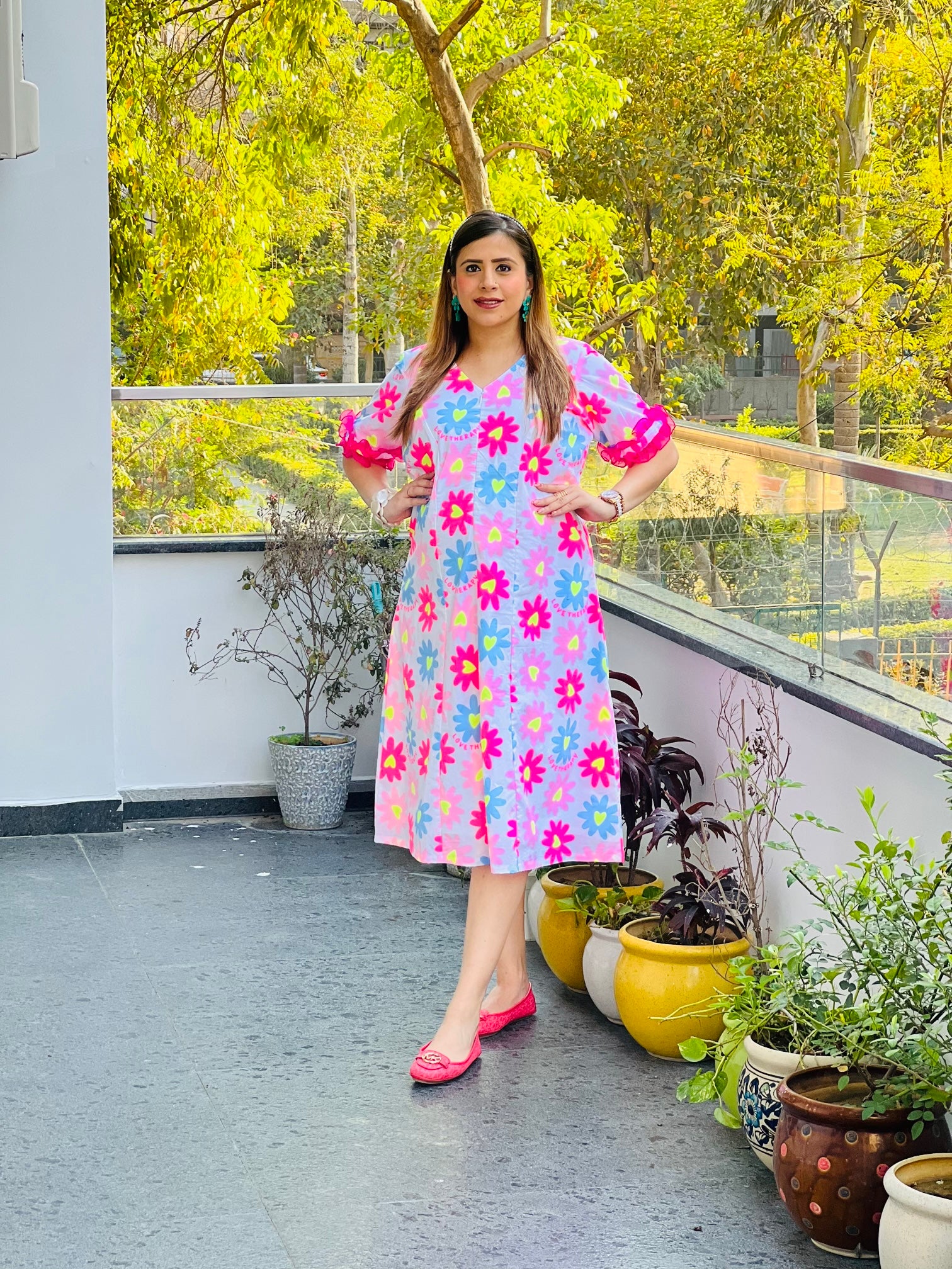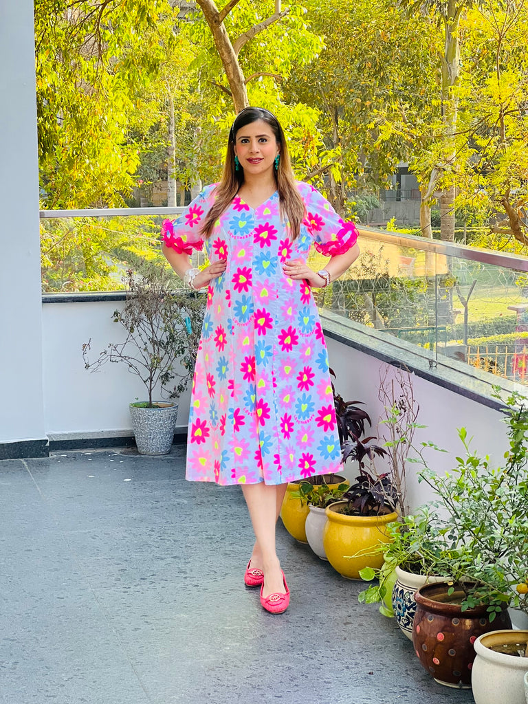 Radiate soft and charm in this Pink cotton midi dress, a soft and graceful addition to your summer wardrobe. |