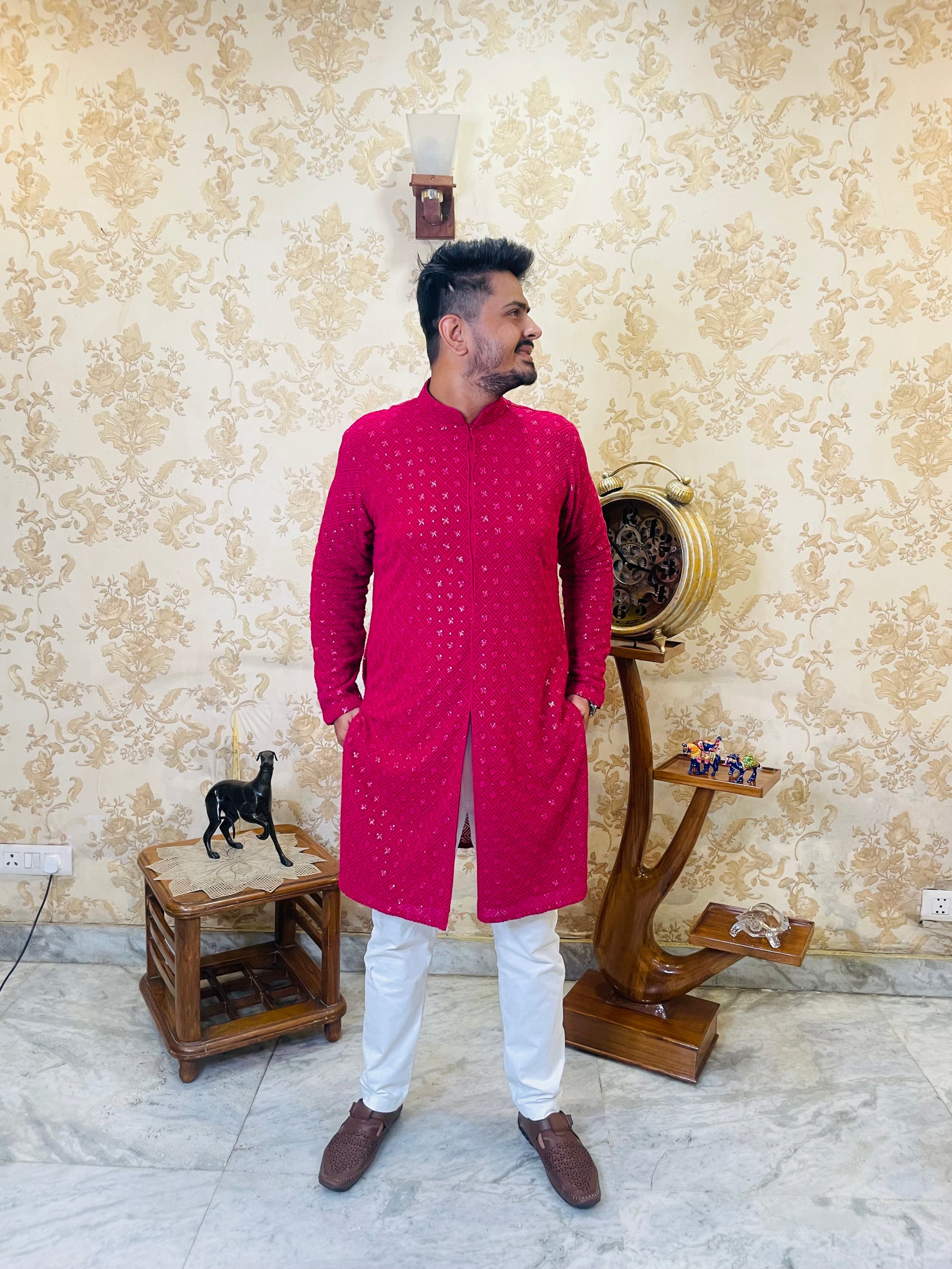 "Elevate your style with our Wine Kurta Set! 🍷👕 Rich burgundy hues, comfortable fit, and elegant design make this outfit perfect for formal occasions and everyday wear. #WineAndDine #Menswear" |