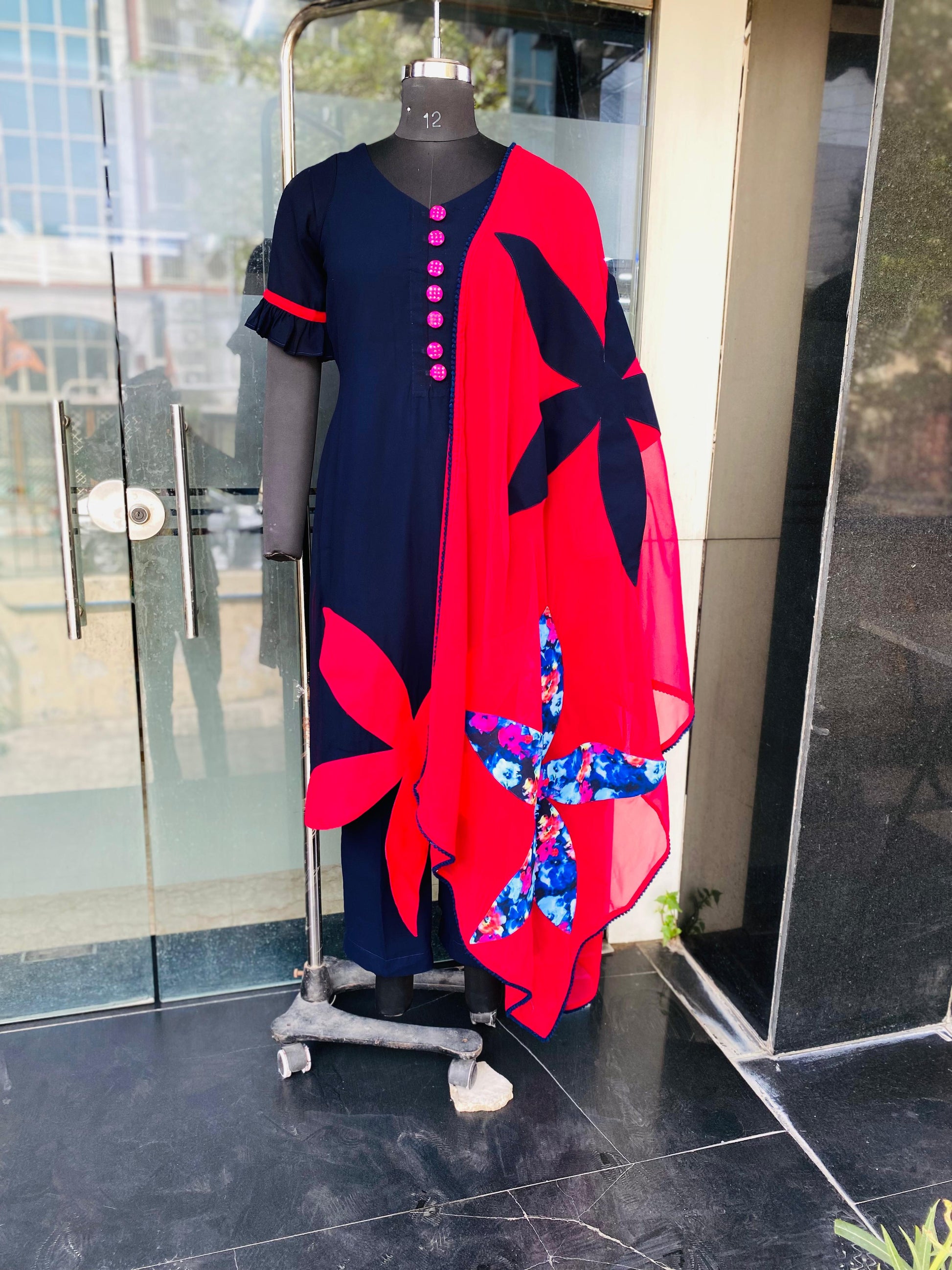 Navy Blue Flower Suit