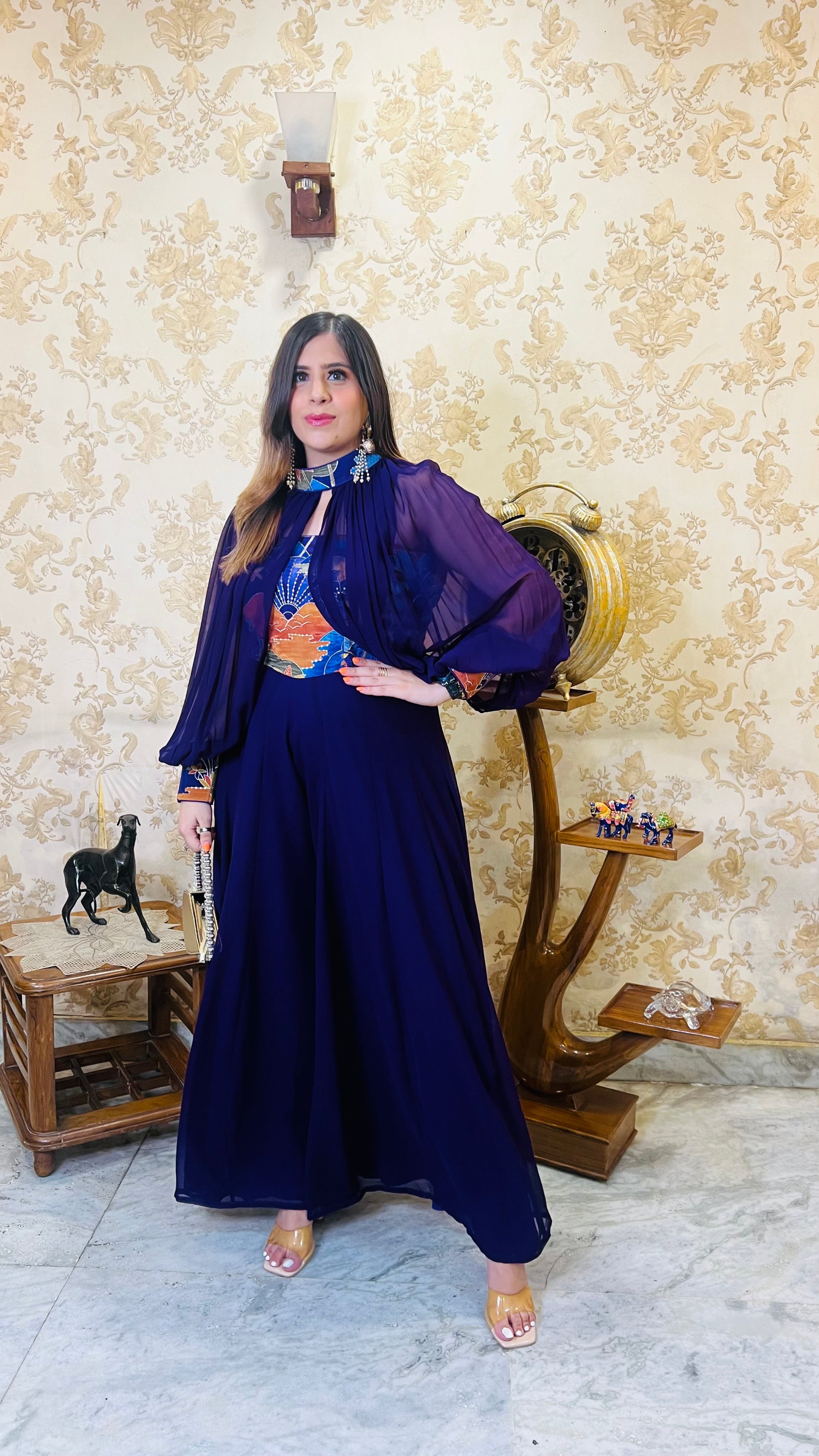 "Get ready to turn heads in our Palm Purple Jumpsuit! 💜🌴 Vibrant purple hue, flowy palm print, and sleek silhouette create a stunning and eye-catching look for any occasion. #PalmPurplePerfection #JumpsuitGoals" |