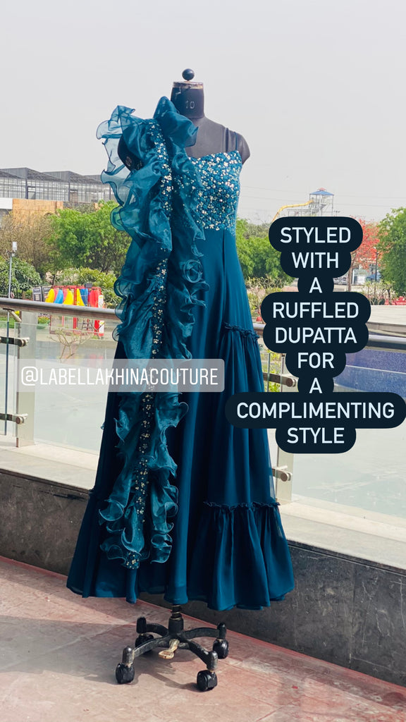 Peacock Blue gown that’s utterly gorgeous for this season.