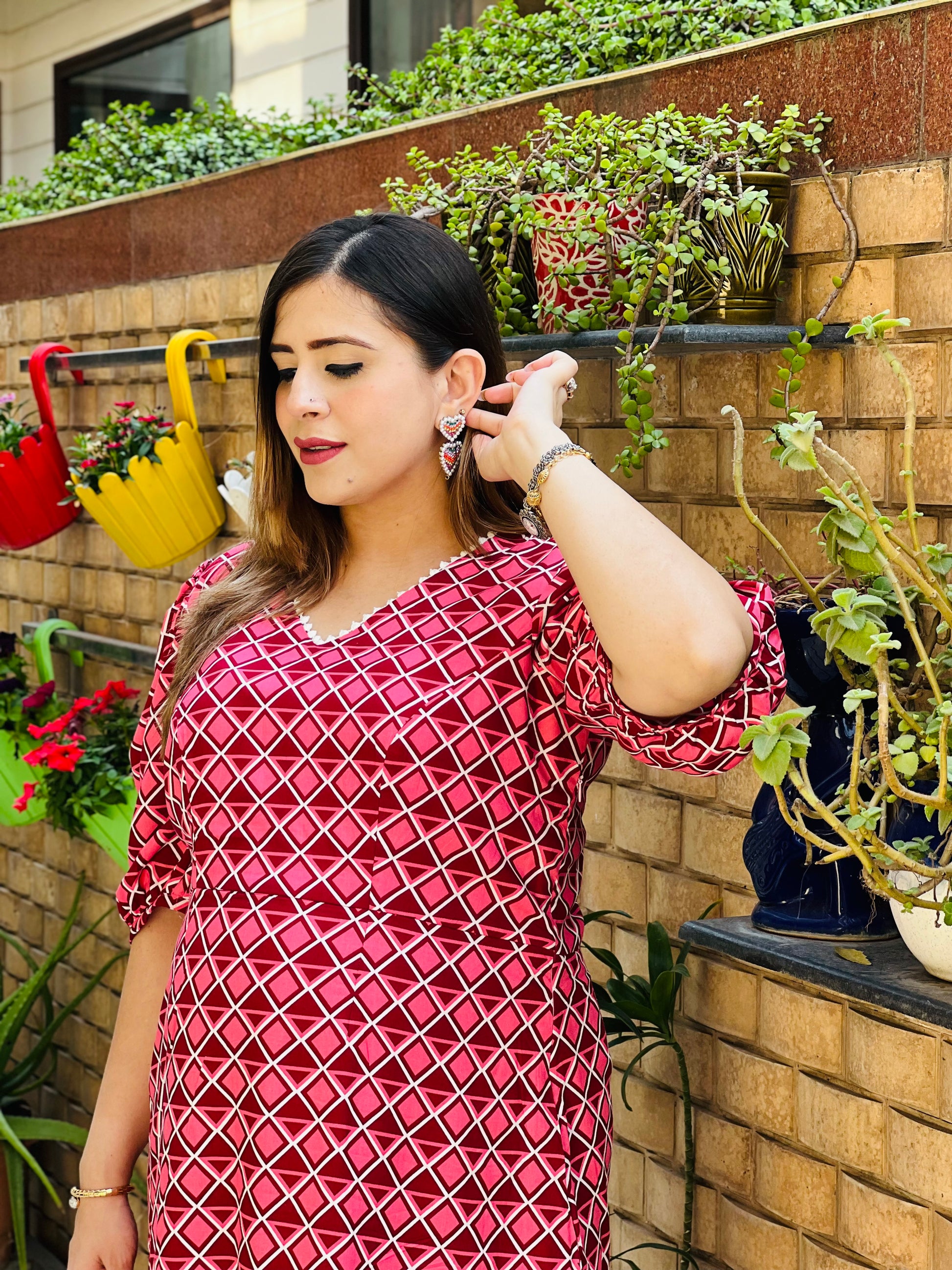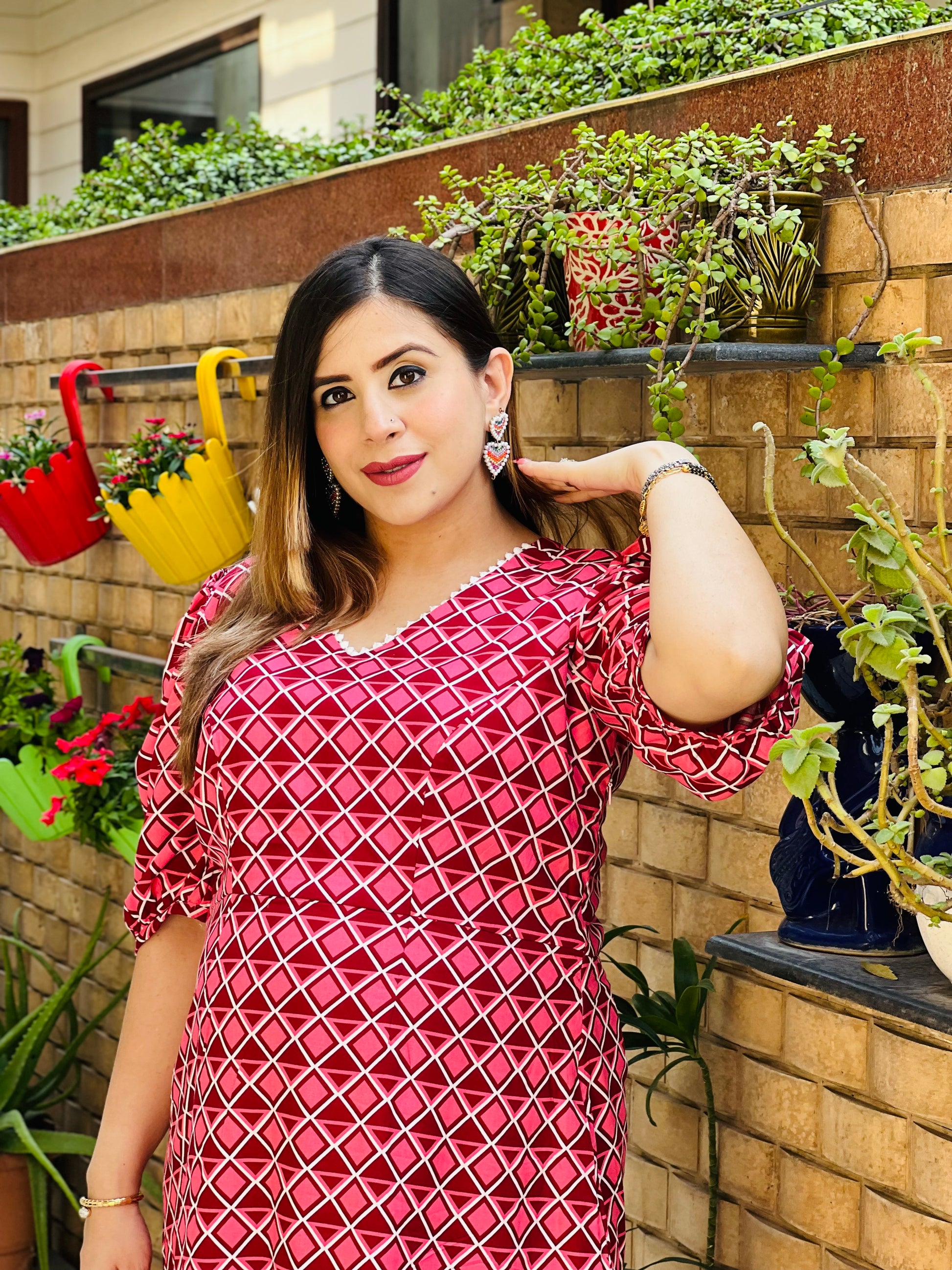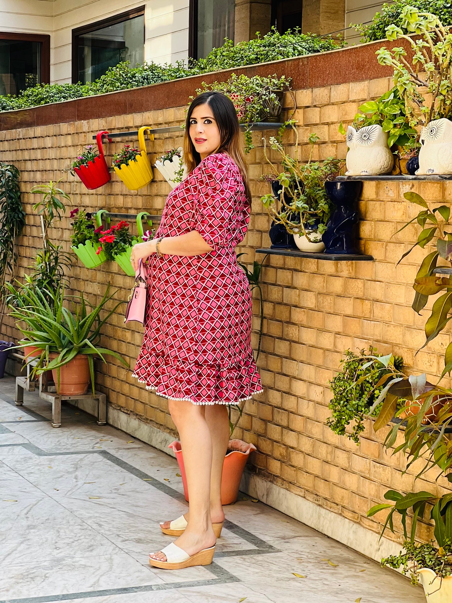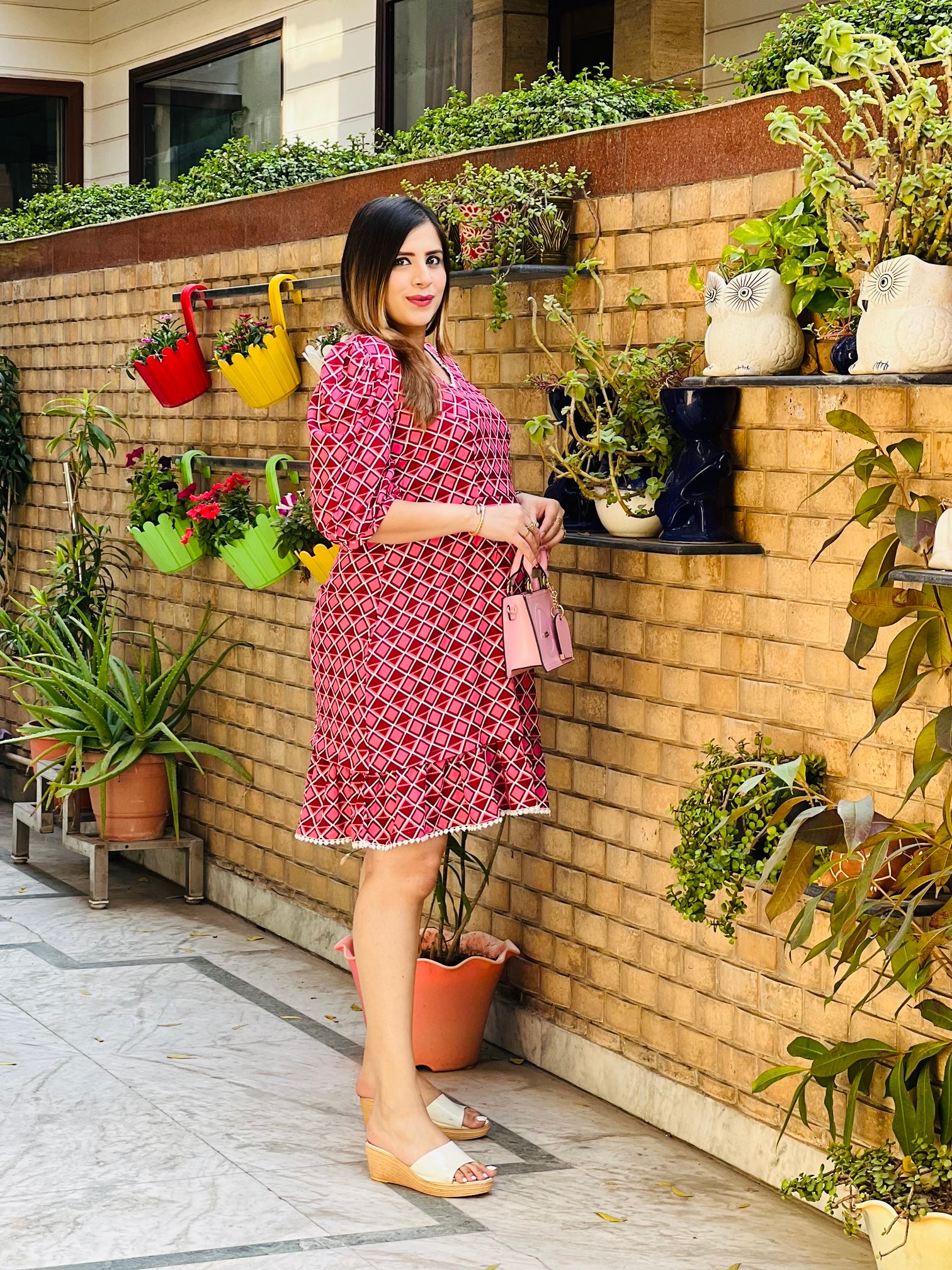 Fall in love with geometric patterns in this pink mama ensemble, a vibrant and trendy choice for the fashion-forward individual. 💗🔷 #TrendyChic |