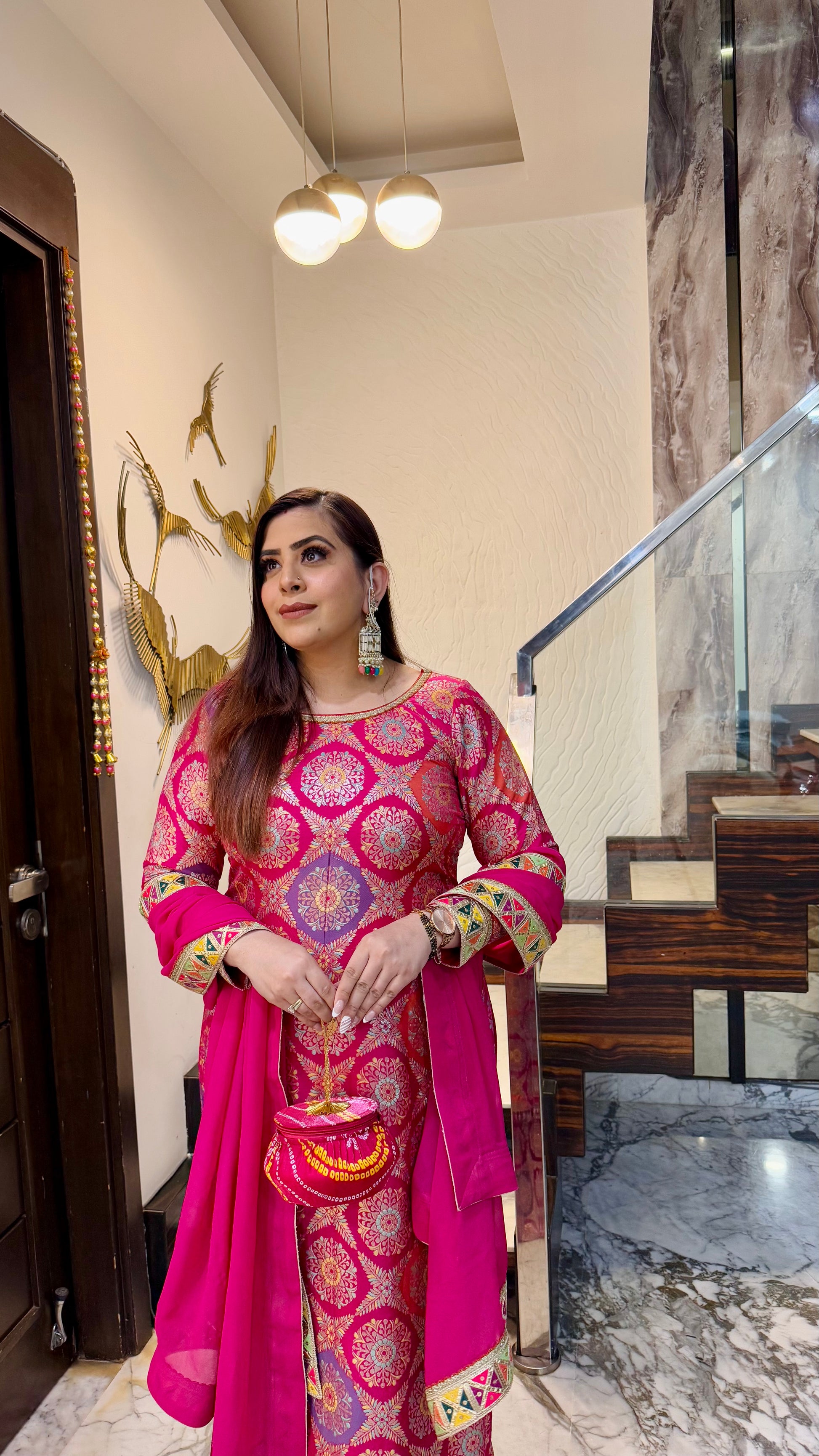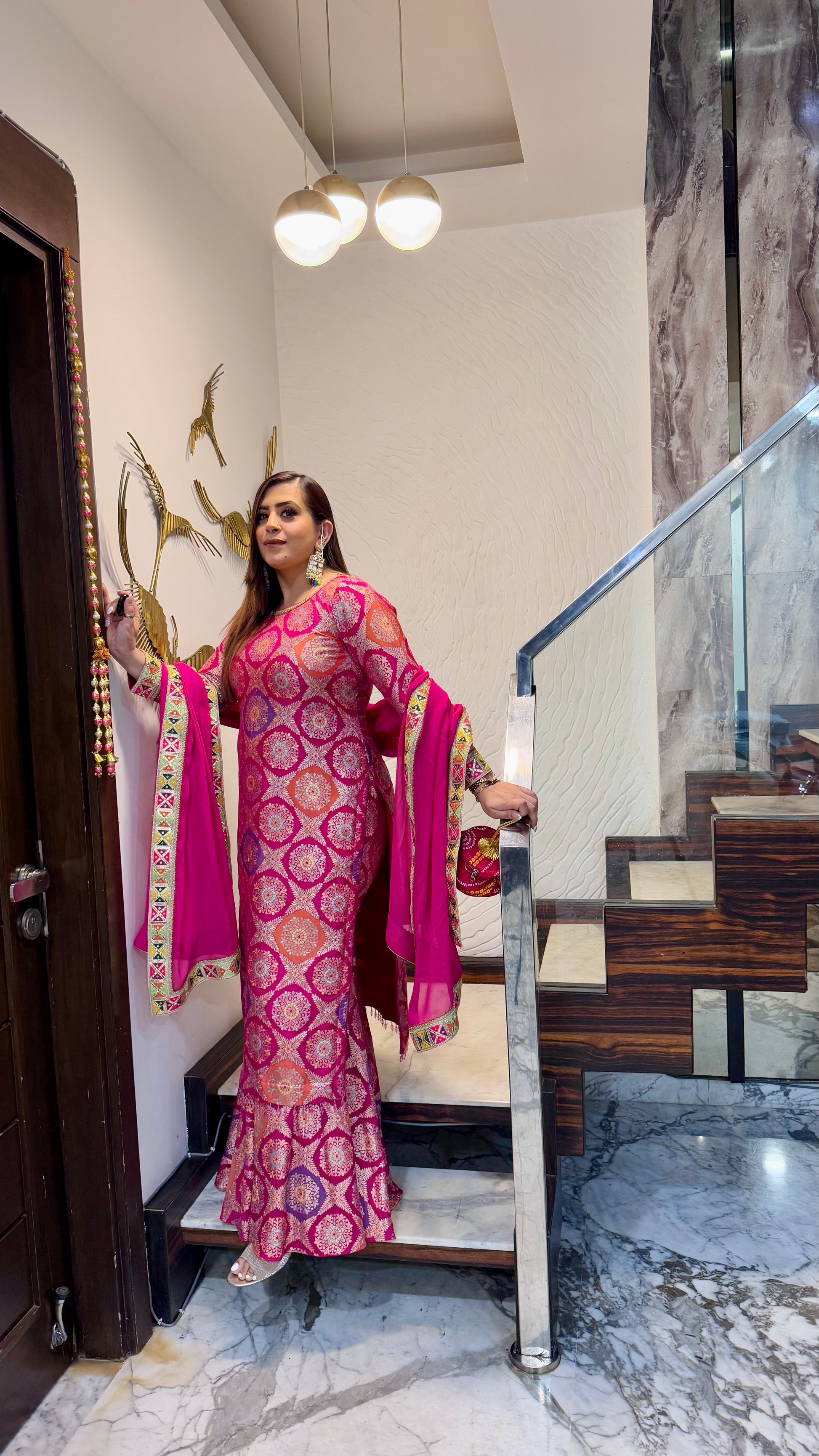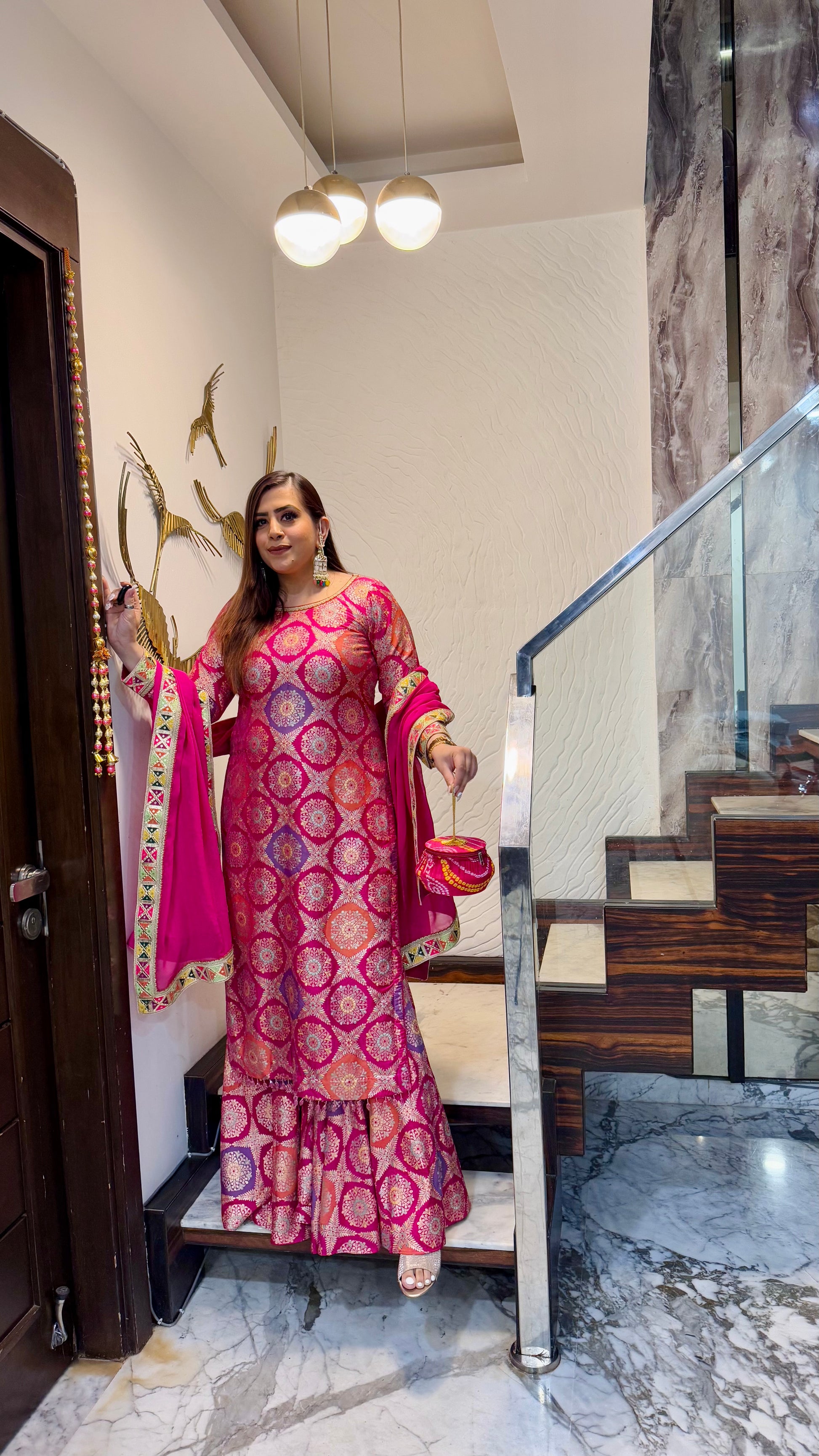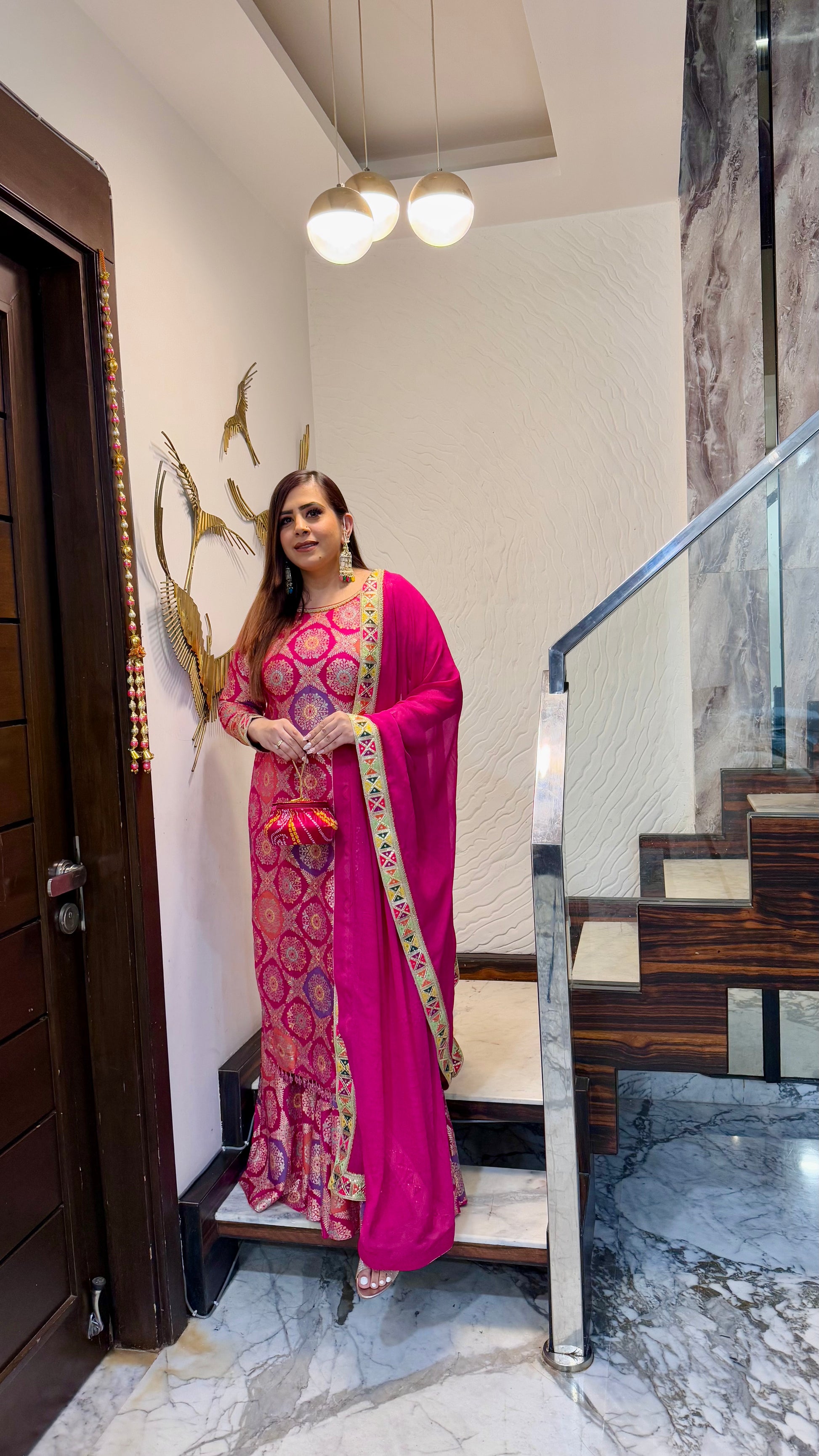 Model Height: 5'8" Sample Length: Top: 48" Garara: 46" 2.5 meter Dupatta Overall Lace Detailing on Dupatta |