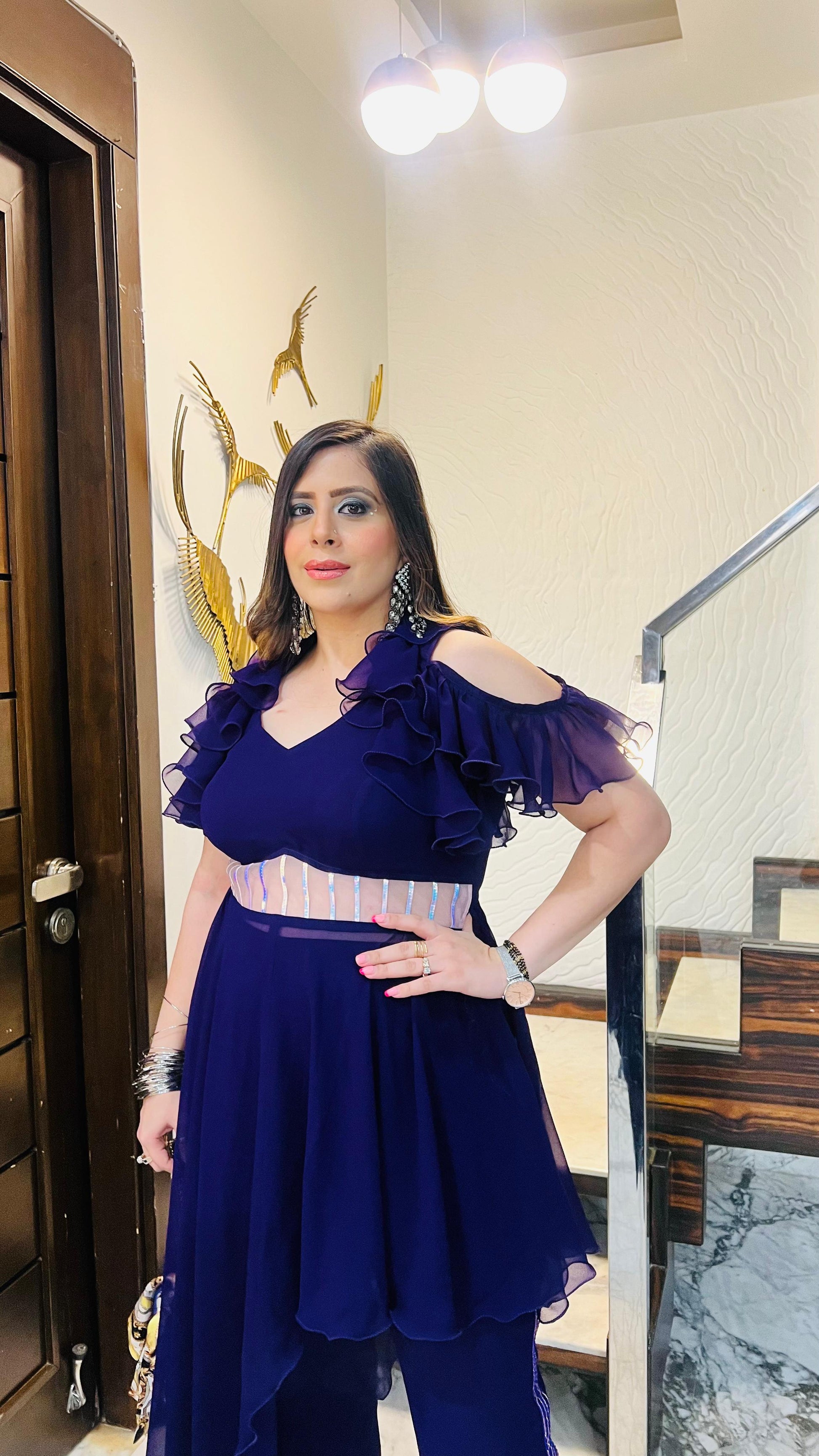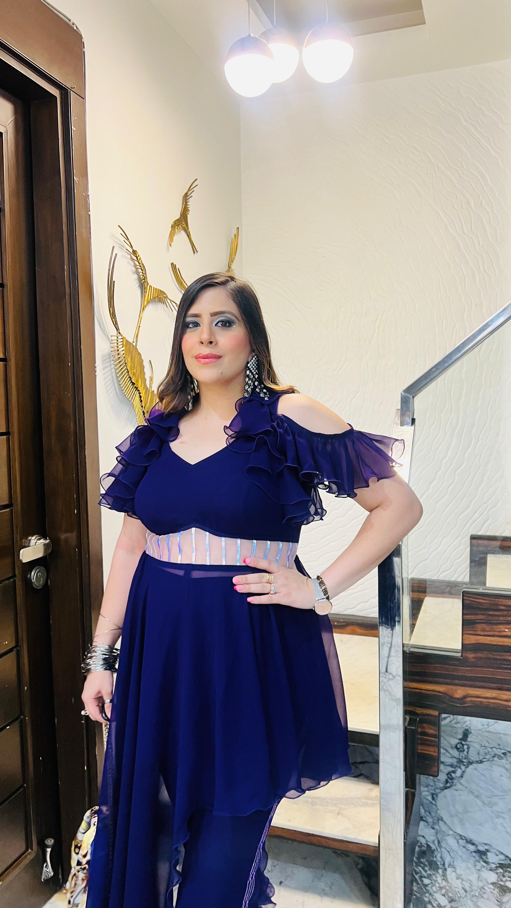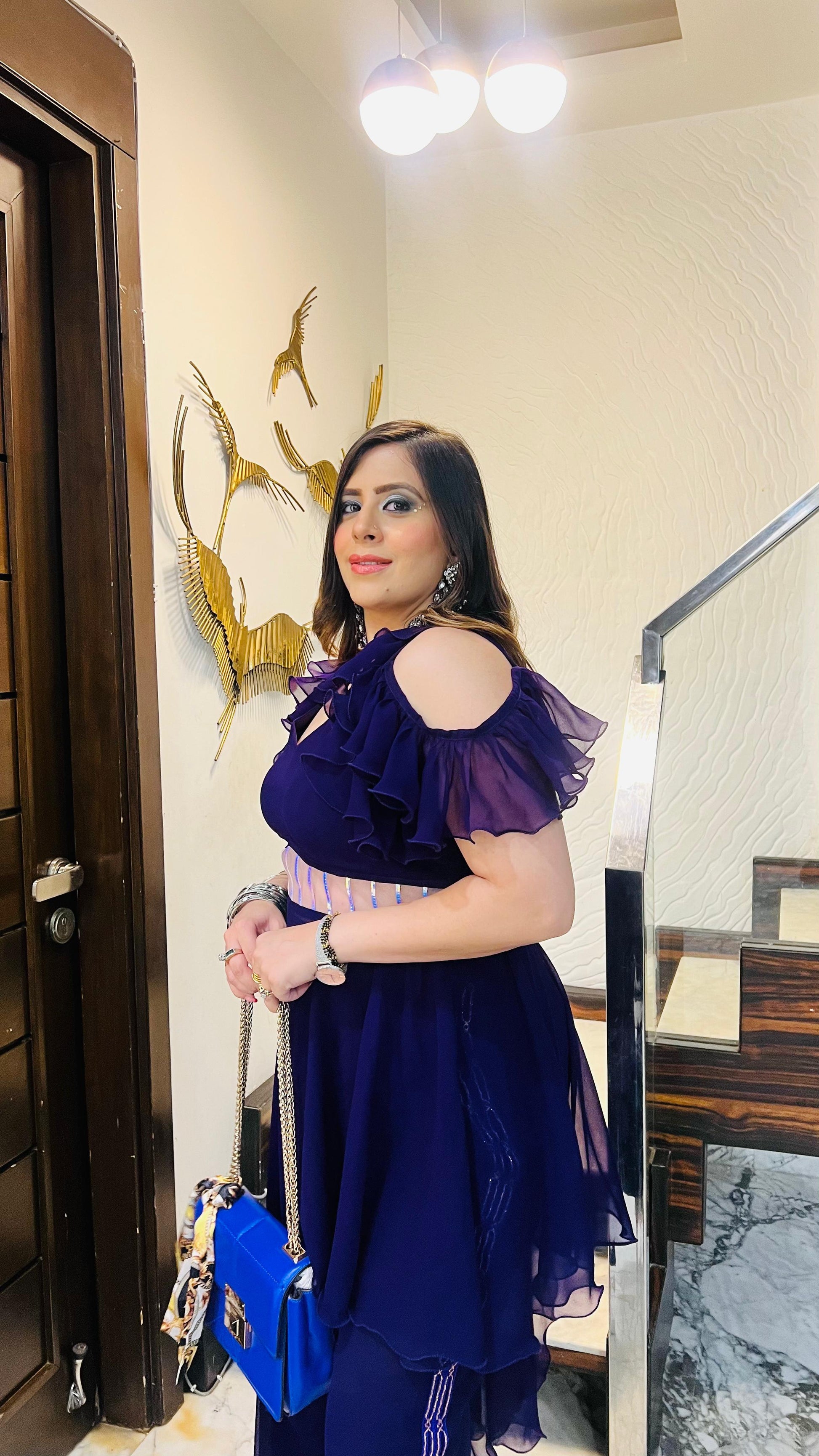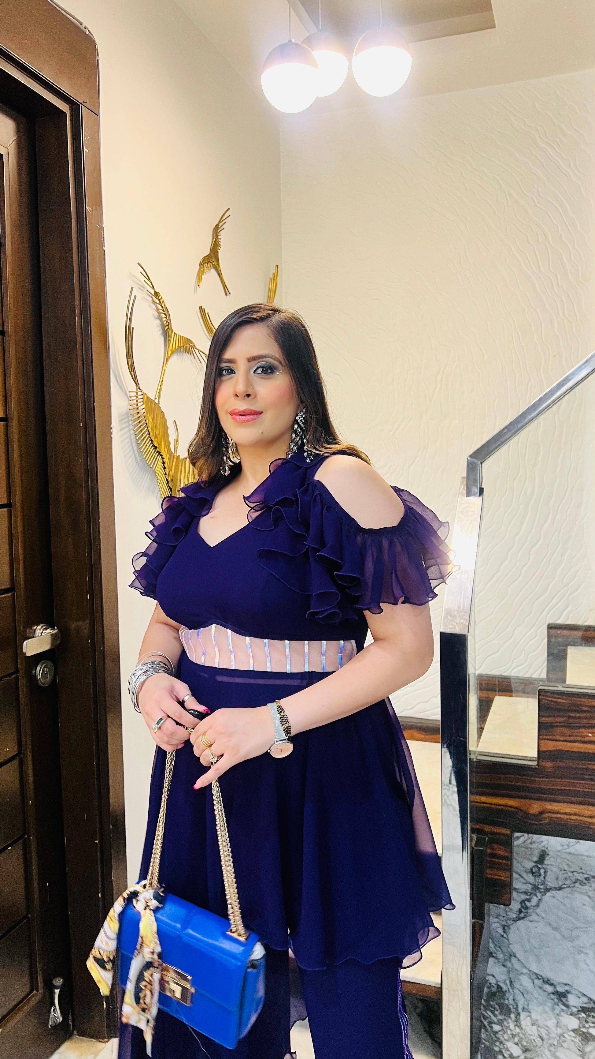 Elevate your style with this stunning Purple Holographic Co-Ord ✨. Featuring ruffled sleeves and a chic asymmetrical silhouette, this outfit blends elegance and boldness, perfect for any fashionable occasion 💜. |