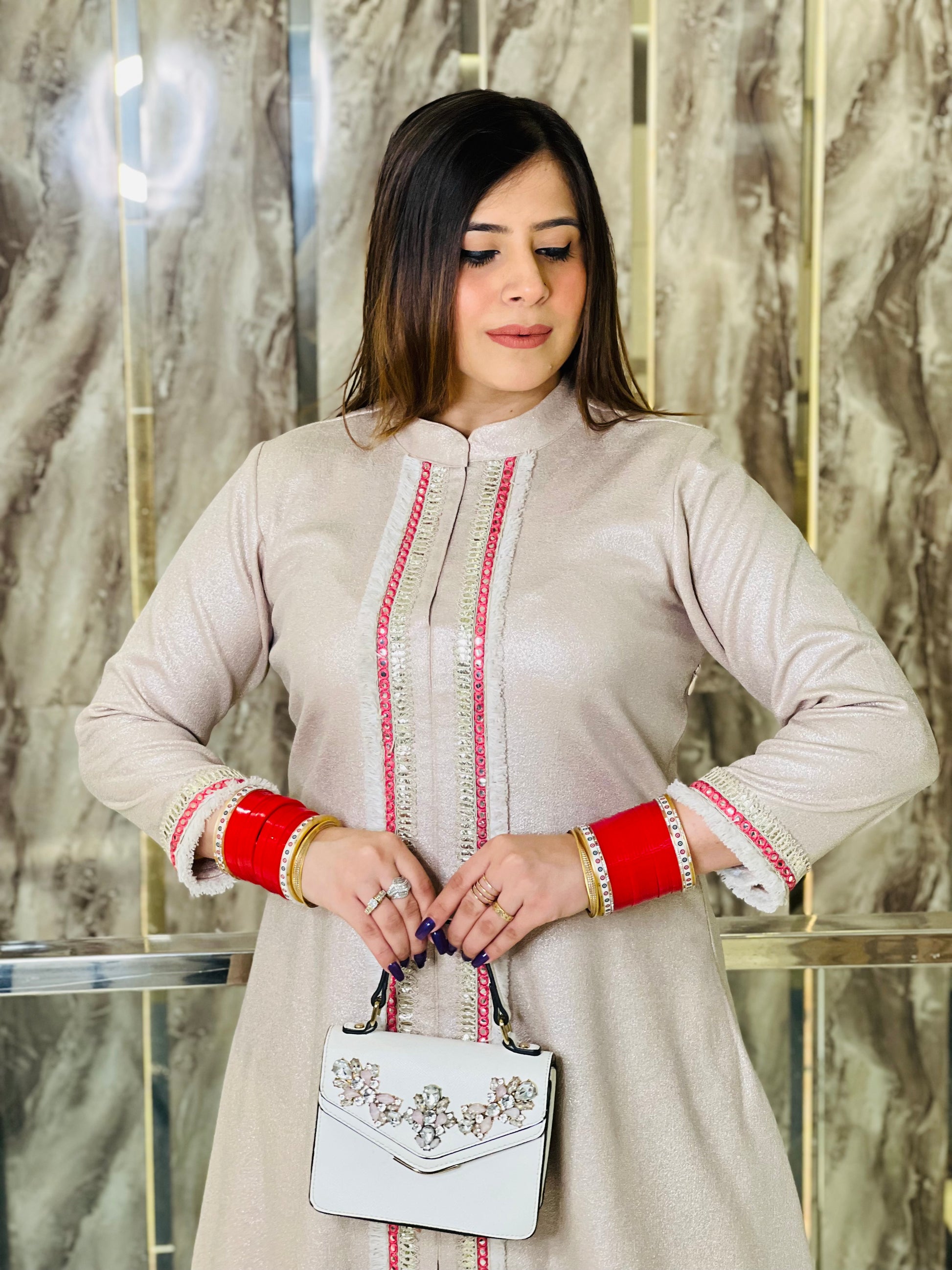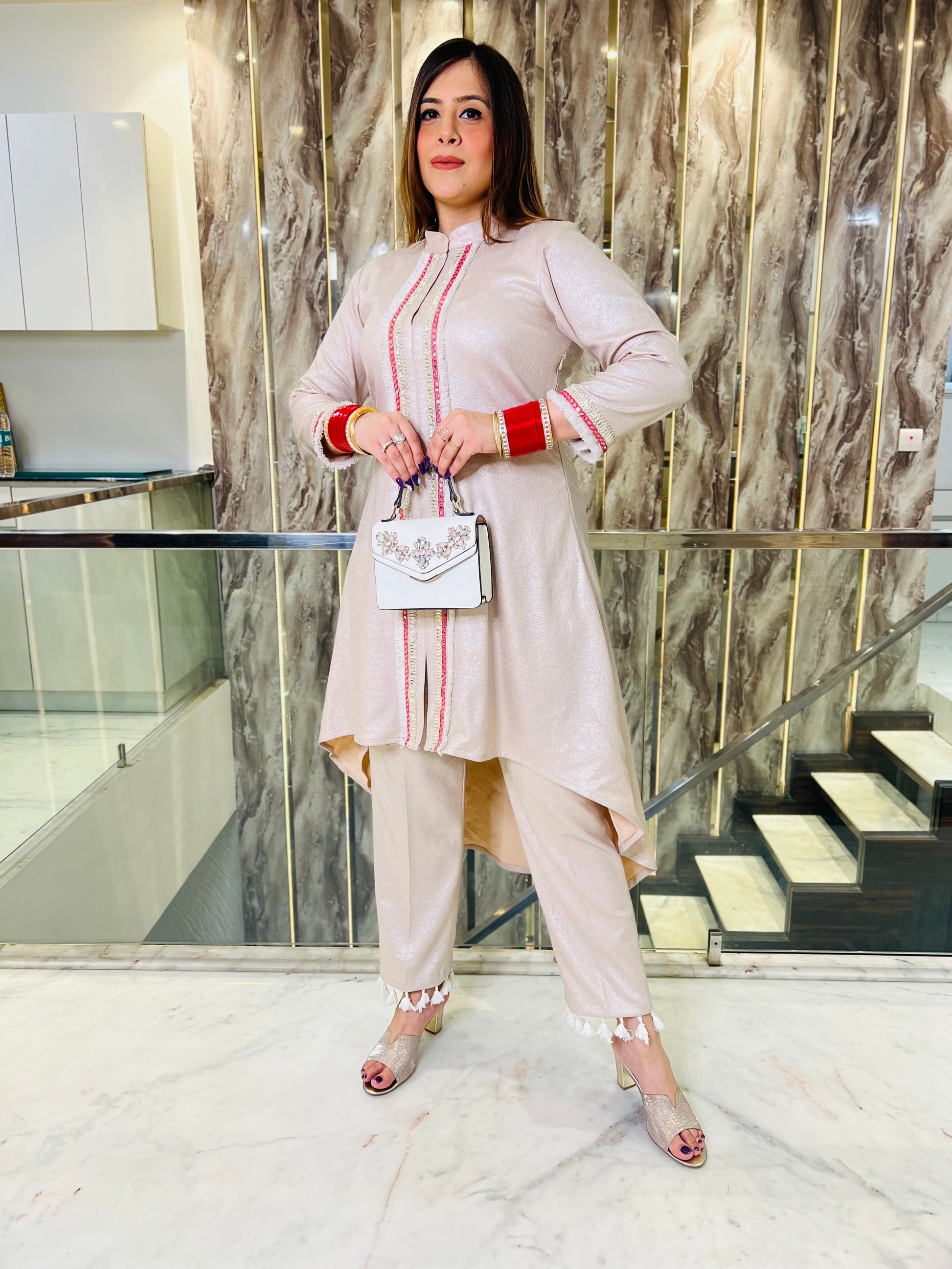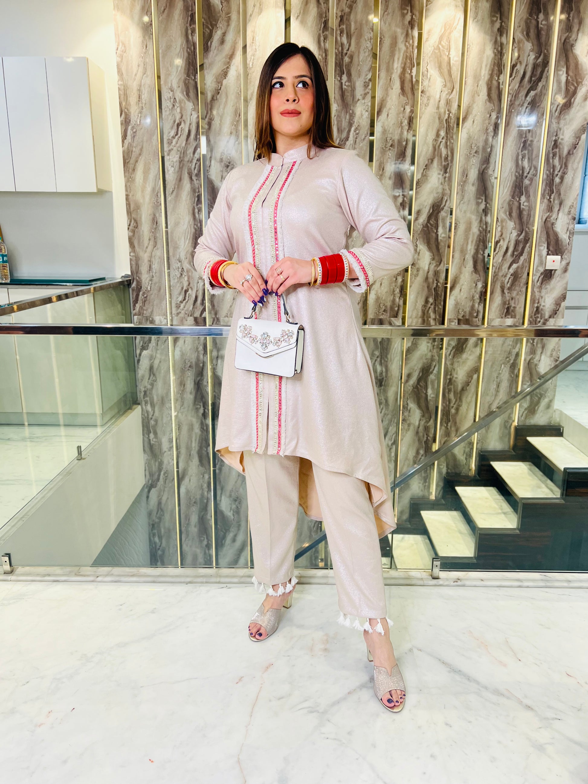 Presenting you this creative Co-Ord Set in Shimmer Haider Moss fabric that keeps you sorted in shantung lining.