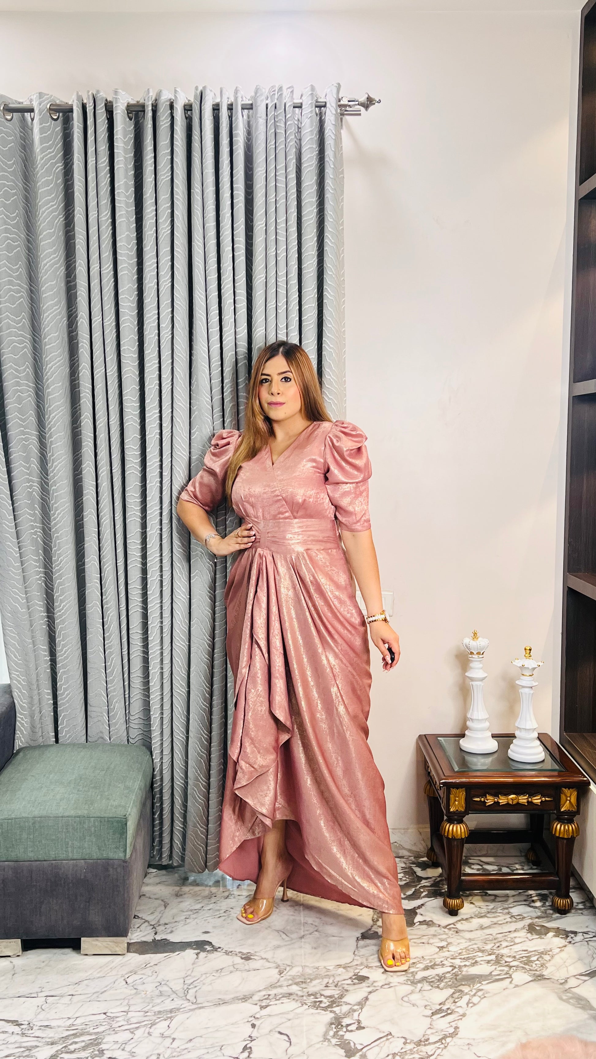 Rose Gold and so subtle, this drape falls perfect fit for parties & festivities.Â