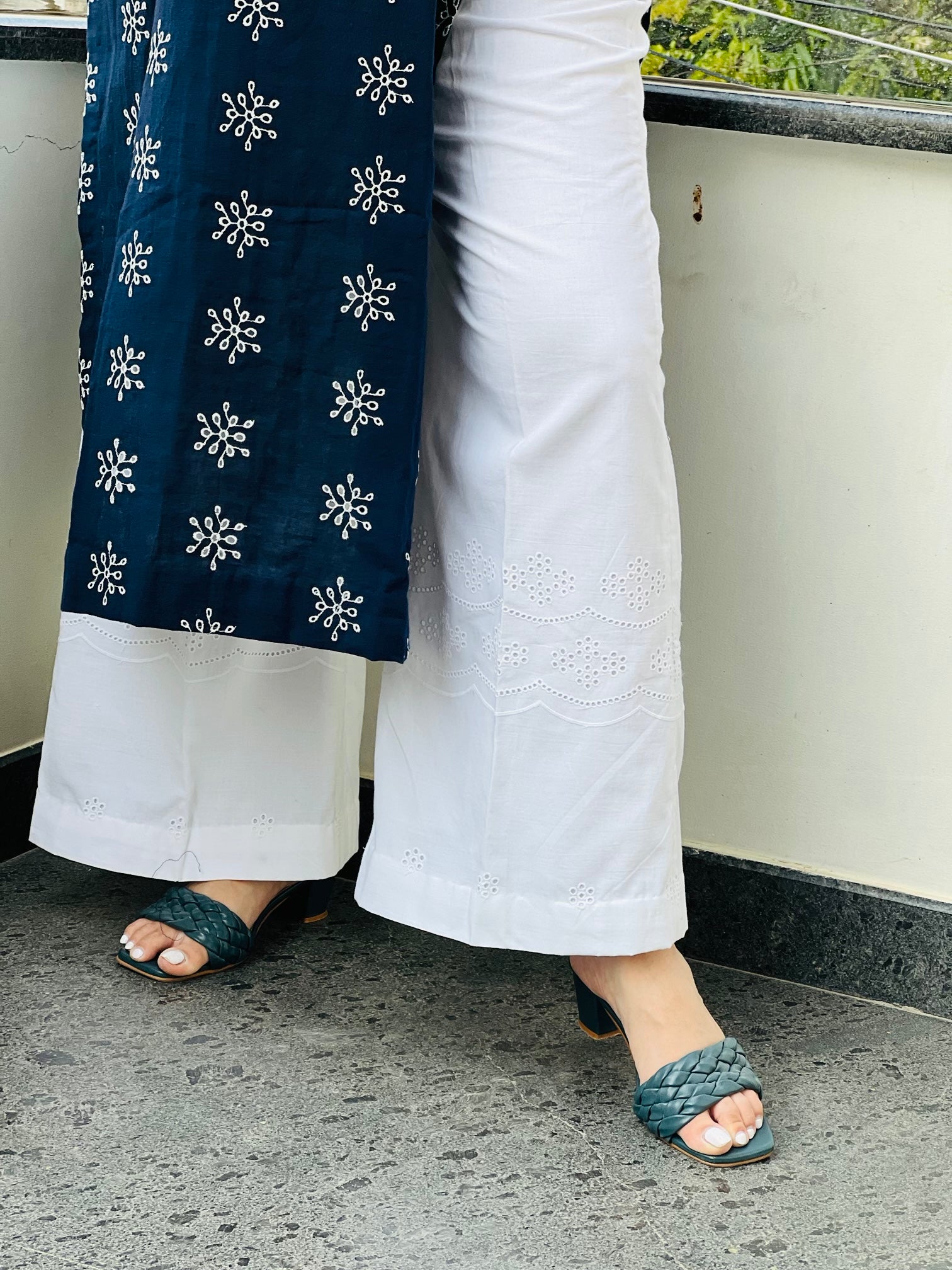 Elegance in every stitch: Embrace sophistication with this white shiffley palazzo, where delicate details meet timeless style. 💫✨ #TimelessElegance |