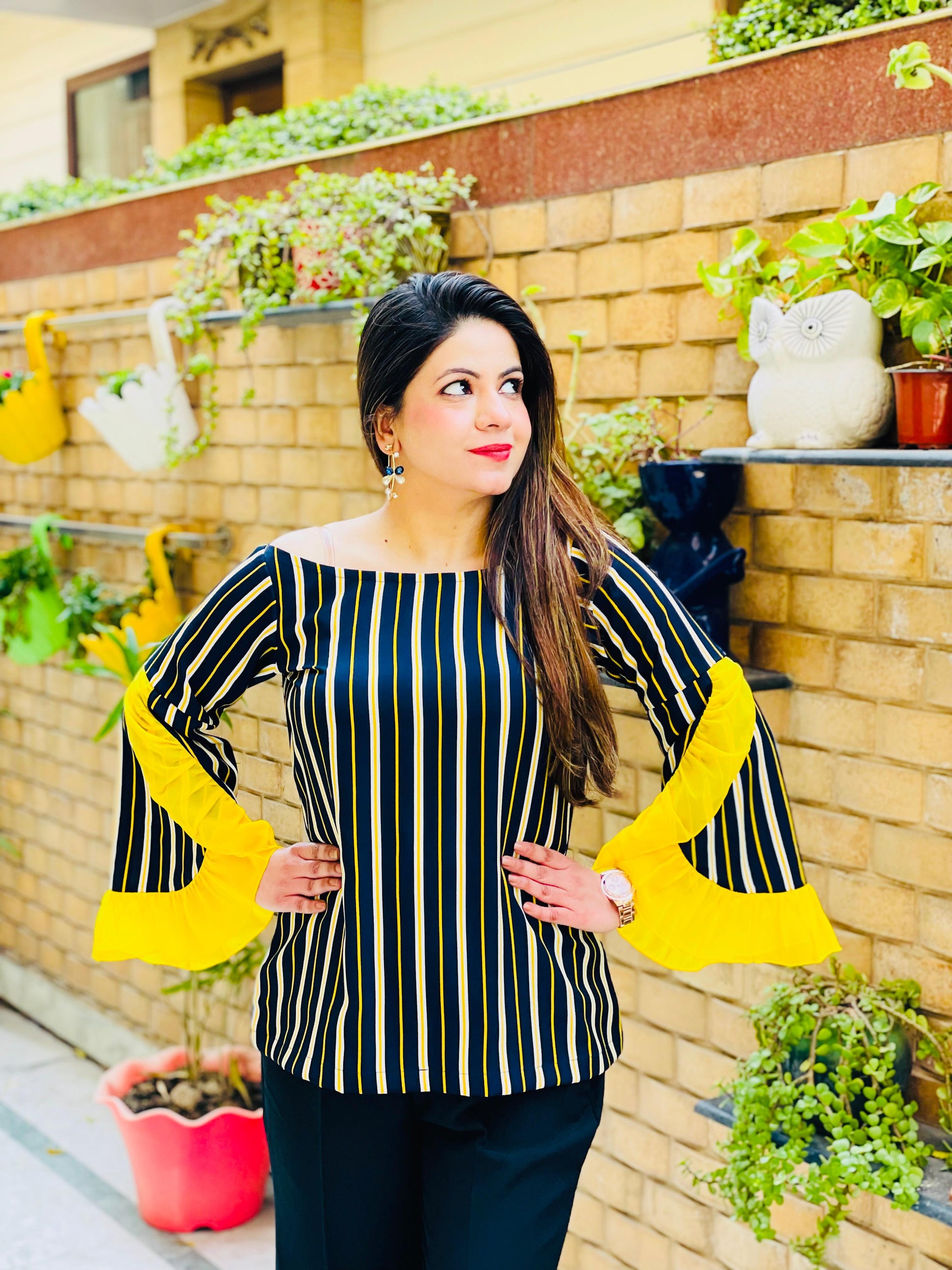 Brighten up your day with this playful yellow and blue striped top, because life is better in color! 💛💙 |